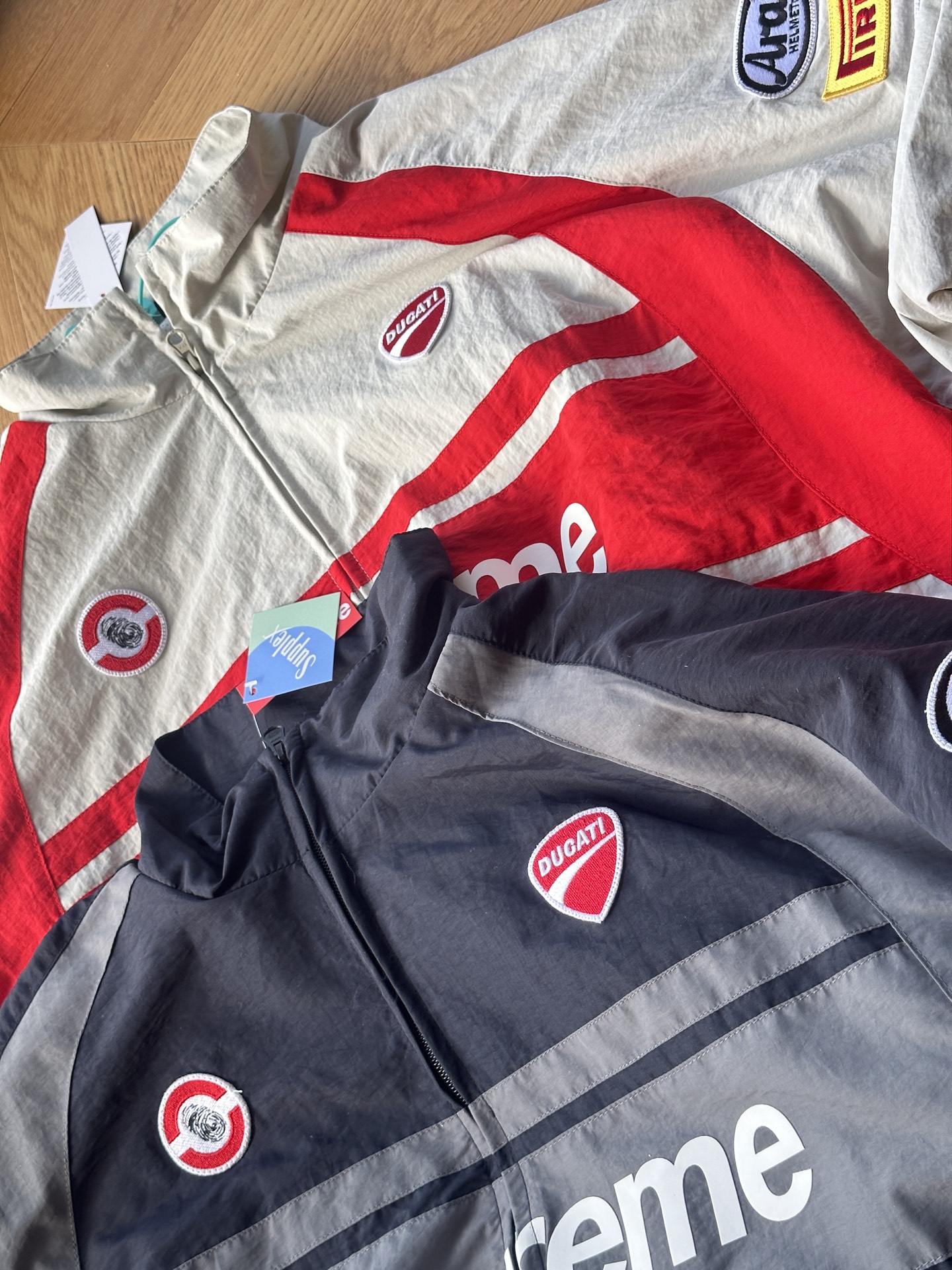 This clothes is AAAAA 1:1 quality (superb). Materials used are identical to the original ones. Superme trademark marks are indistinguishable to the authentic. Photos take by actual clothes, what you receive will be 100% same with our photos.