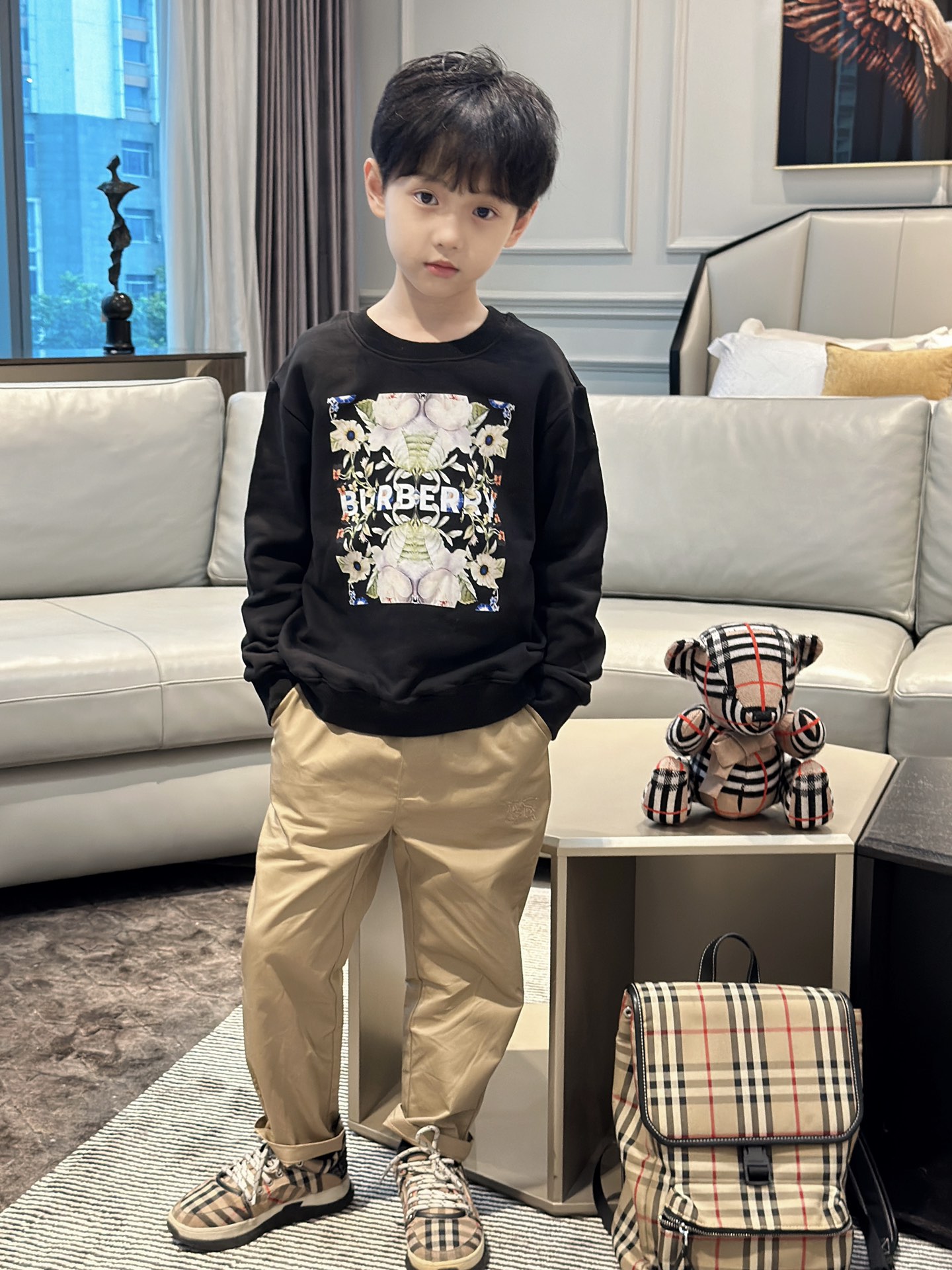 This children's clothes is AAAAA 1:1 quality (superb). Materials used are identical to the original ones. trademark marks are indistinguishable to the authentic. Photos take by actual children's clothes, what you receive will be 100% same with our photos.
