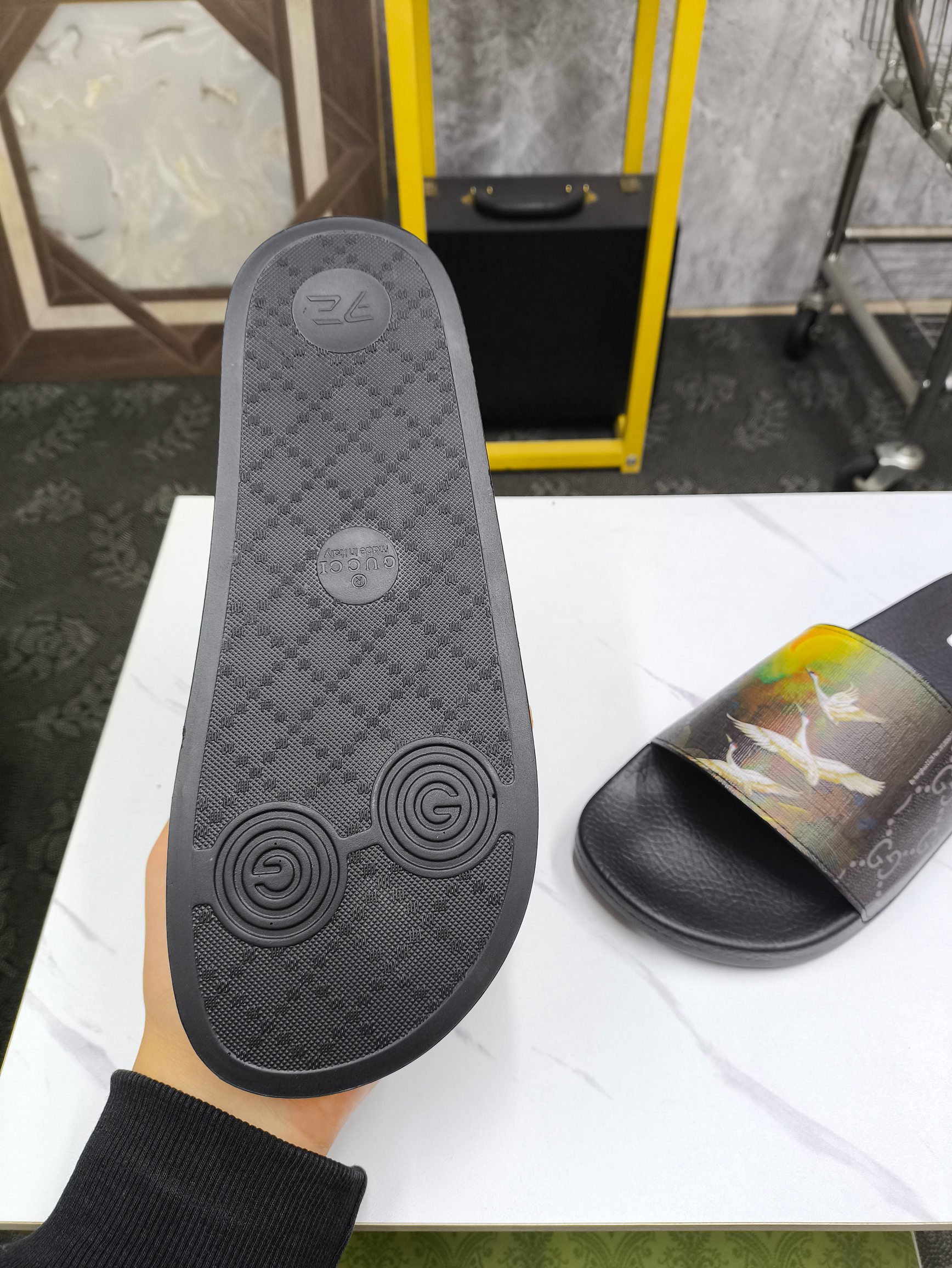 This shoes is AAAAA 1:1 quality (superb). Materials used are identical to the original ones. Gucci trademark marks are indistinguishable to the authentic. Photos take by actual shoes, what you receive will be 100% same with our photos.