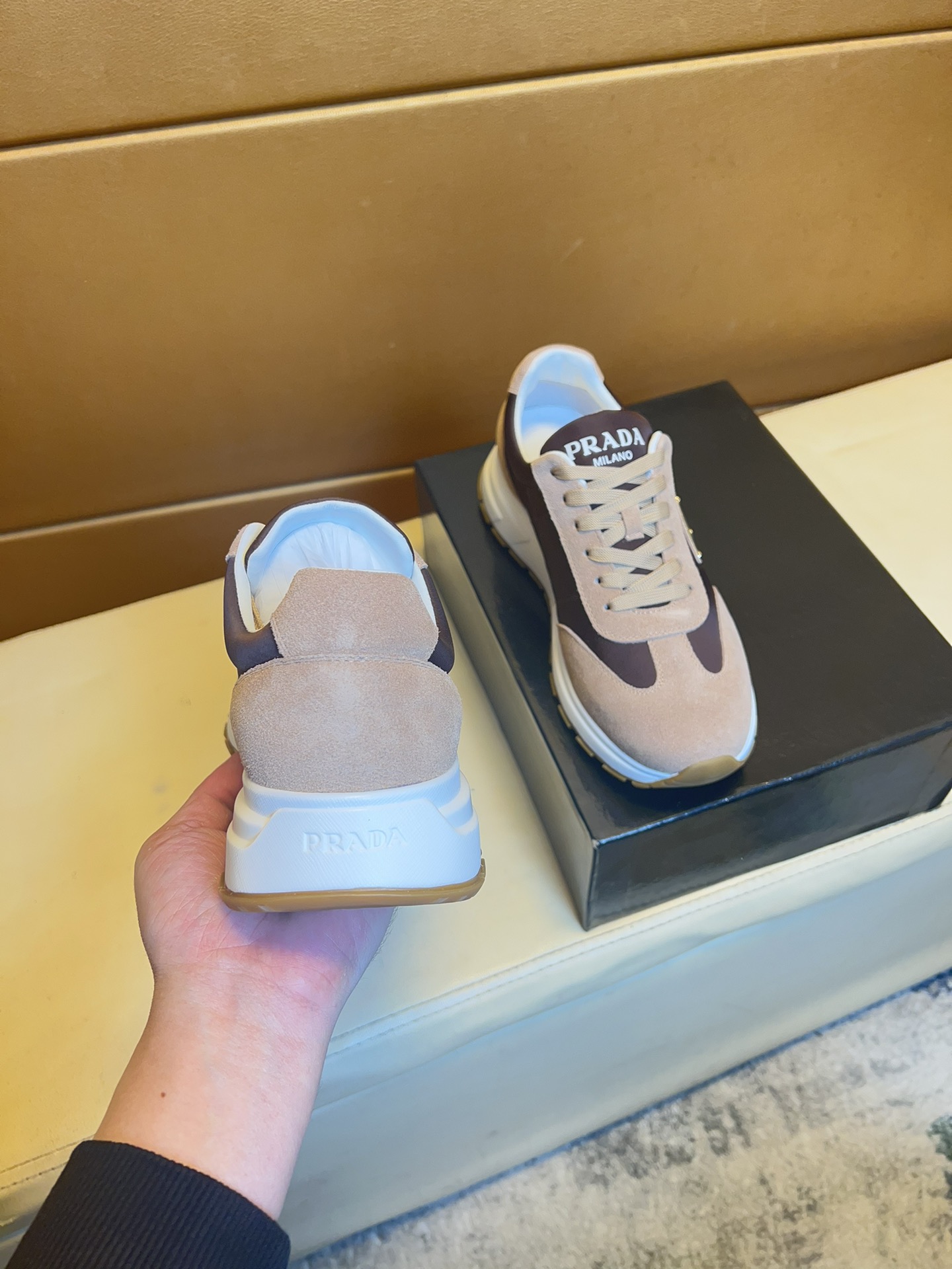 This shoes is AAAAA 1:1 quality (superb). Materials used are identical to the original ones. Prada trademark marks are indistinguishable to the authentic. Photos take by actual shoes, what you receive will be 100% same with our photos.