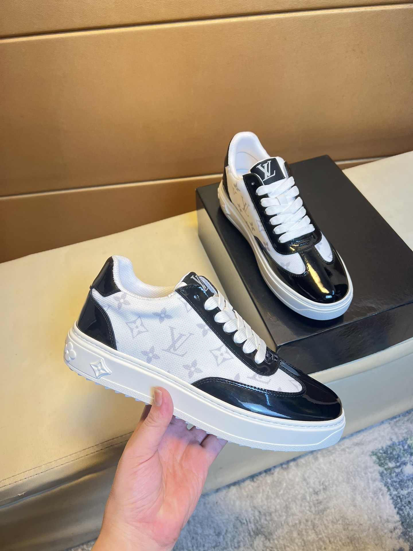 This shoes is AAAAA 1:1 quality (superb). Materials used are identical to the original ones. Louis Vuitton trademark marks are indistinguishable to the authentic. Photos take by actual shoes, what you receive will be 100% same with our photos.