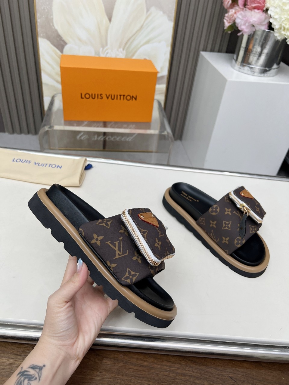 This shoes is AAAAA 1:1 quality (superb). Materials used are identical to the original ones. Louis Vuitton trademark marks are indistinguishable to the authentic. Photos take by actual shoes, what you receive will be 100% same with our photos.