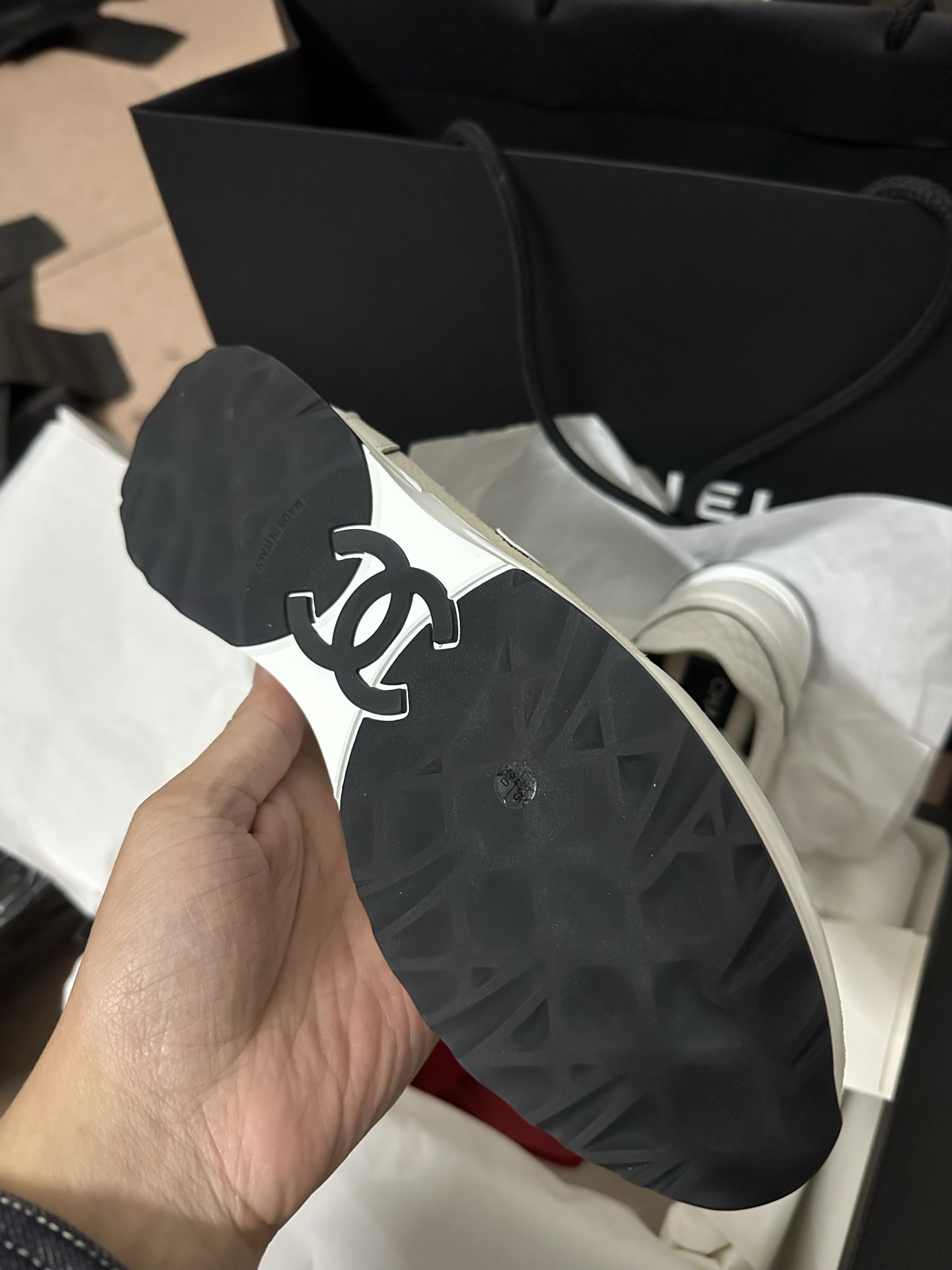 This shoes is AAAAA 1:1 quality (superb). Materials used are identical to the original ones. Chanel trademark marks are indistinguishable to the authentic. Photos take by actual shoes, what you receive will be 100% same with our photos.