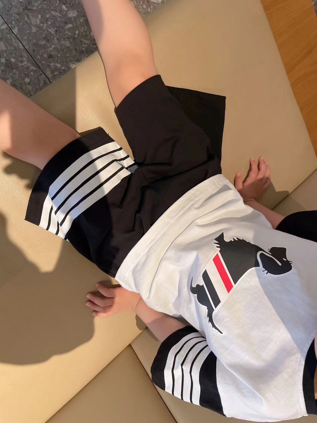 This children's clothes is AAAAA 1:1 quality (superb). Materials used are identical to the original ones. trademark marks are indistinguishable to the authentic. Photos take by actual children's clothes, what you receive will be 100% same with our photos.