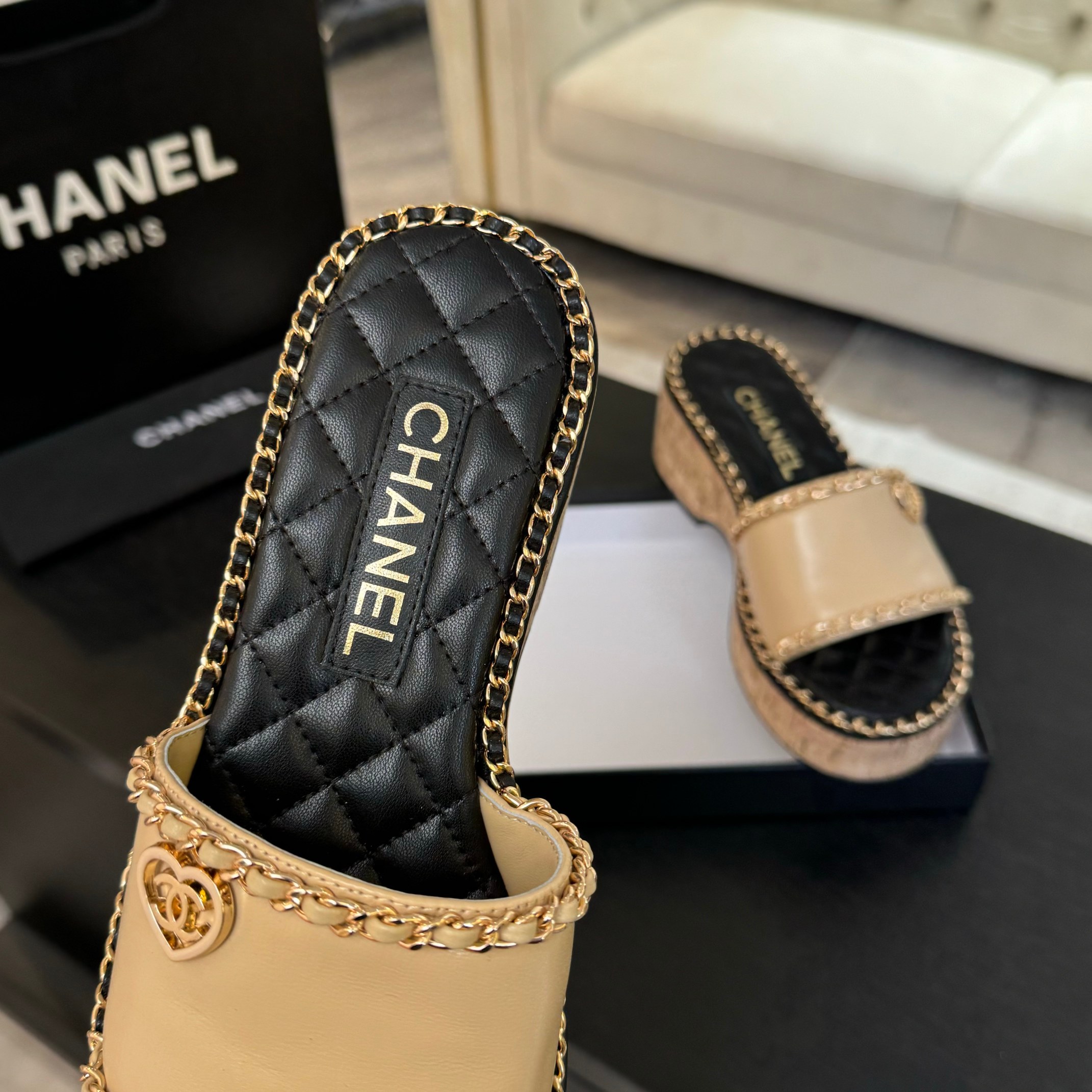 This shoes is AAAAA 1:1 quality (superb). Materials used are identical to the original ones. Chanel trademark marks are indistinguishable to the authentic. Photos take by actual shoes, what you receive will be 100% same with our photos.
