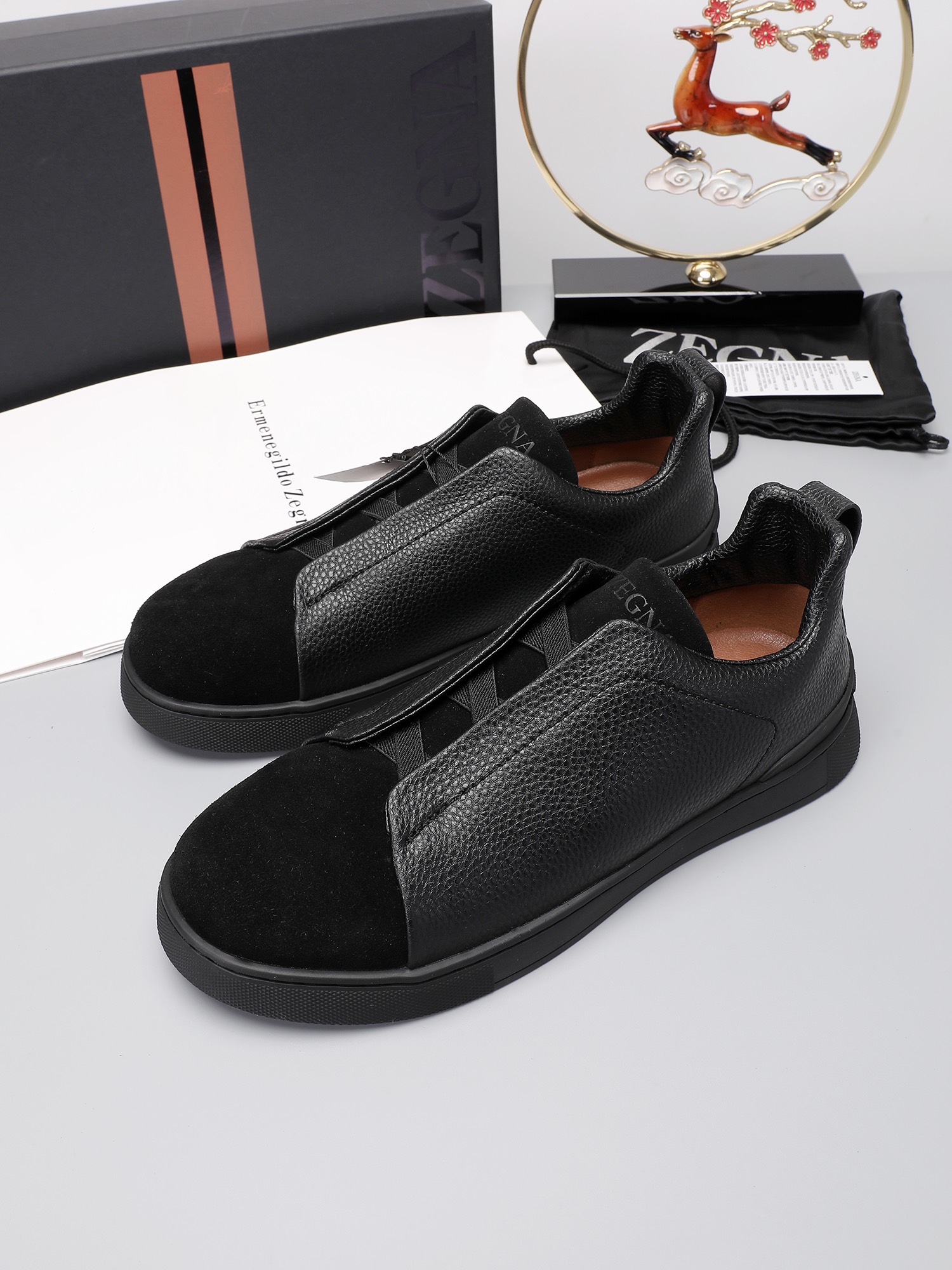 This shoes is AAAAA 1:1 quality (superb). Materials used are identical to the original ones. Zegna trademark marks are indistinguishable to the authentic. Photos take by actual shoes, what you receive will be 100% same with our photos.