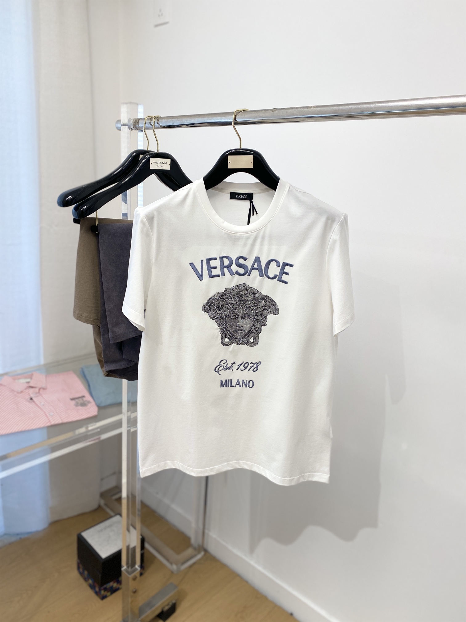 This clothes is AAAAA 1:1 quality (superb). Materials used are identical to the original ones. Versace trademark marks are indistinguishable to the authentic. Photos take by actual clothes, what you receive will be 100% same with our photos.