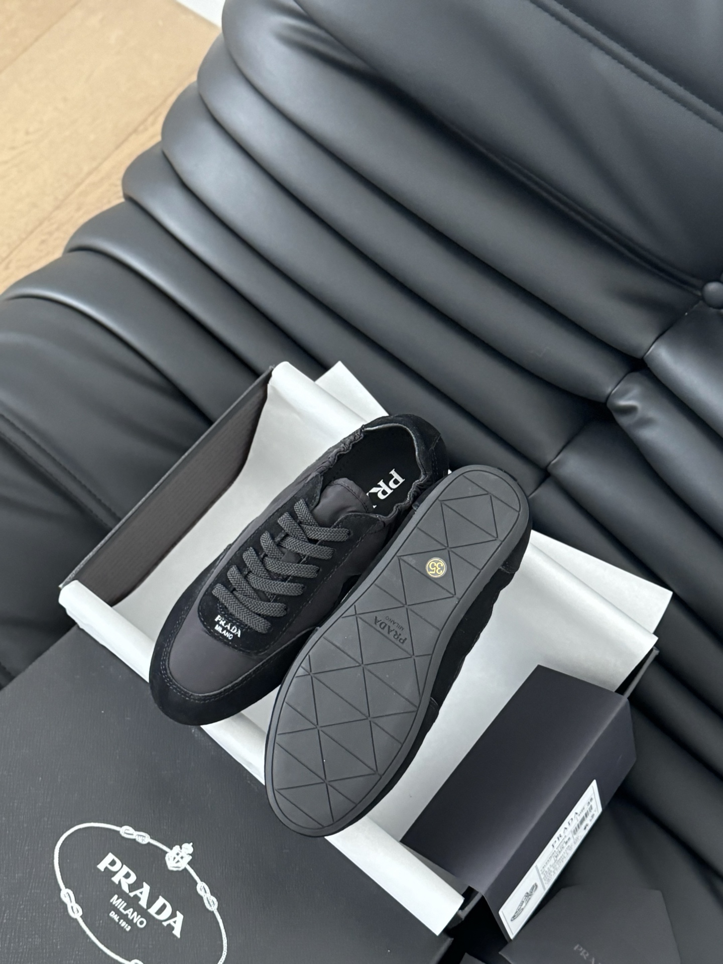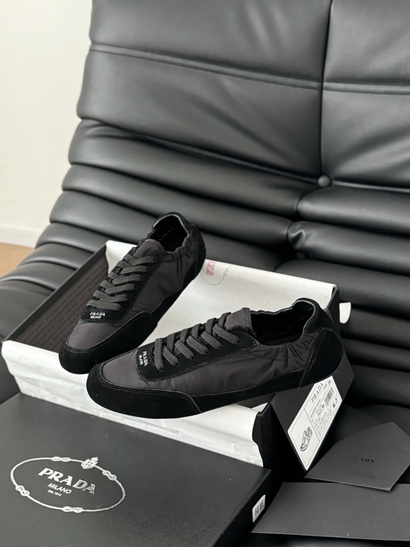 This shoes is AAAAA 1:1 quality (superb). Materials used are identical to the original ones. Prada trademark marks are indistinguishable to the authentic. Photos take by actual shoes, what you receive will be 100% same with our photos.