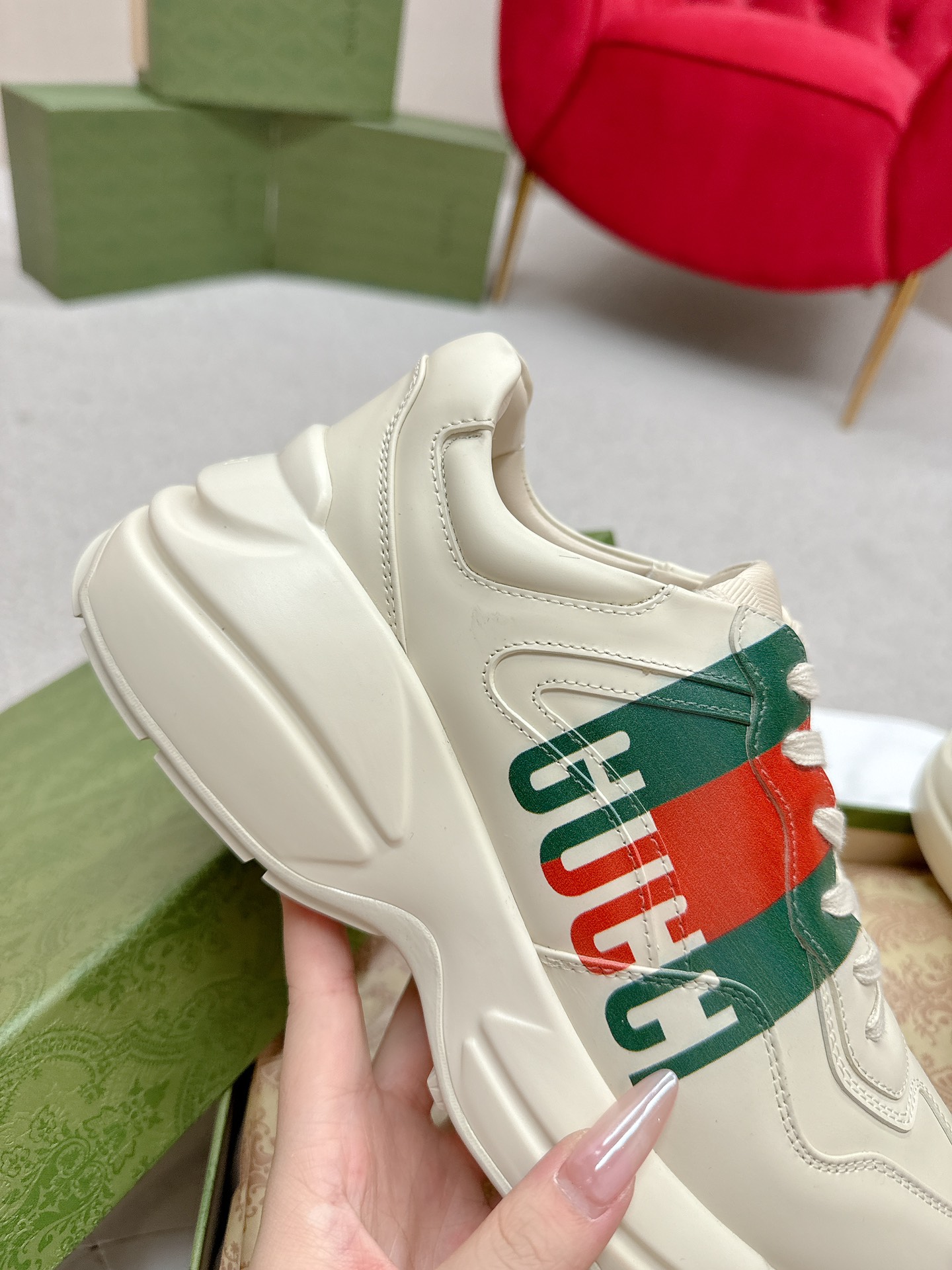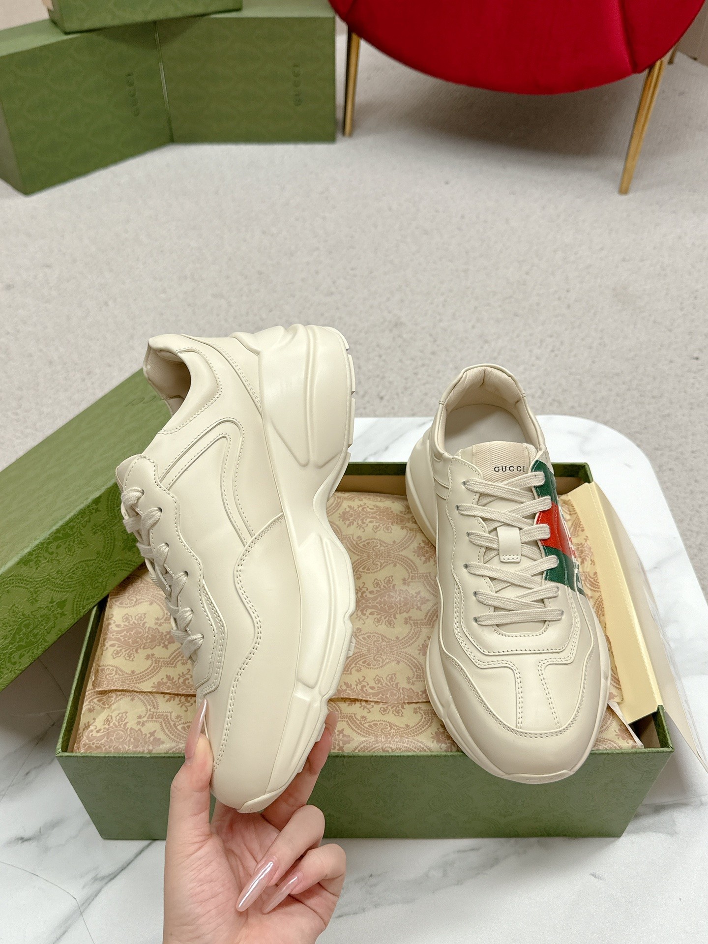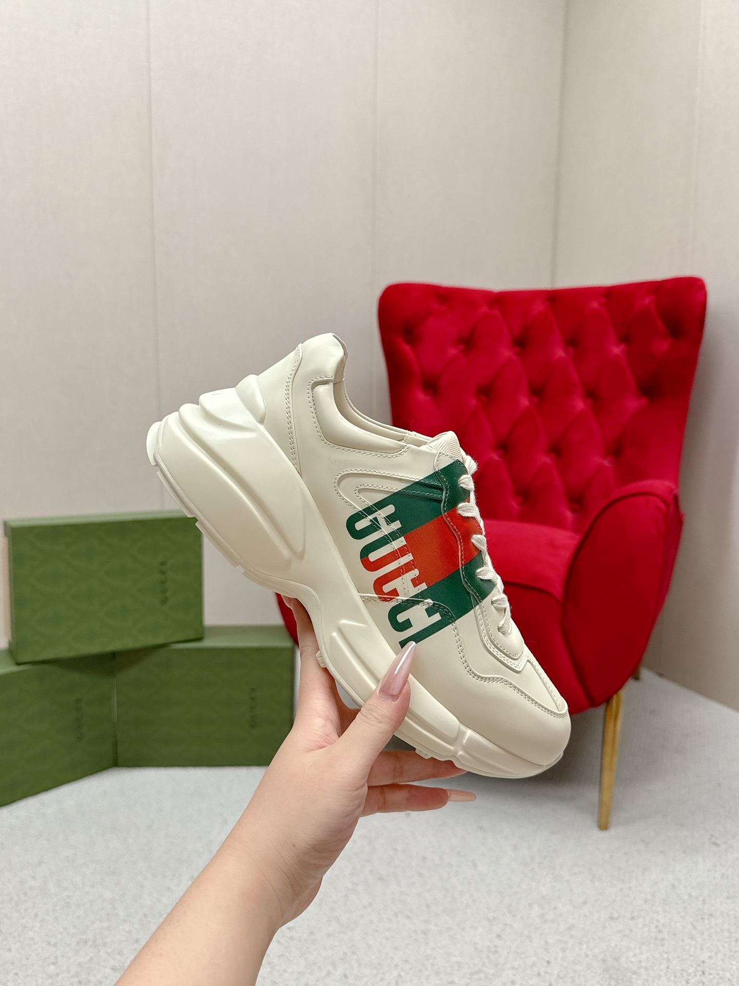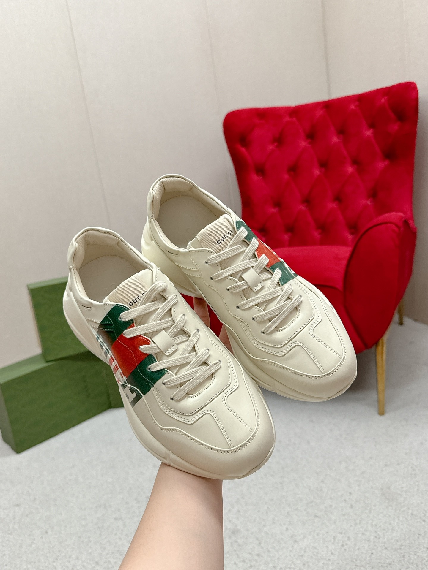 This shoes is AAAAA 1:1 quality (superb). Materials used are identical to the original ones. Gucci trademark marks are indistinguishable to the authentic. Photos take by actual shoes, what you receive will be 100% same with our photos.