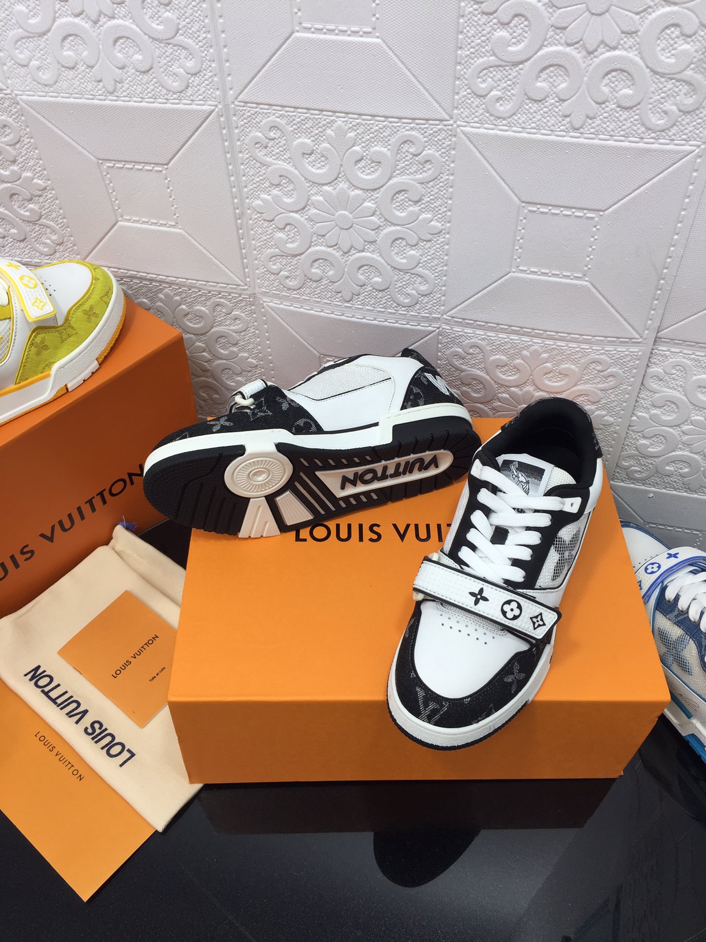 This shoes is AAAAA 1:1 quality (superb). Materials used are identical to the original ones. Louis Vuitton trademark marks are indistinguishable to the authentic. Photos take by actual shoes, what you receive will be 100% same with our photos.