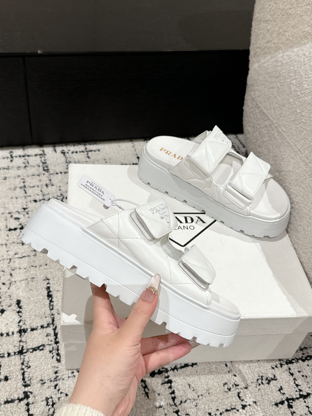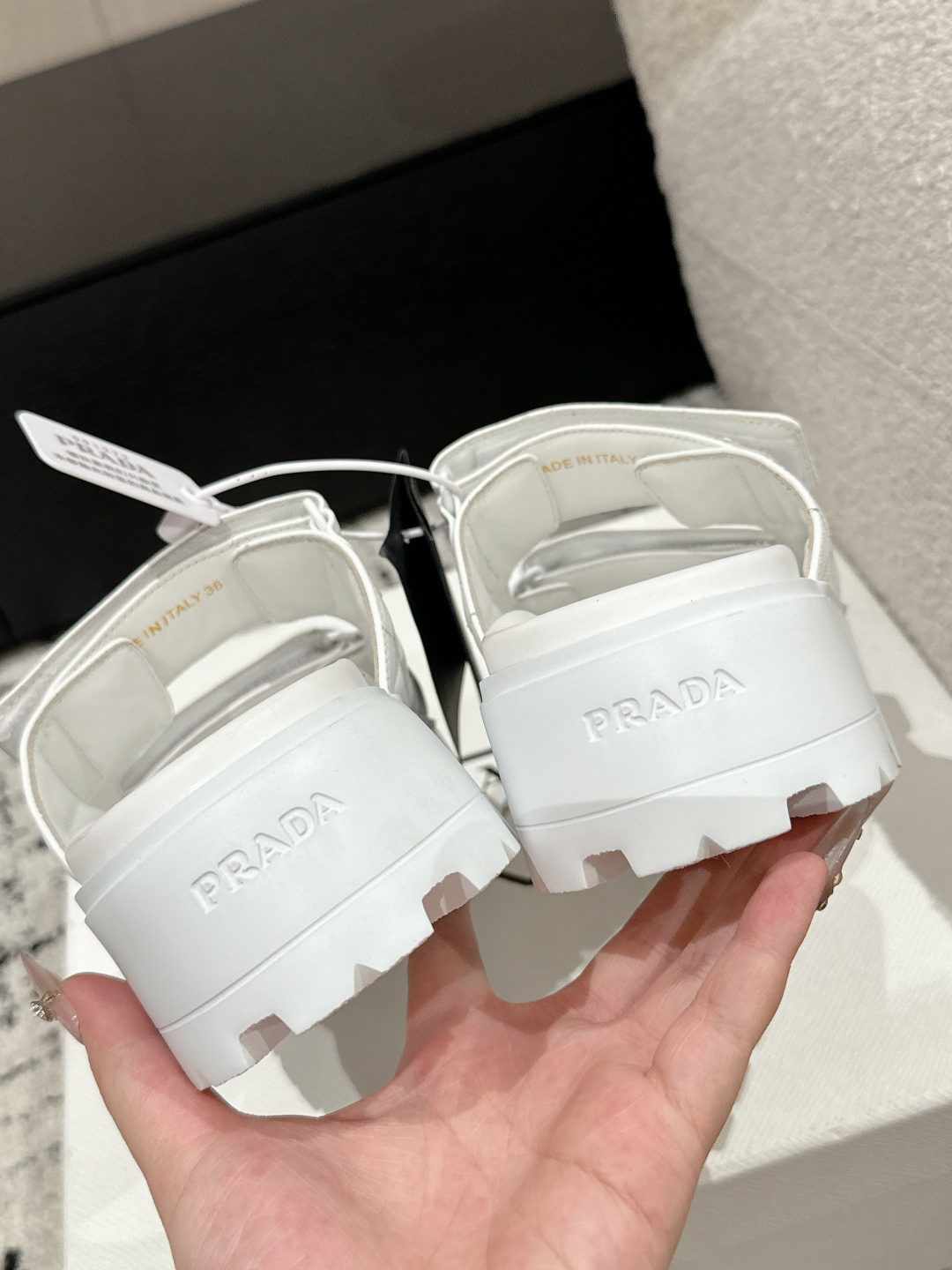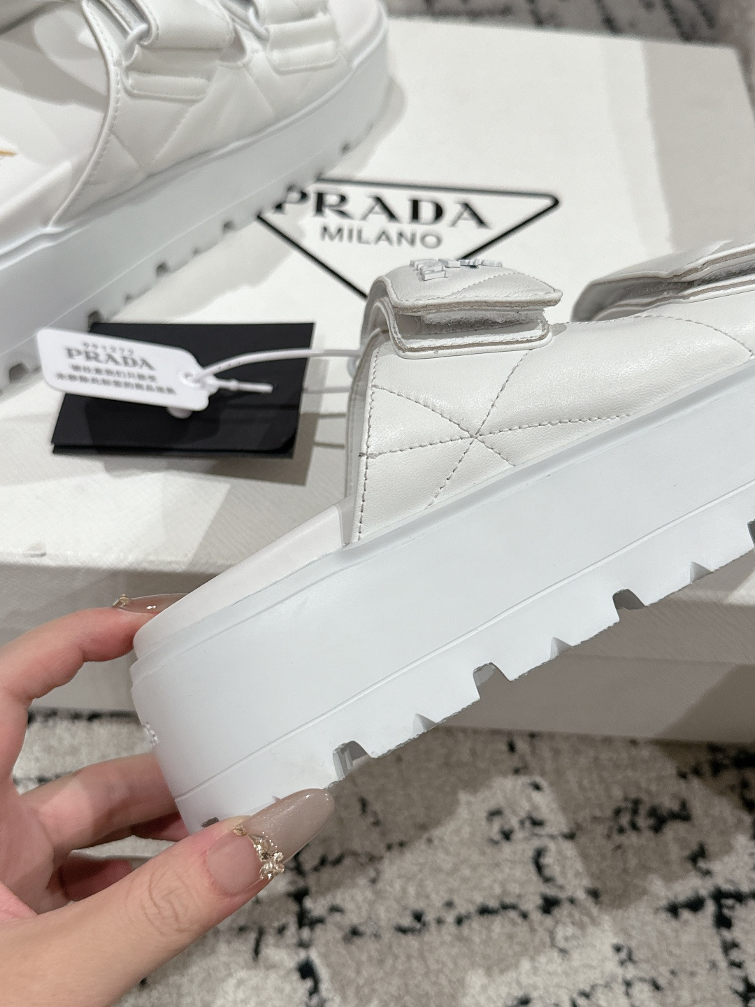 This shoes is AAAAA 1:1 quality (superb). Materials used are identical to the original ones. Prada trademark marks are indistinguishable to the authentic. Photos take by actual shoes, what you receive will be 100% same with our photos.