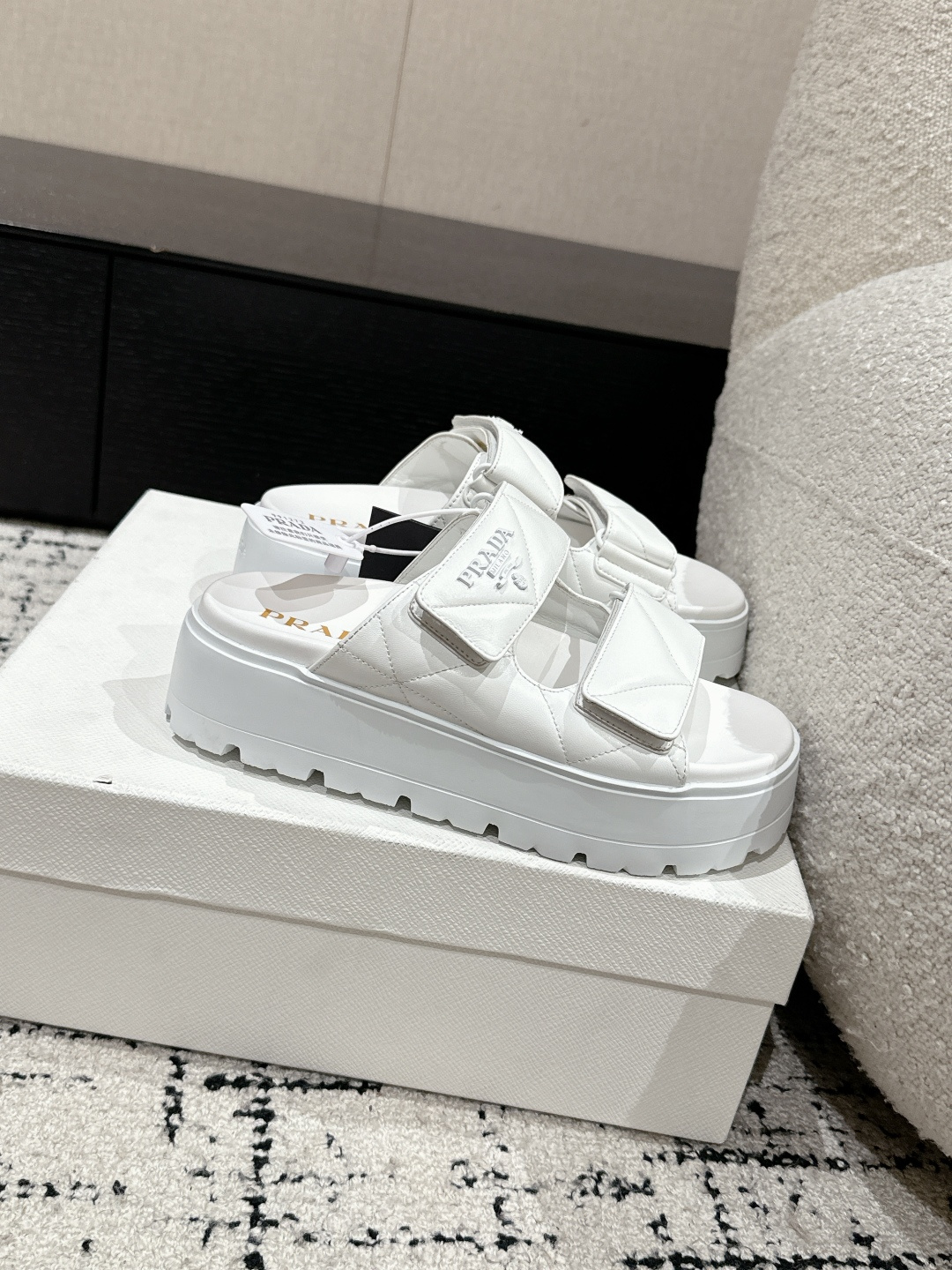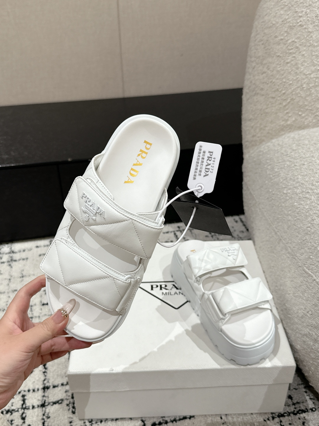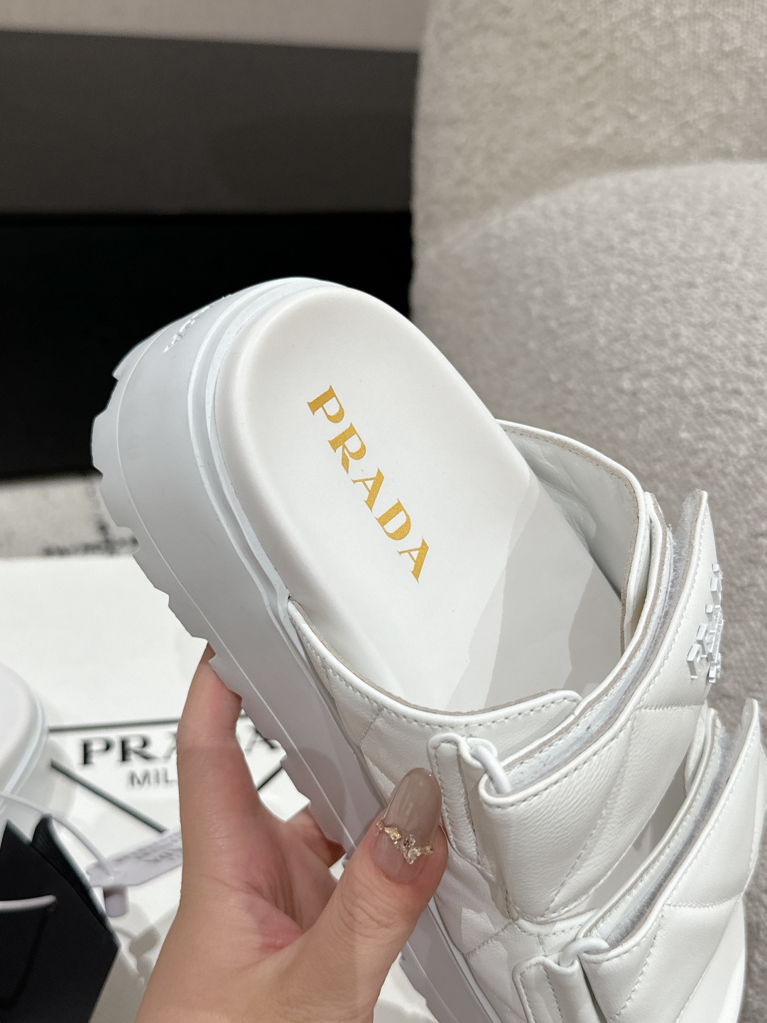 This shoes is AAAAA 1:1 quality (superb). Materials used are identical to the original ones. Prada trademark marks are indistinguishable to the authentic. Photos take by actual shoes, what you receive will be 100% same with our photos.