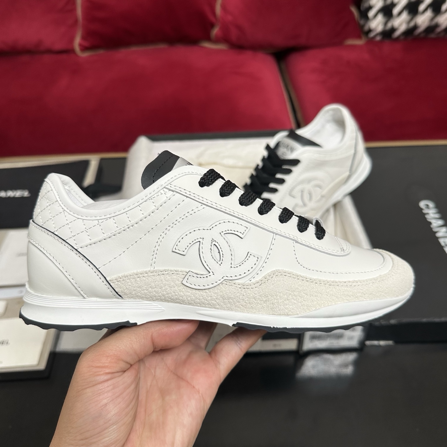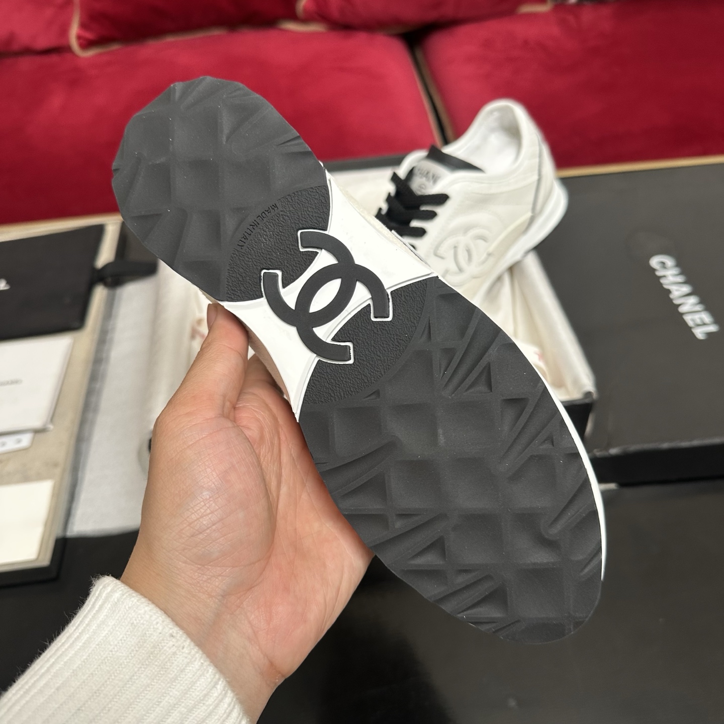 This shoes is AAAAA 1:1 quality (superb). Materials used are identical to the original ones. Chanel trademark marks are indistinguishable to the authentic. Photos take by actual shoes, what you receive will be 100% same with our photos.