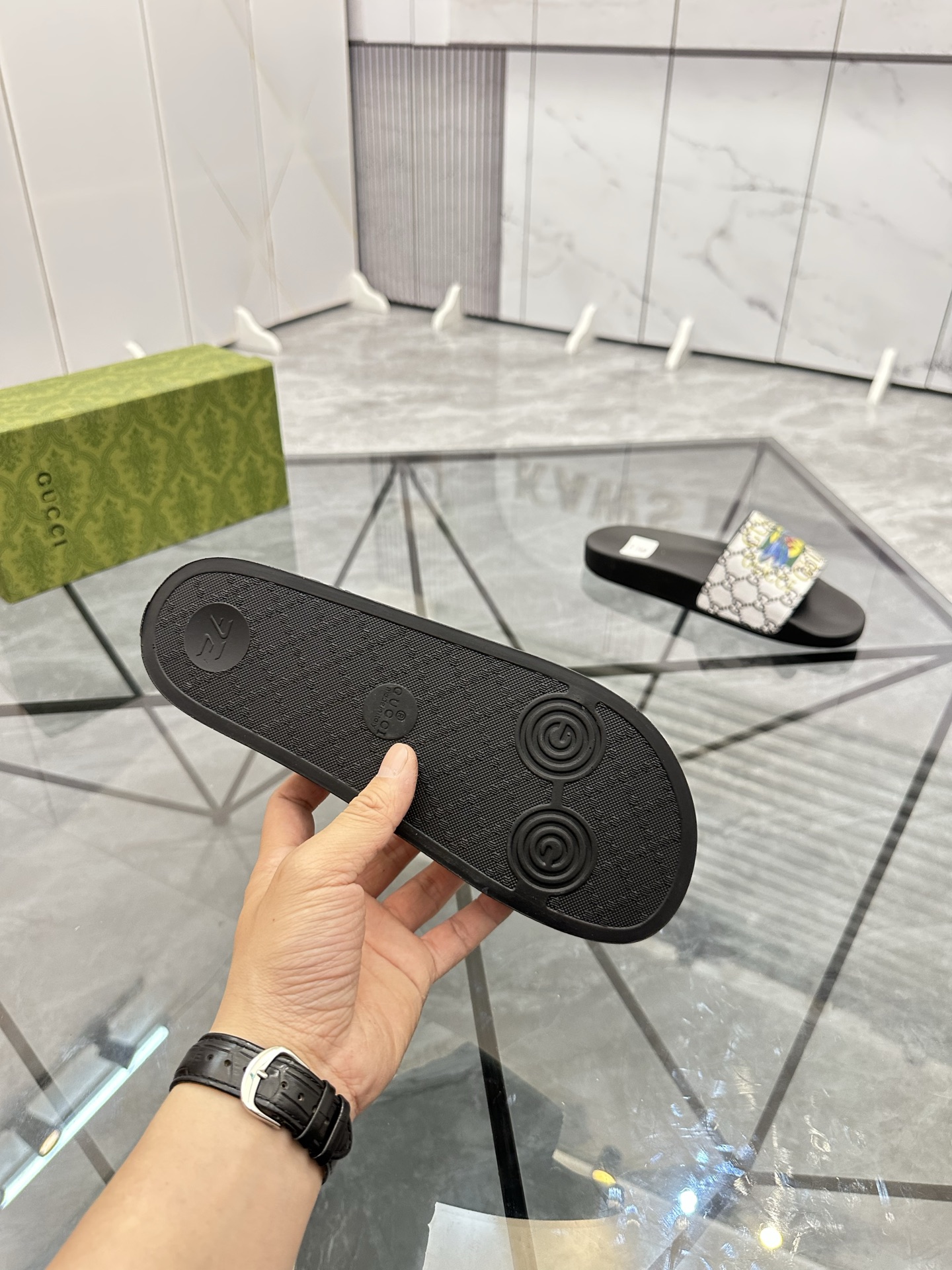 This shoes is AAAAA 1:1 quality (superb). Materials used are identical to the original ones. Gucci trademark marks are indistinguishable to the authentic. Photos take by actual shoes, what you receive will be 100% same with our photos.