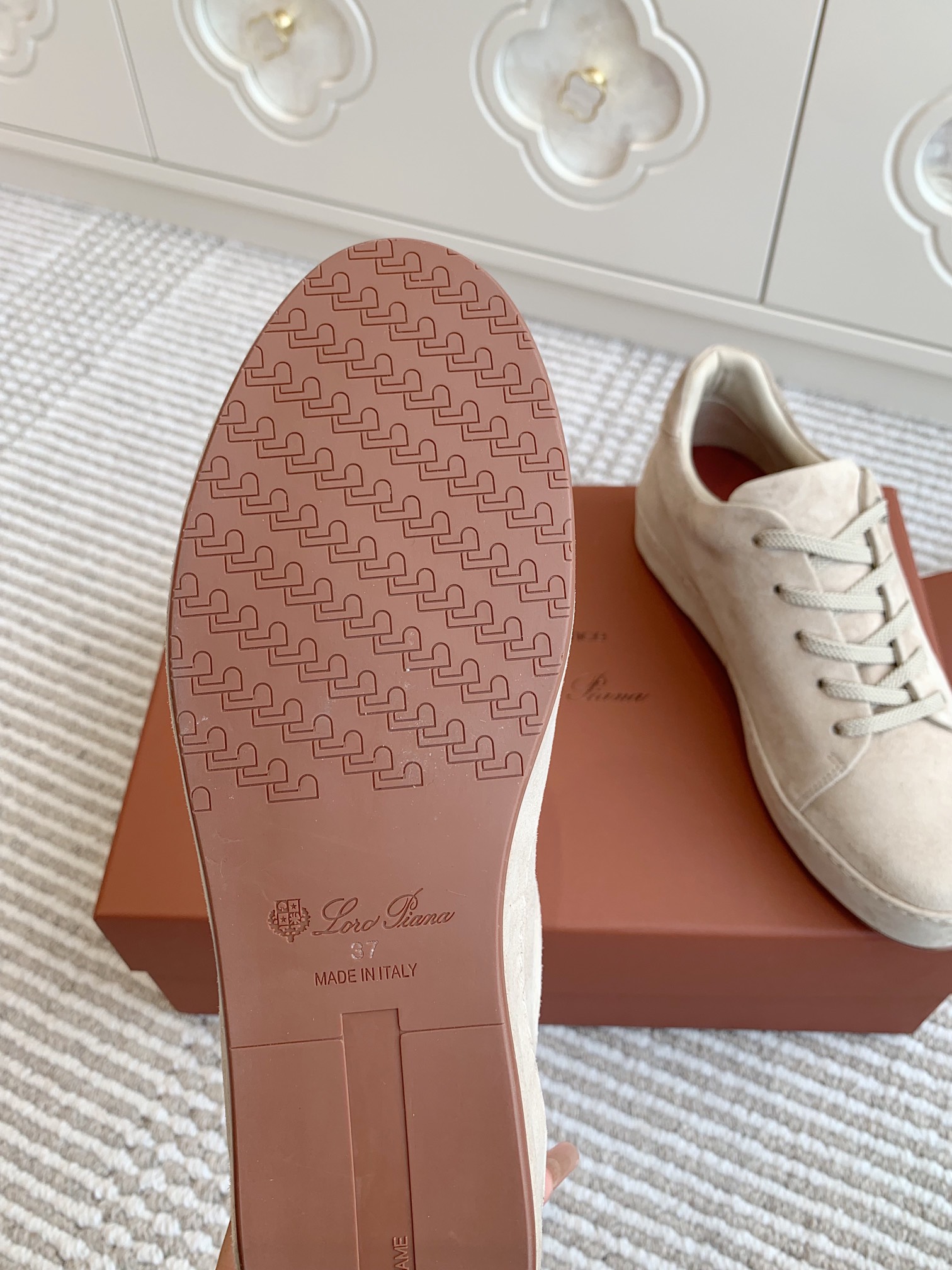 This shoes is AAAAA 1:1 quality (superb). Materials used are identical to the original ones. Loro Piana trademark marks are indistinguishable to the authentic. Photos take by actual shoes, what you receive will be 100% same with our photos.