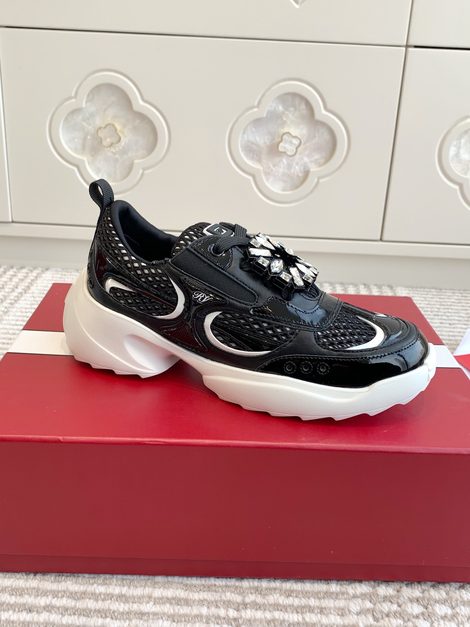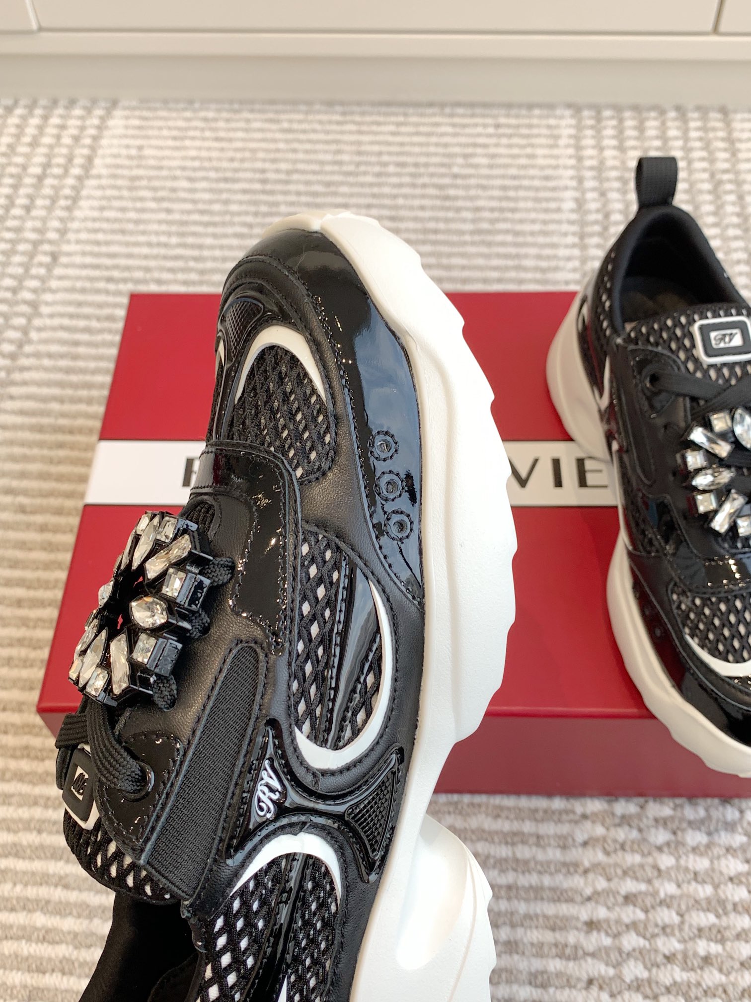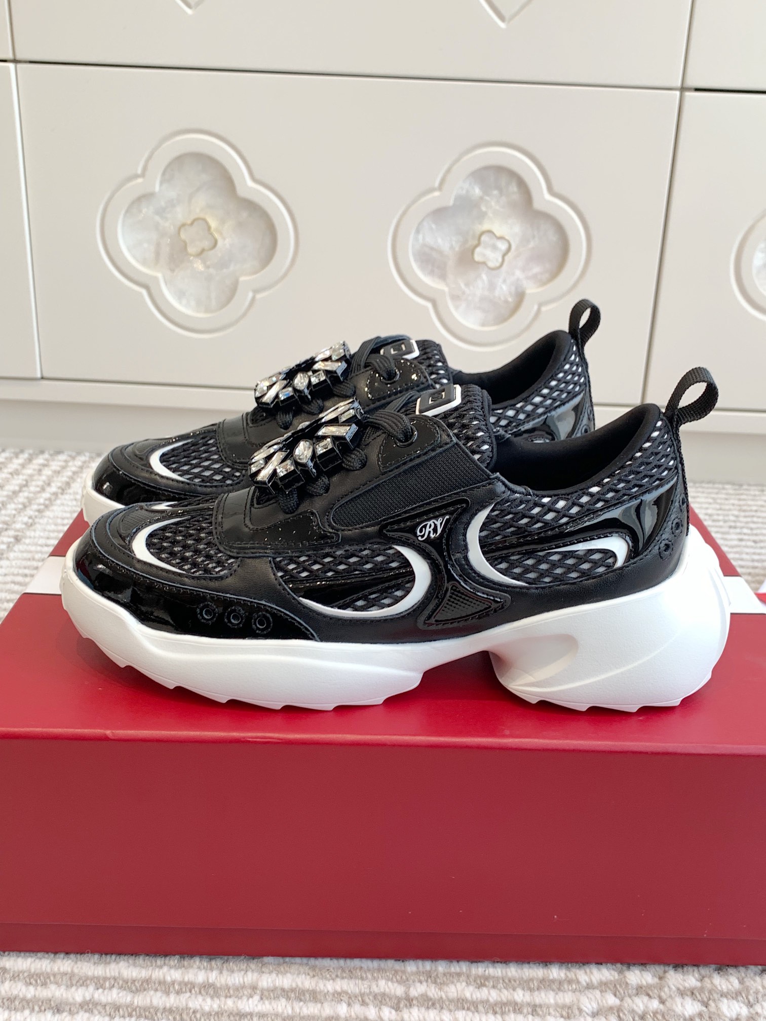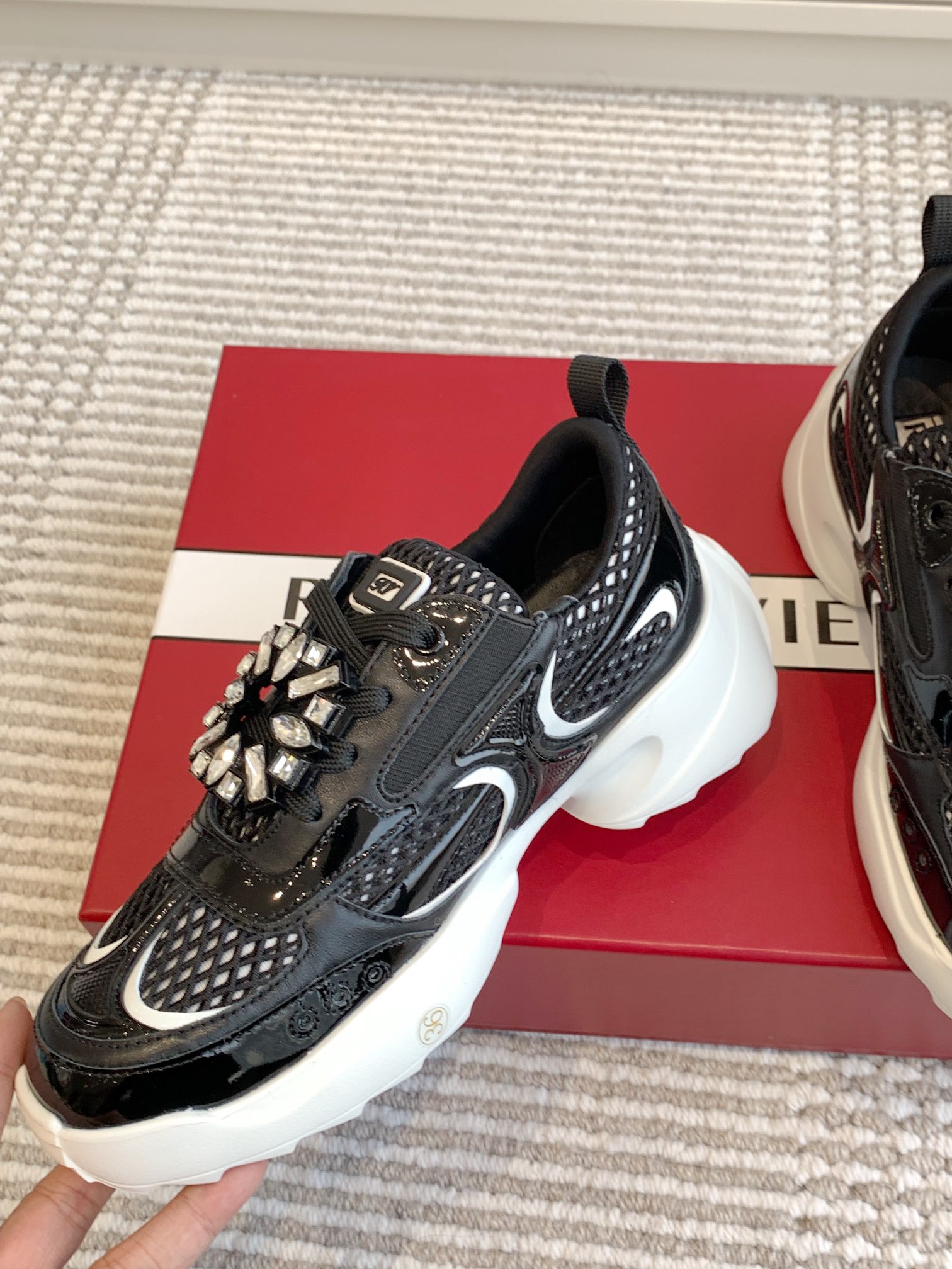 This shoes is AAAAA 1:1 quality (superb). Materials used are identical to the original ones. Roger Vivier trademark marks are indistinguishable to the authentic. Photos take by actual shoes, what you receive will be 100% same with our photos.