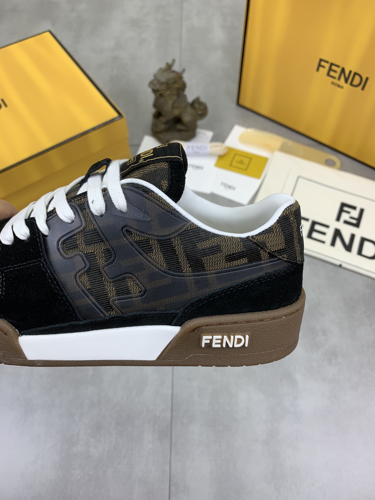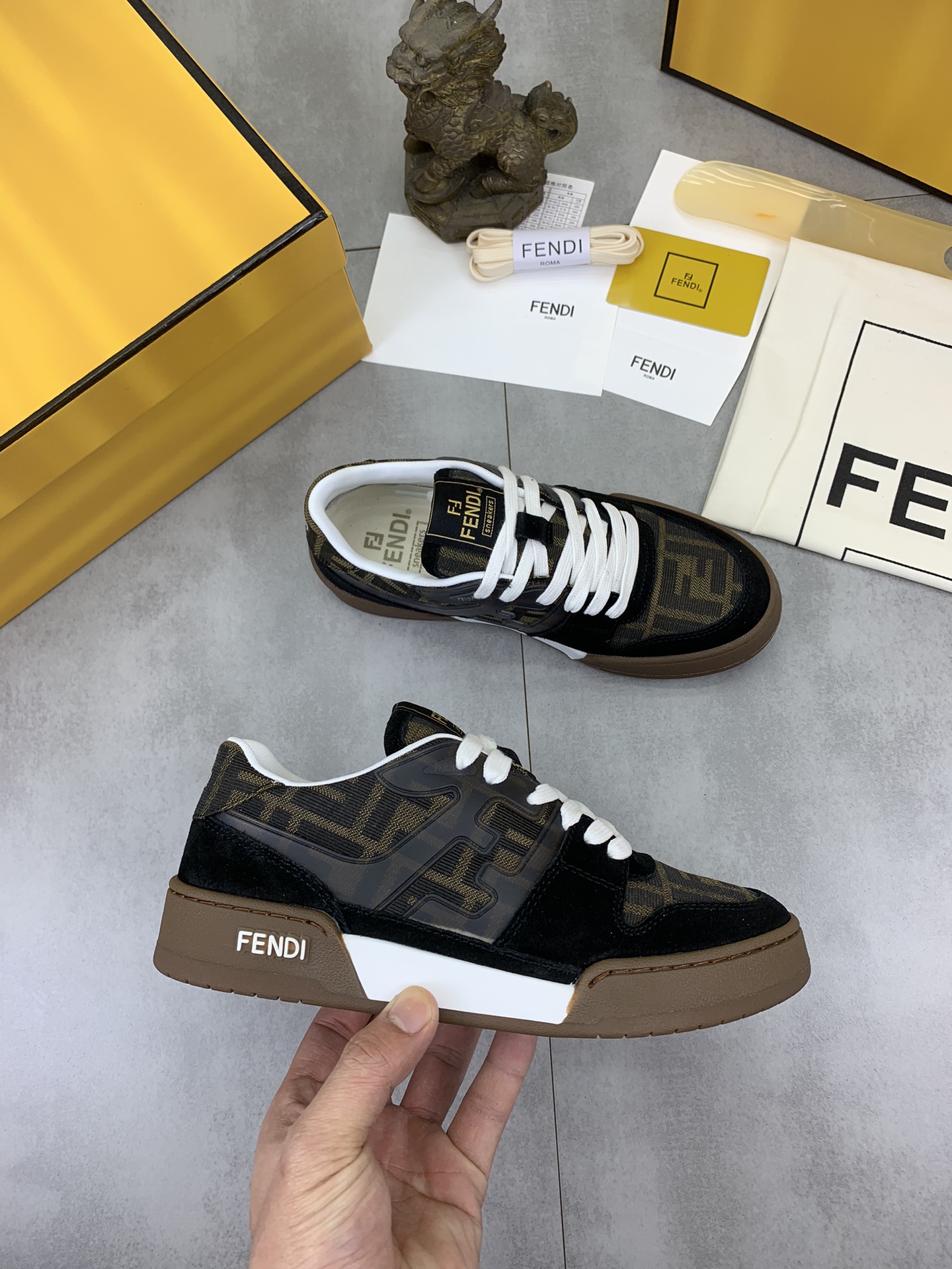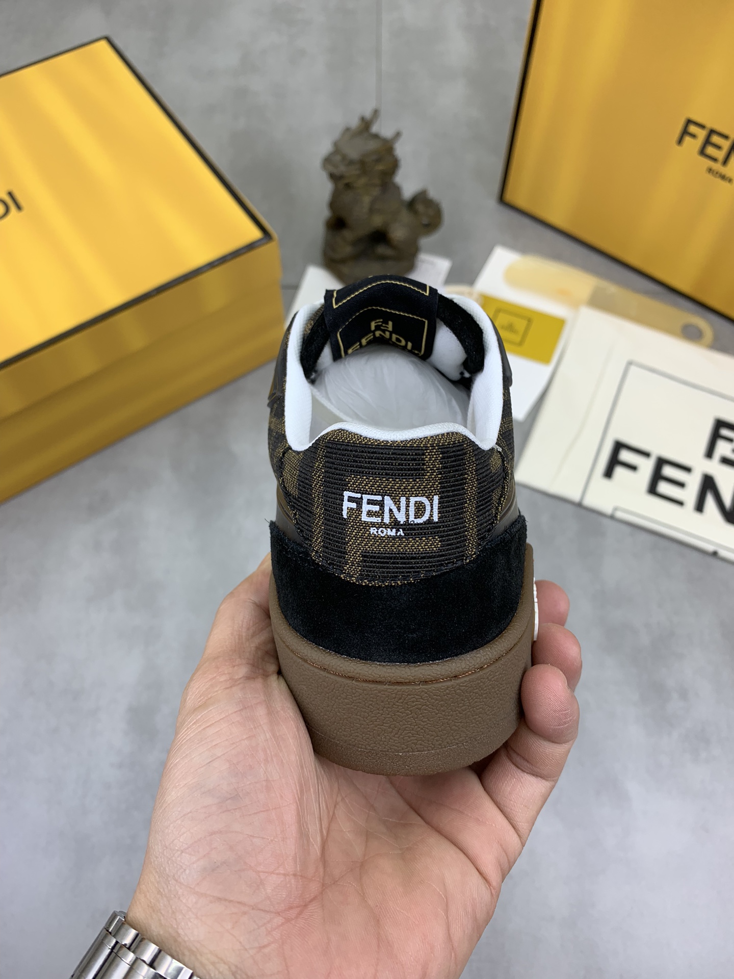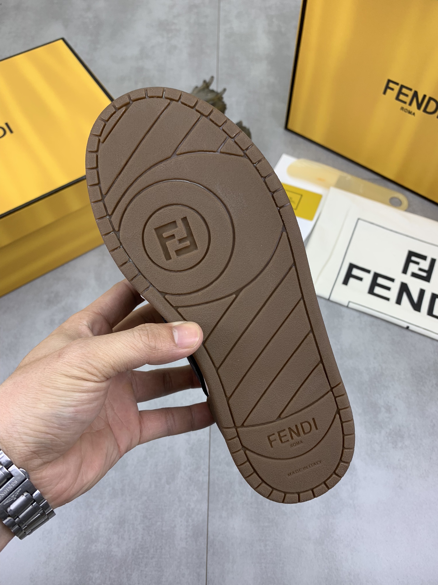 This shoes is AAAAA 1:1 quality (superb). Materials used are identical to the original ones. Fendi trademark marks are indistinguishable to the authentic. Photos take by actual shoes, what you receive will be 100% same with our photos.