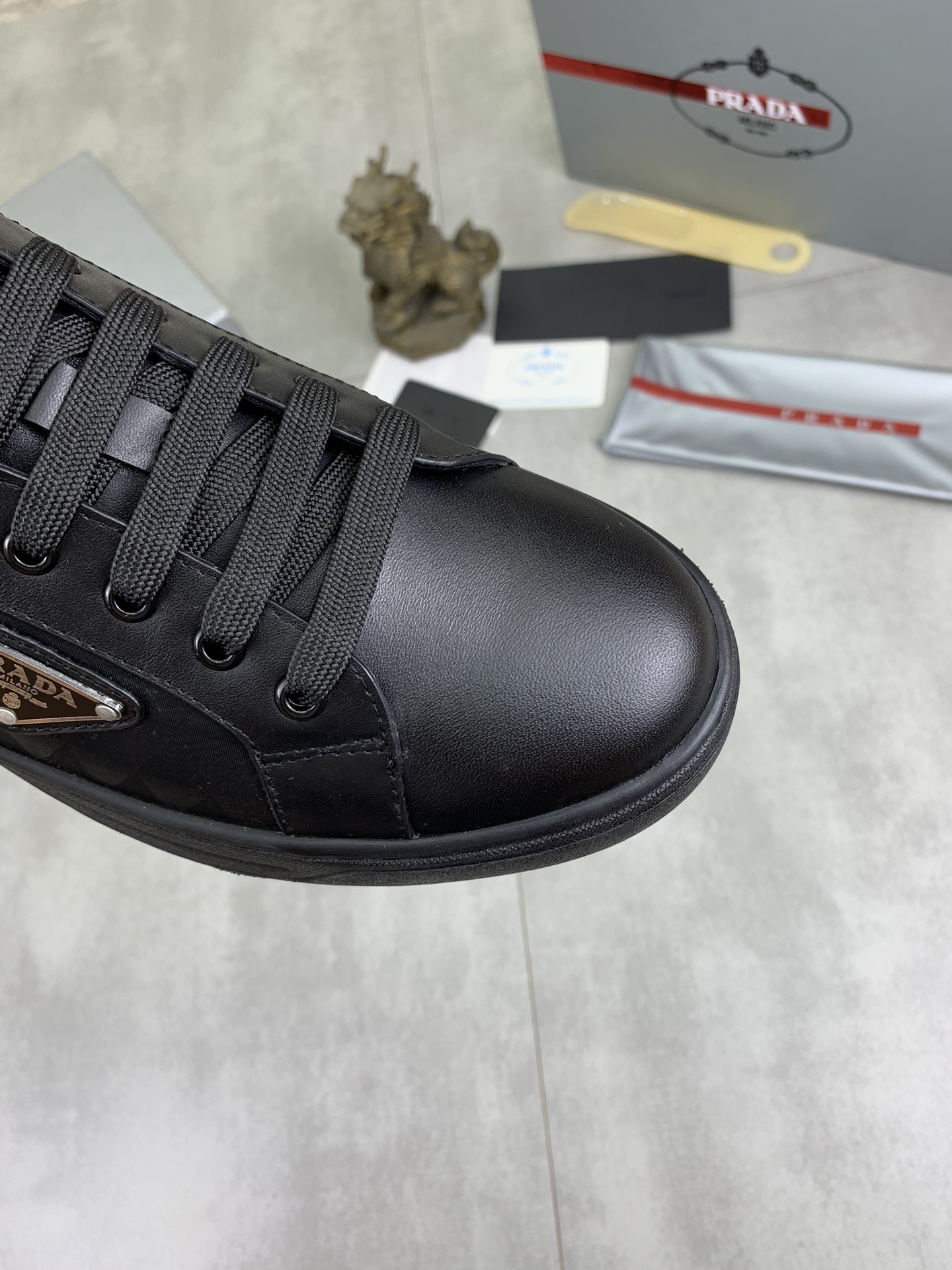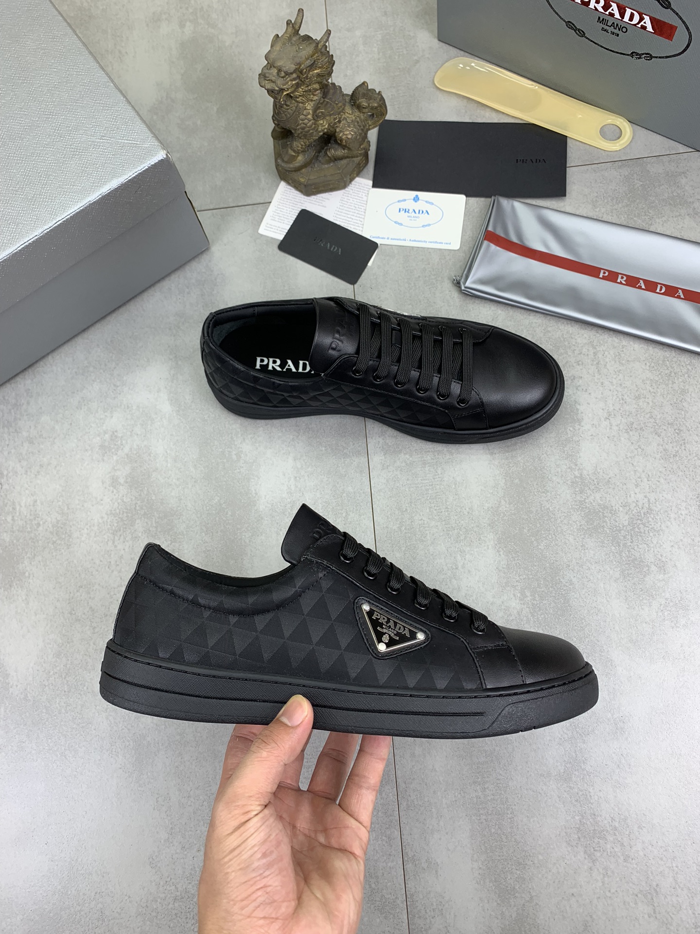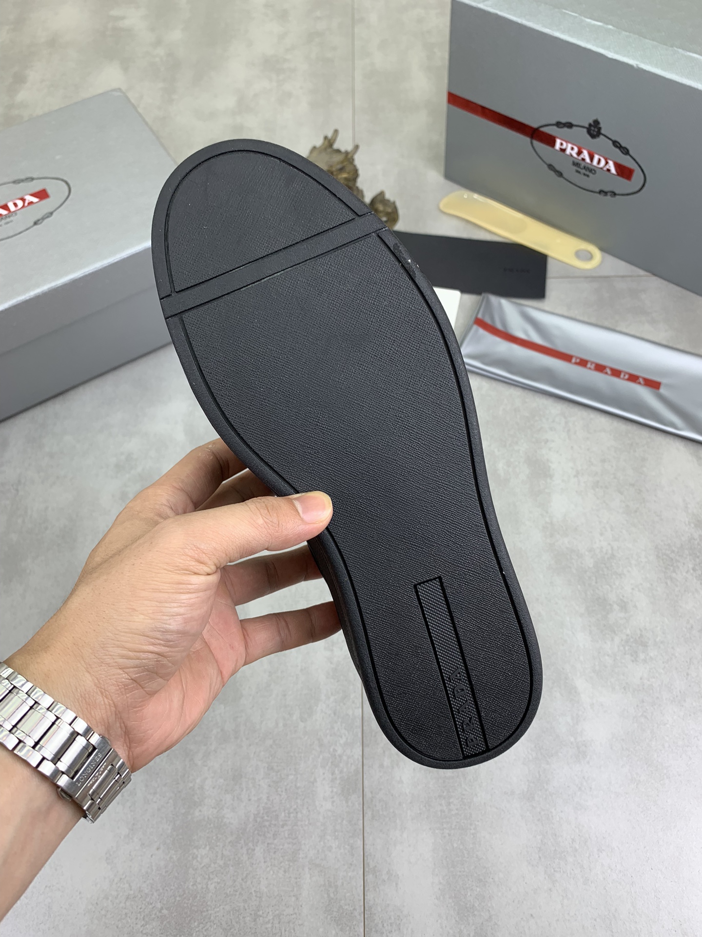 This shoes is AAAAA 1:1 quality (superb). Materials used are identical to the original ones. Prada trademark marks are indistinguishable to the authentic. Photos take by actual shoes, what you receive will be 100% same with our photos.