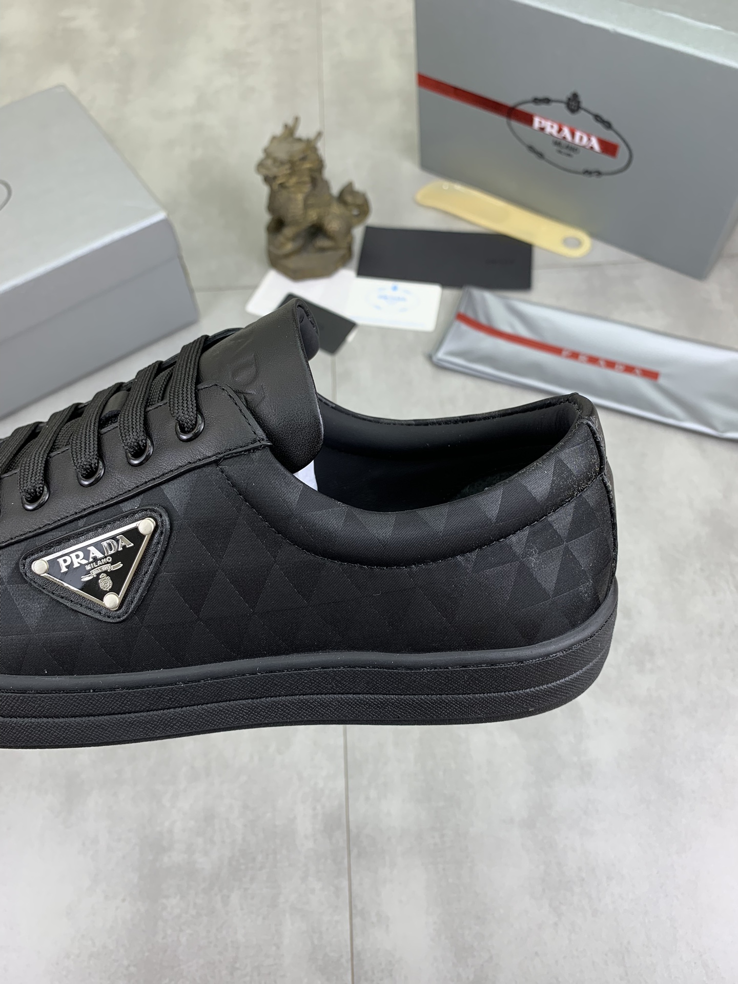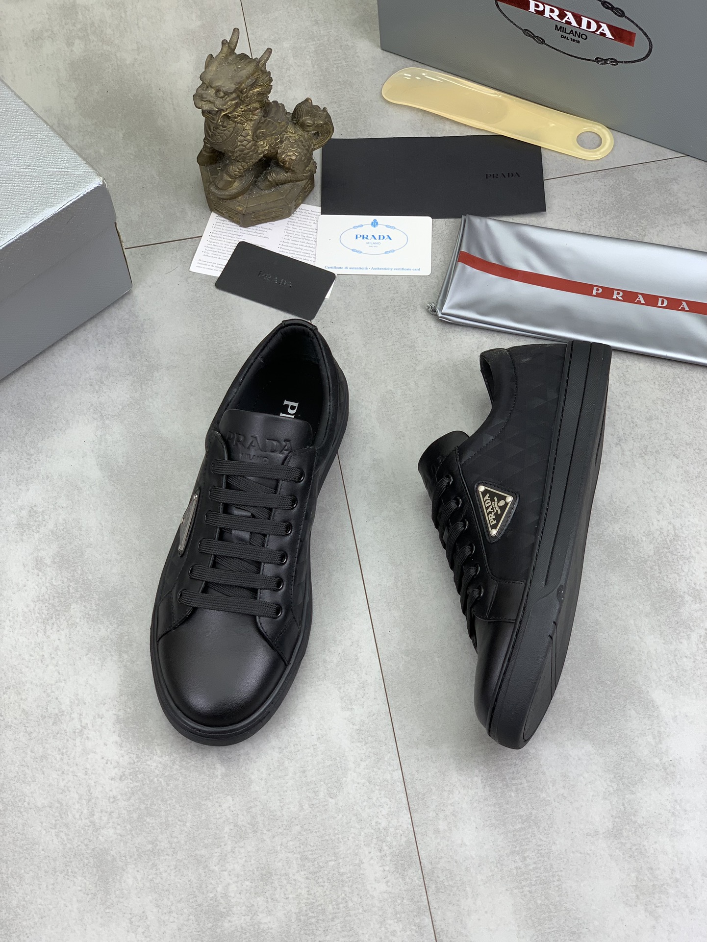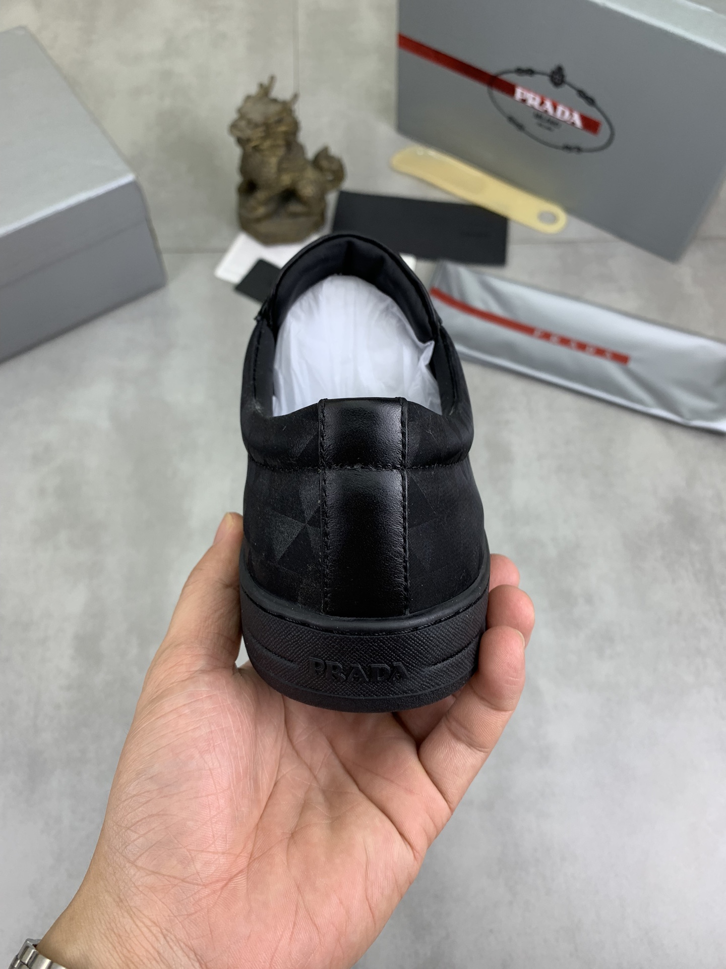 This shoes is AAAAA 1:1 quality (superb). Materials used are identical to the original ones. Prada trademark marks are indistinguishable to the authentic. Photos take by actual shoes, what you receive will be 100% same with our photos.