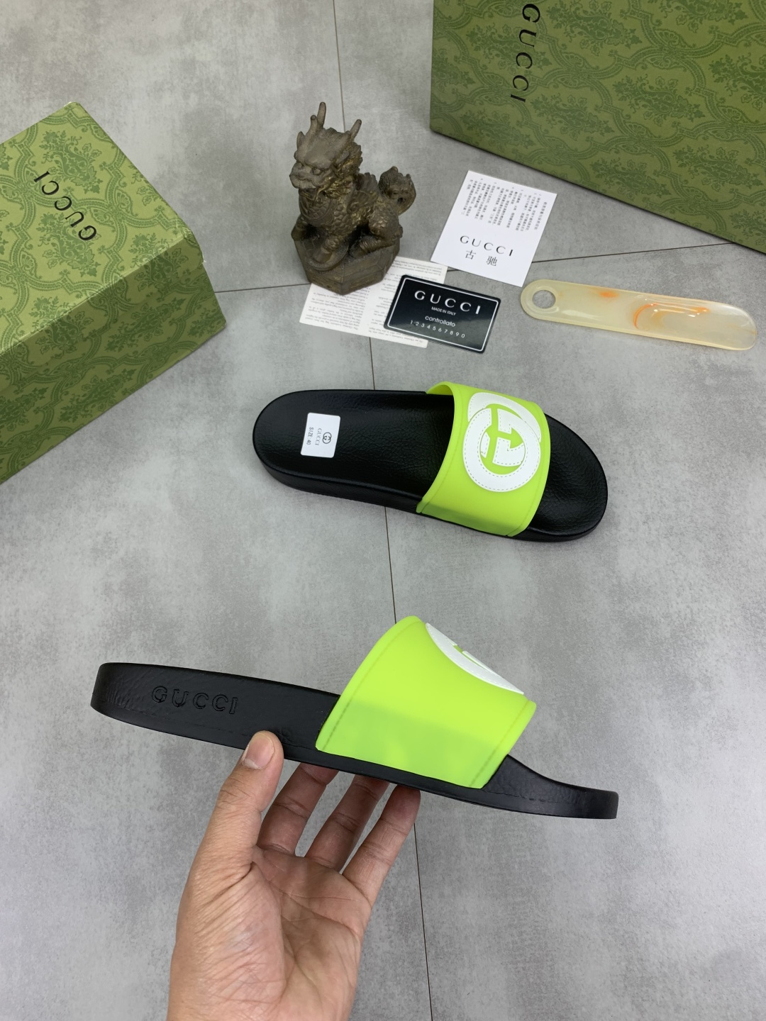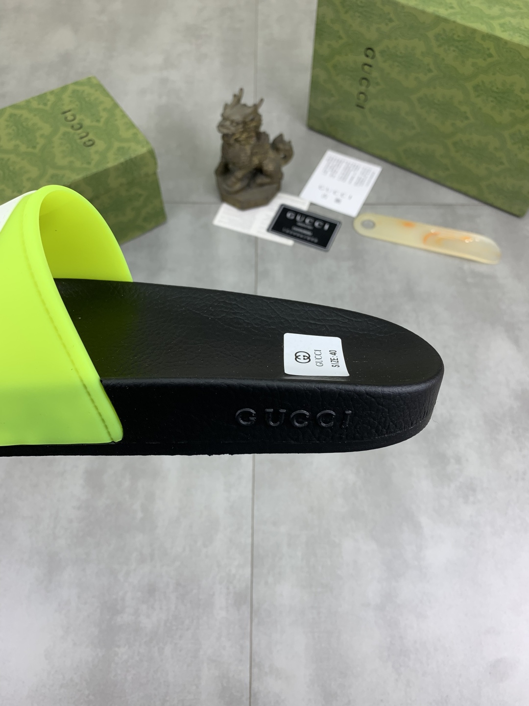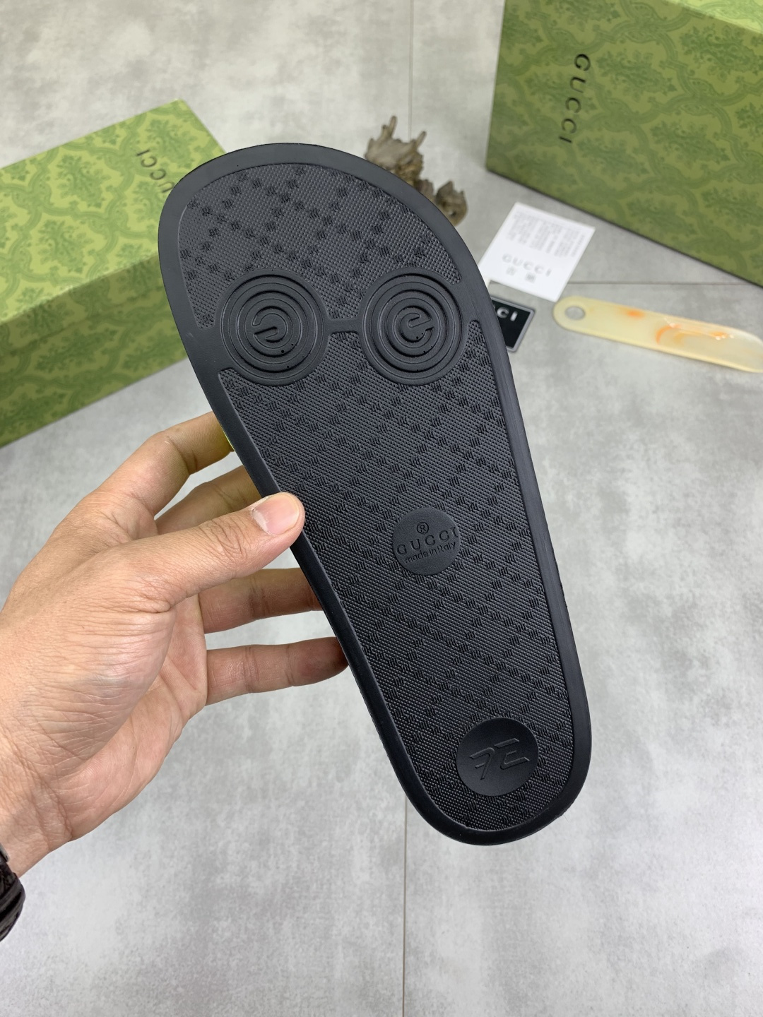 This shoes is AAAAA 1:1 quality (superb). Materials used are identical to the original ones. Gucci trademark marks are indistinguishable to the authentic. Photos take by actual shoes, what you receive will be 100% same with our photos.