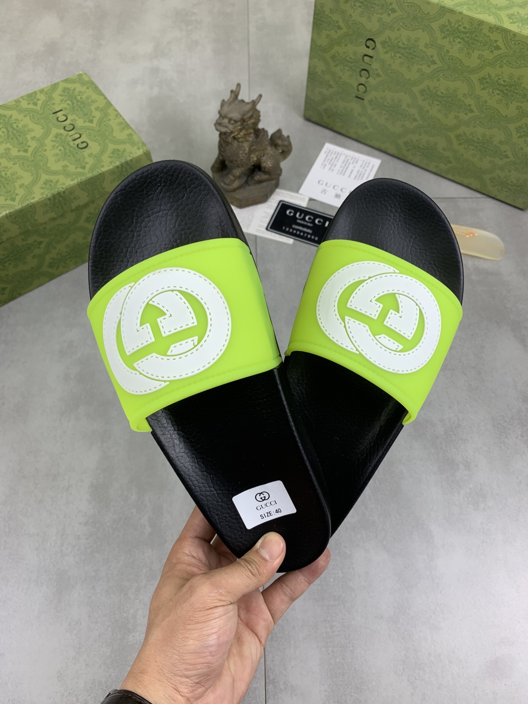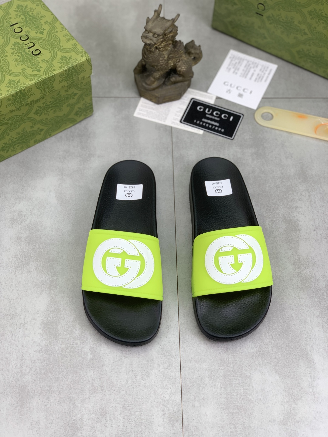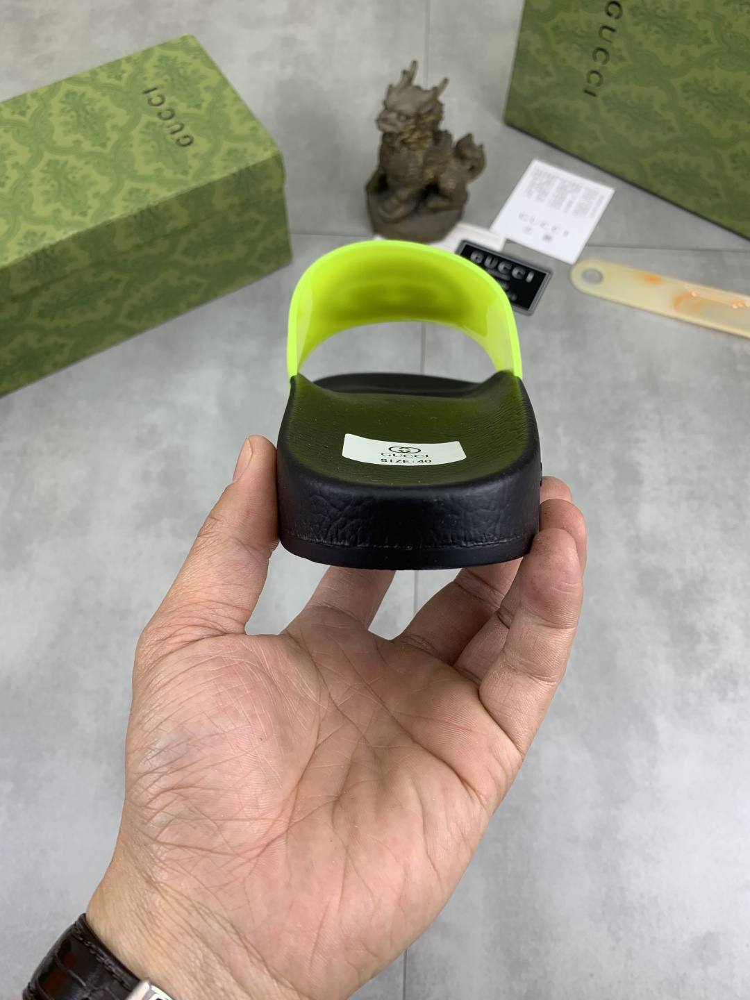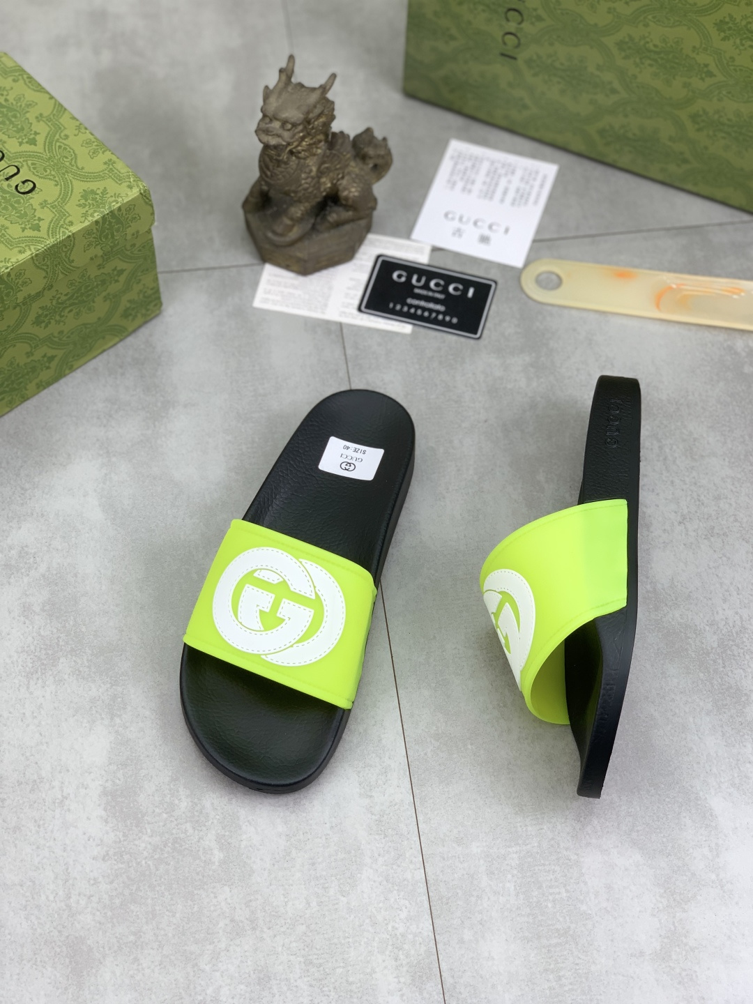 This shoes is AAAAA 1:1 quality (superb). Materials used are identical to the original ones. Gucci trademark marks are indistinguishable to the authentic. Photos take by actual shoes, what you receive will be 100% same with our photos.