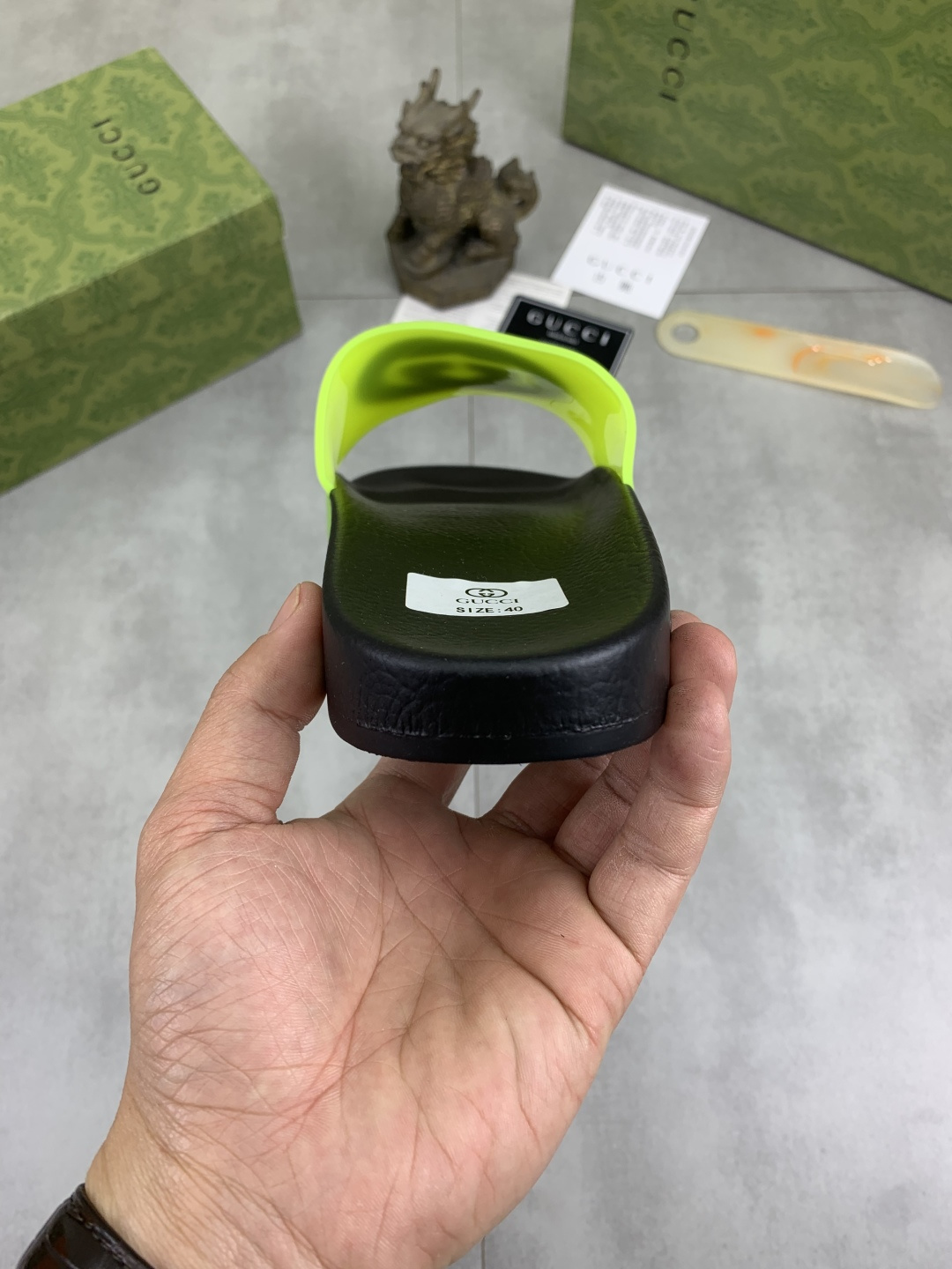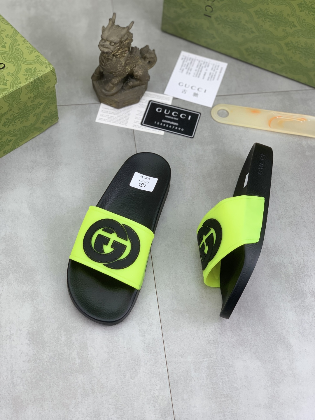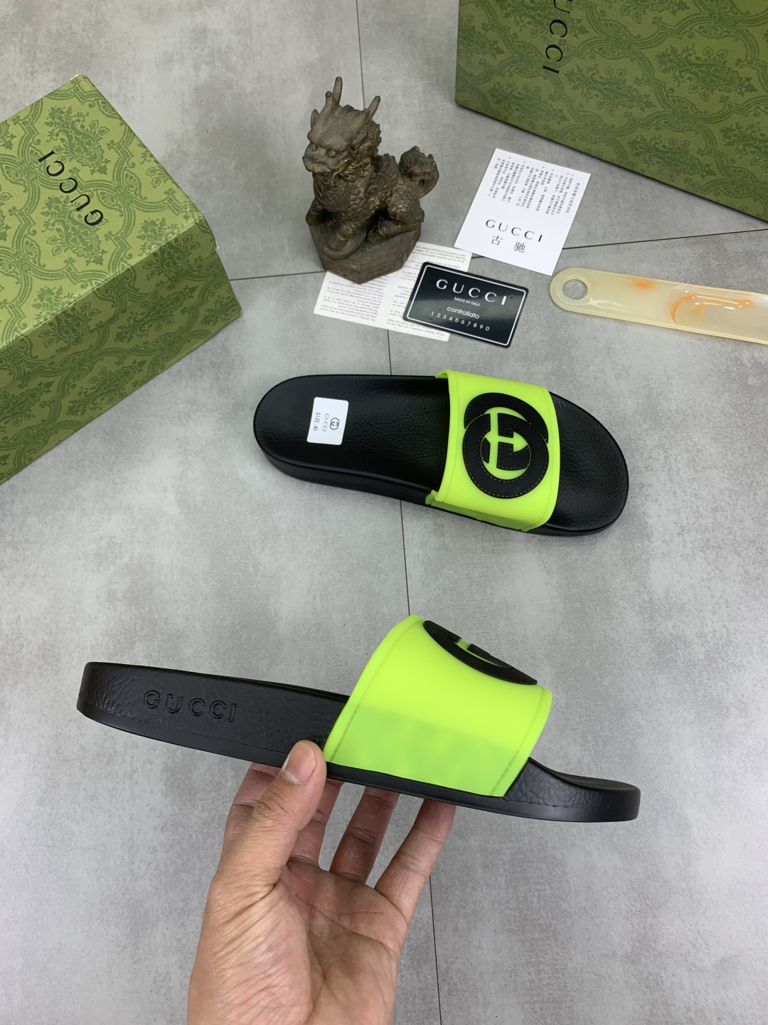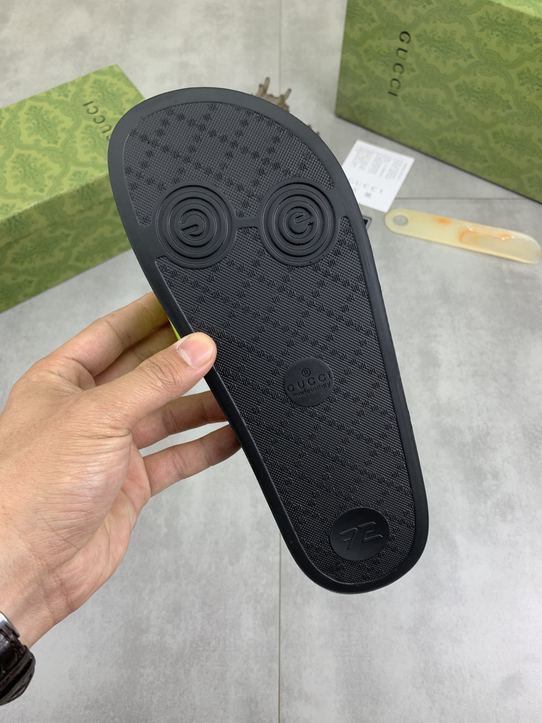 This shoes is AAAAA 1:1 quality (superb). Materials used are identical to the original ones. Gucci trademark marks are indistinguishable to the authentic. Photos take by actual shoes, what you receive will be 100% same with our photos.