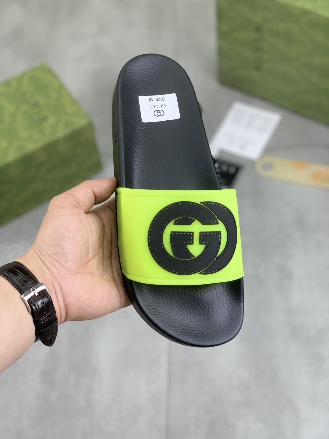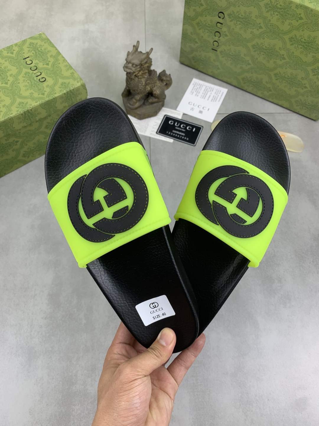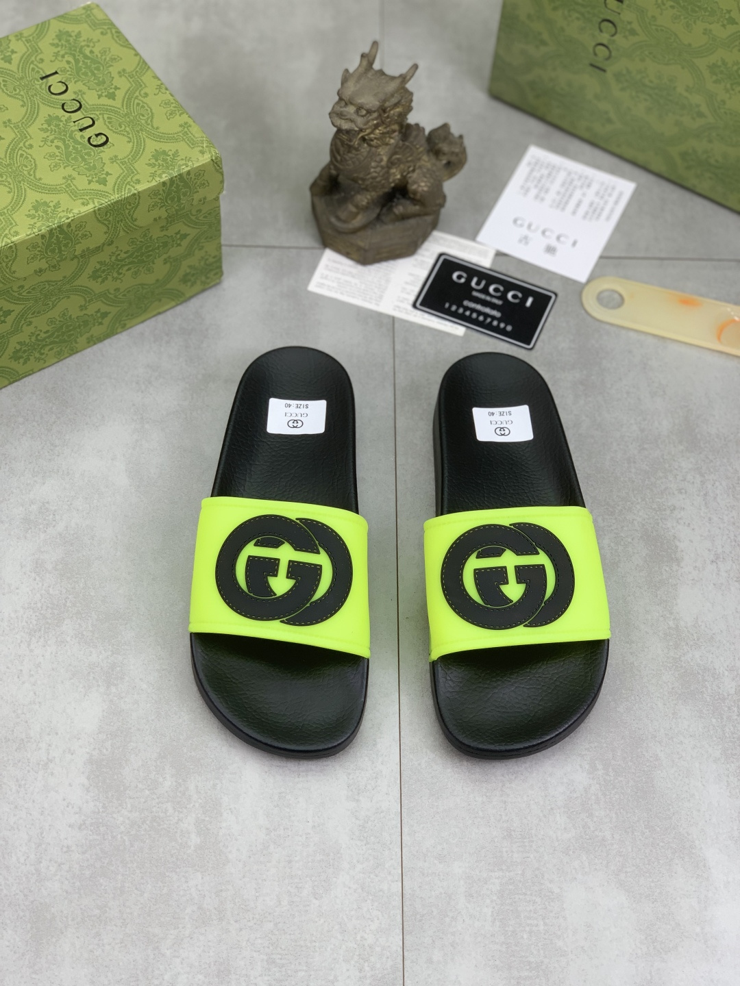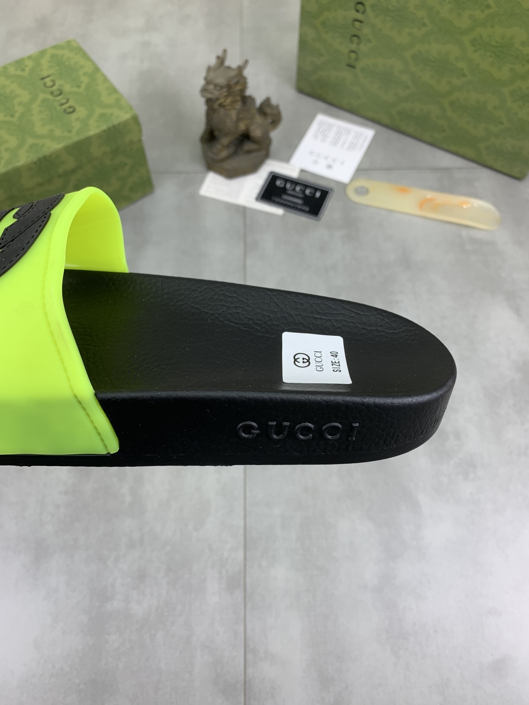 This shoes is AAAAA 1:1 quality (superb). Materials used are identical to the original ones. Gucci trademark marks are indistinguishable to the authentic. Photos take by actual shoes, what you receive will be 100% same with our photos.