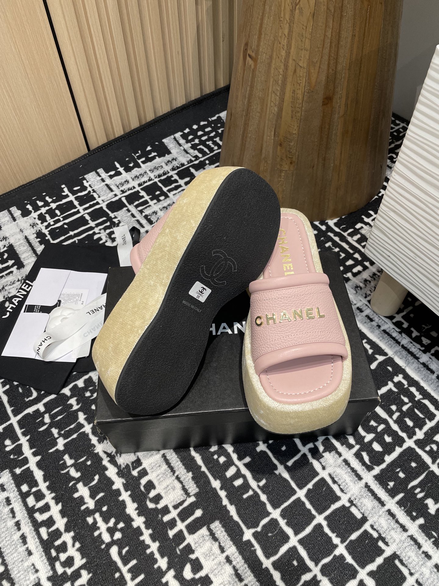 This shoes is AAAAA 1:1 quality (superb). Materials used are identical to the original ones. Chanel trademark marks are indistinguishable to the authentic. Photos take by actual shoes, what you receive will be 100% same with our photos.