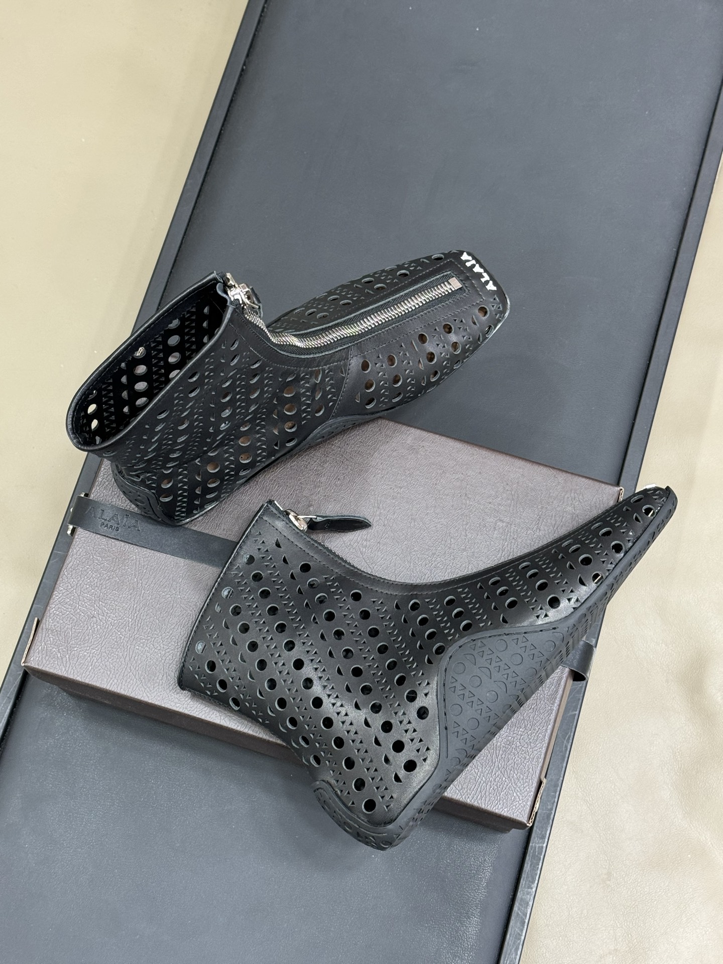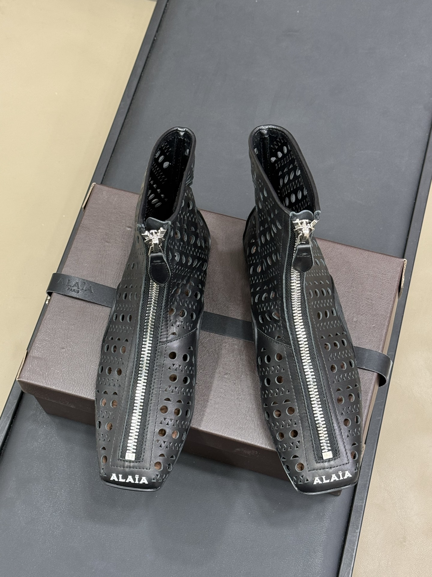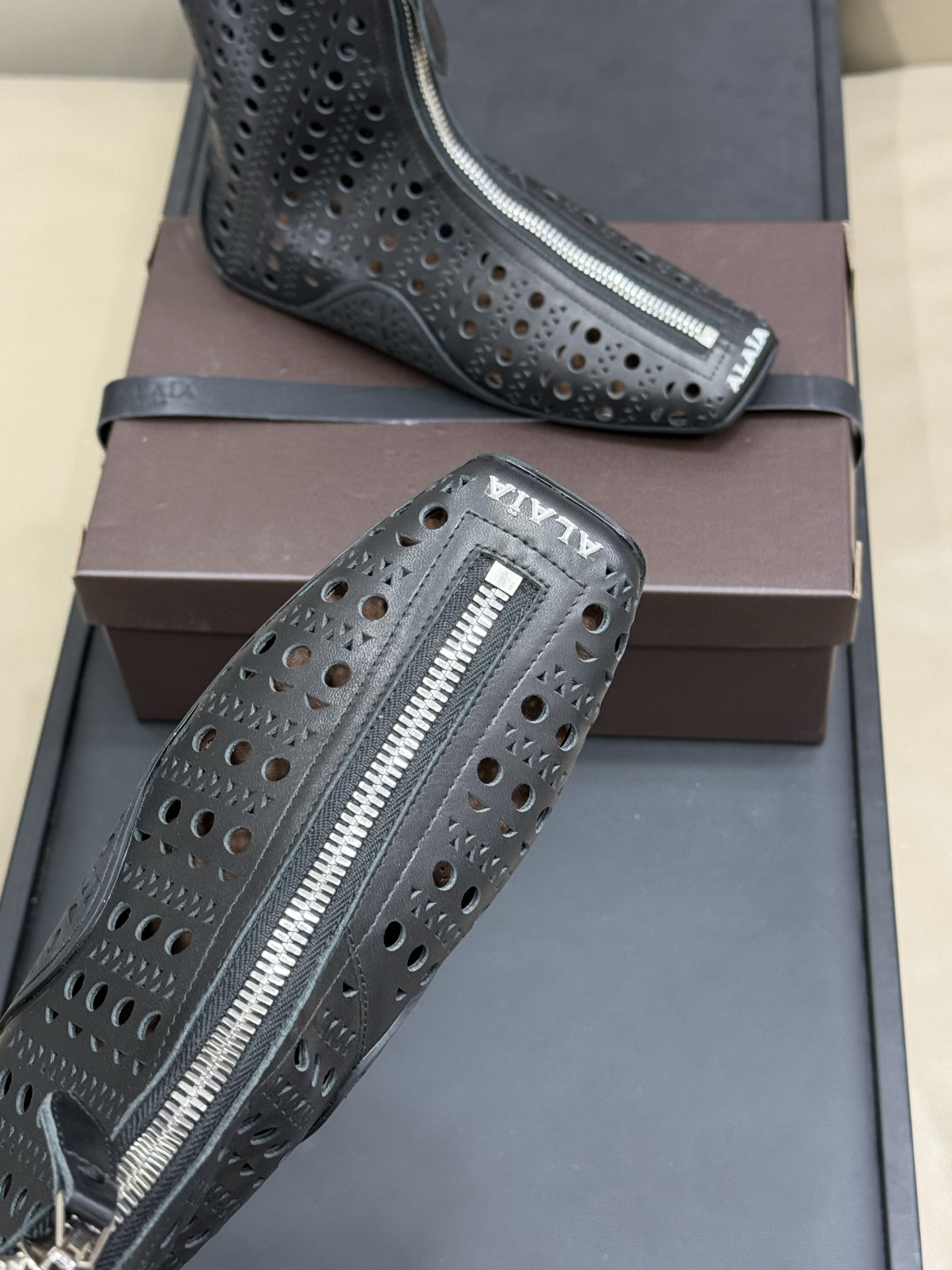 This shoes is AAAAA 1:1 quality (superb). Materials used are identical to the original ones. Alaia trademark marks are indistinguishable to the authentic. Photos take by actual shoes, what you receive will be 100% same with our photos.