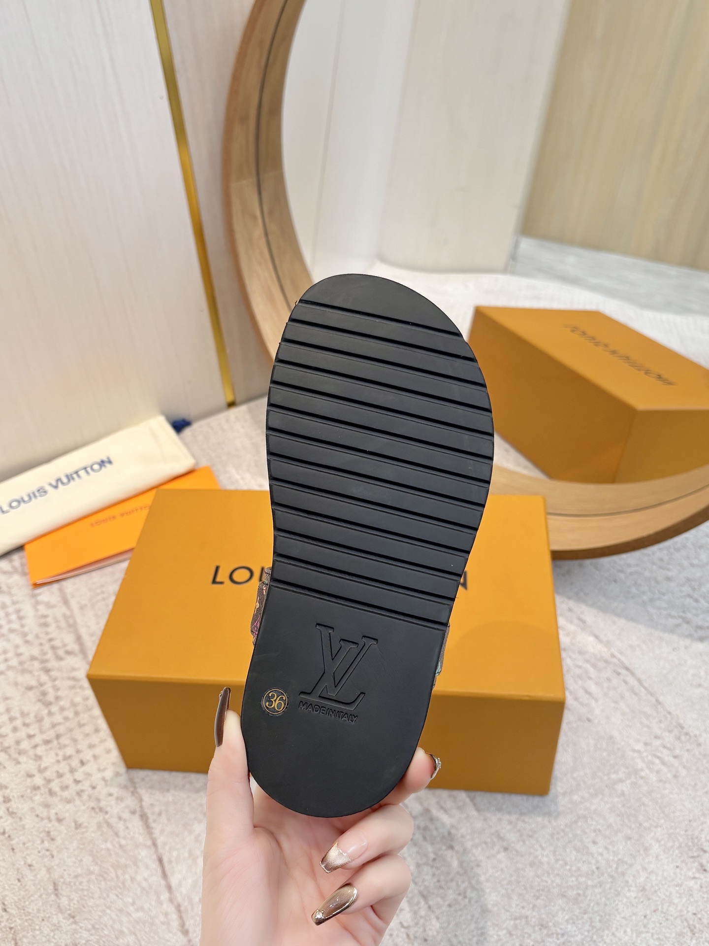 This shoes is AAAAA 1:1 quality (superb). Materials used are identical to the original ones. Louis Vuitton trademark marks are indistinguishable to the authentic. Photos take by actual shoes, what you receive will be 100% same with our photos.