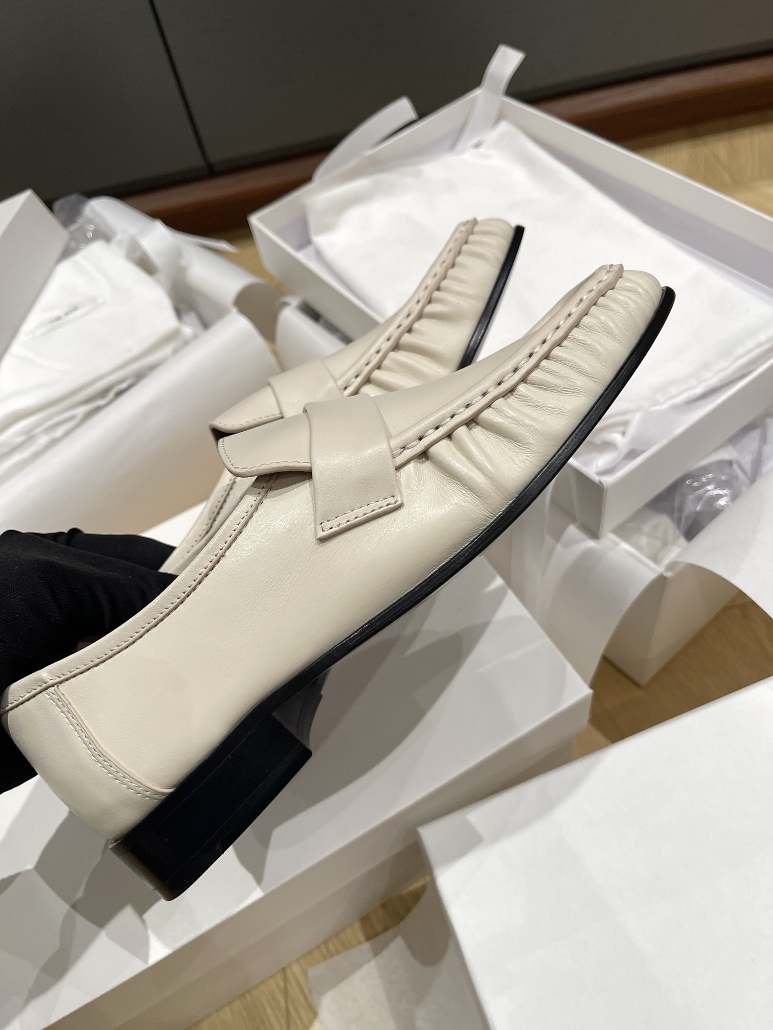 This shoes is AAAAA 1:1 quality (superb). Materials used are identical to the original ones. The Row trademark marks are indistinguishable to the authentic. Photos take by actual shoes, what you receive will be 100% same with our photos.