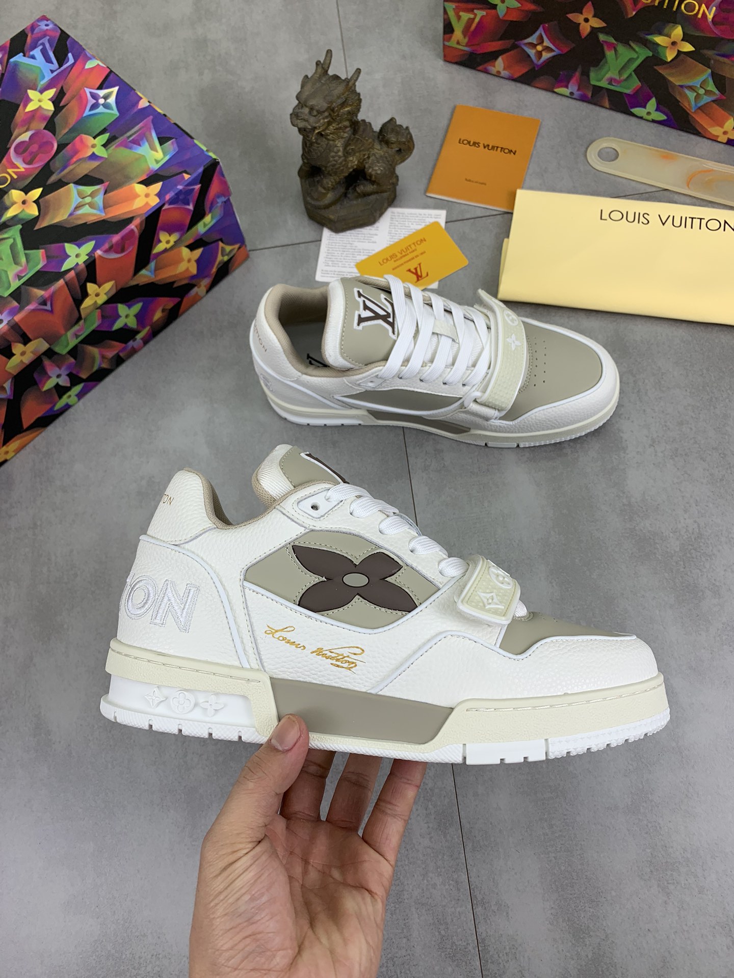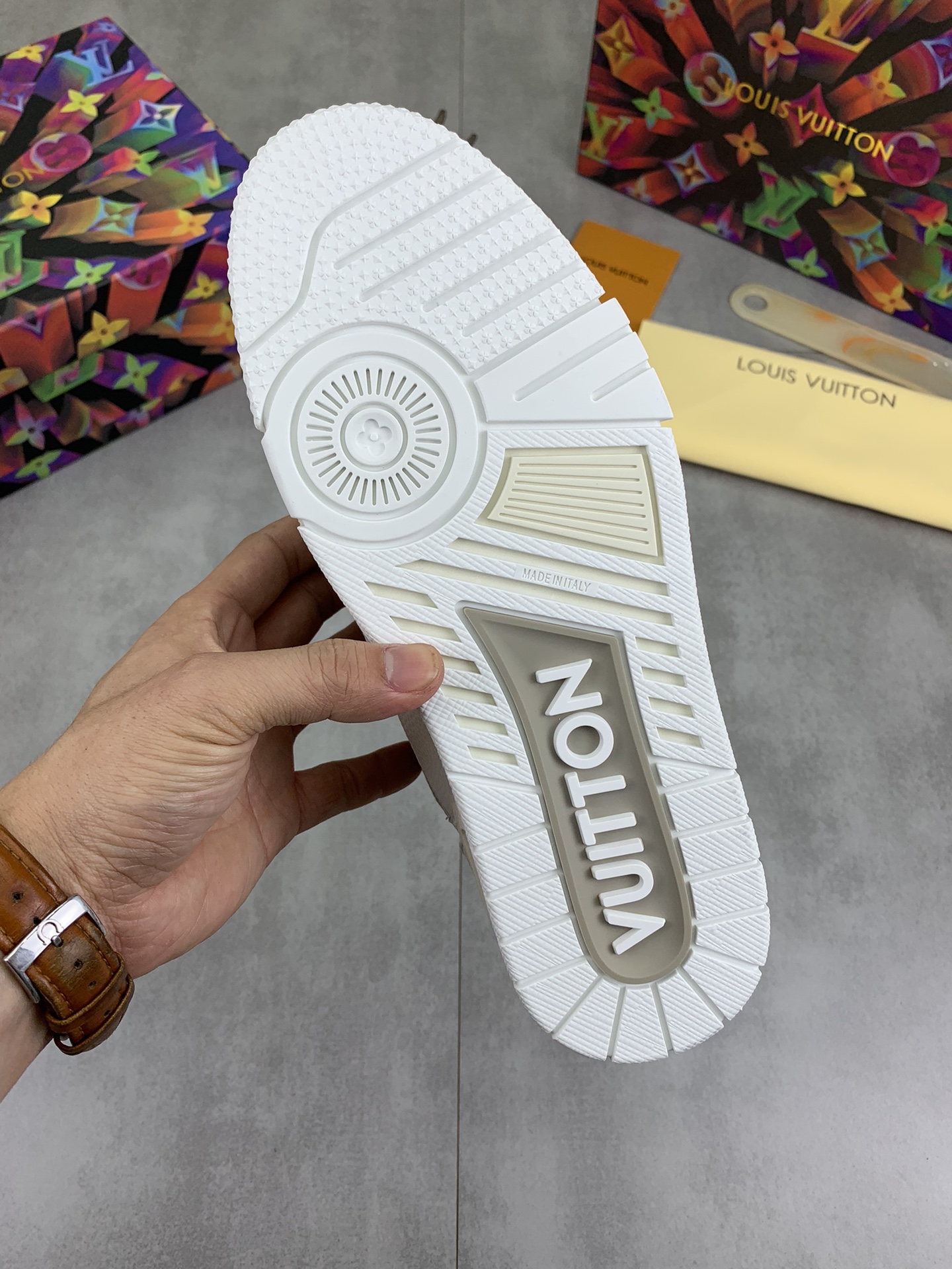 This shoes is AAAAA 1:1 quality (superb). Materials used are identical to the original ones. Louis Vuitton trademark marks are indistinguishable to the authentic. Photos take by actual shoes, what you receive will be 100% same with our photos.