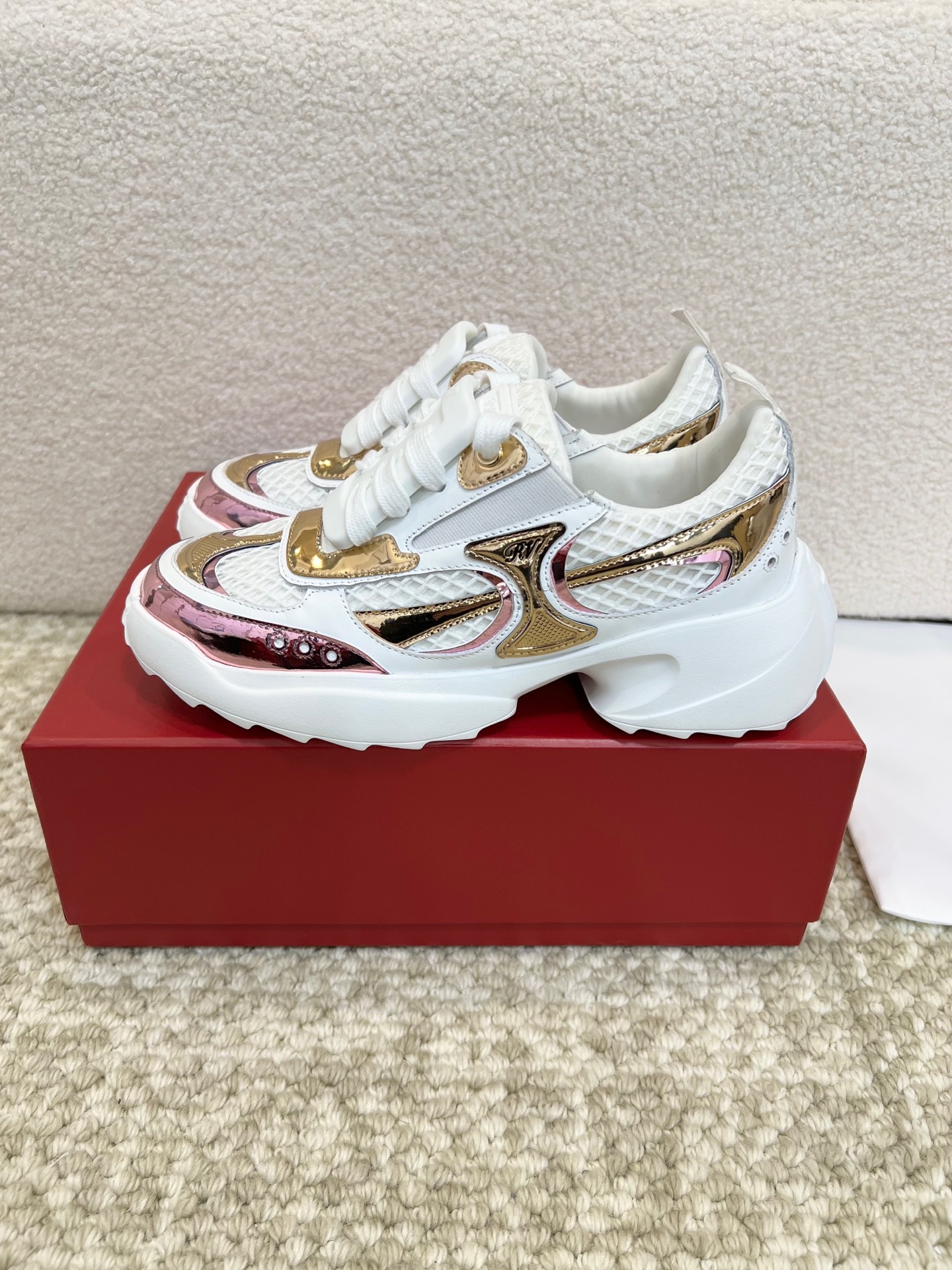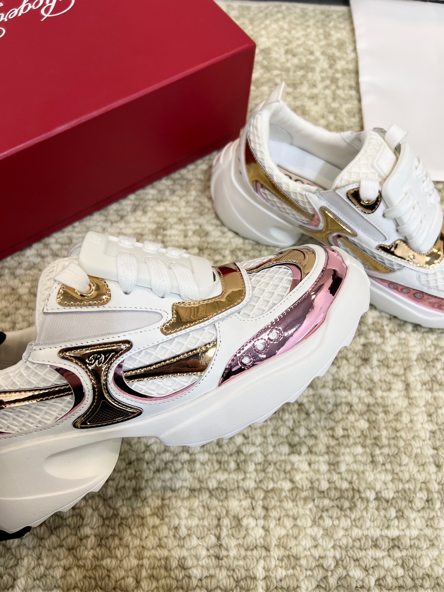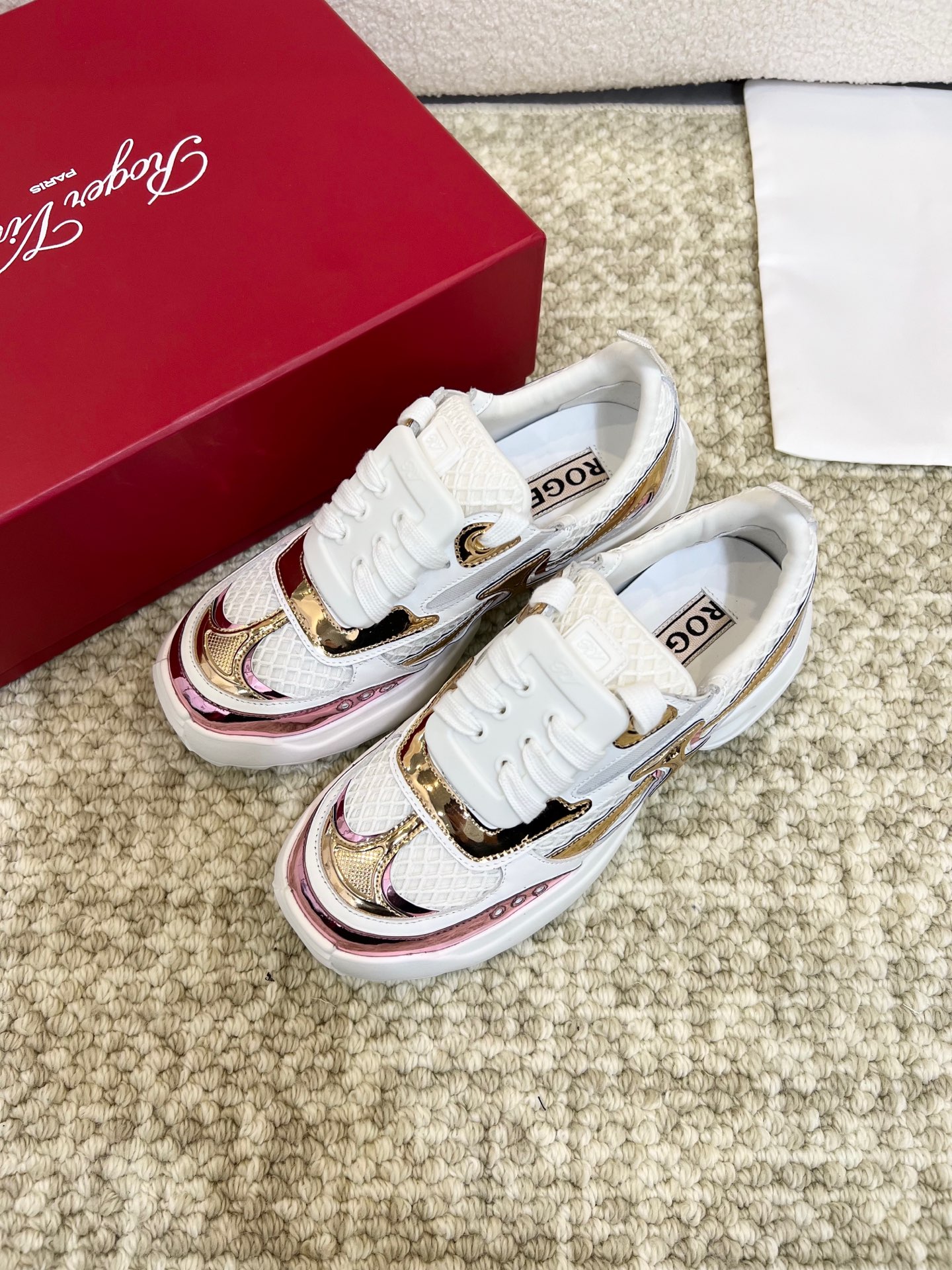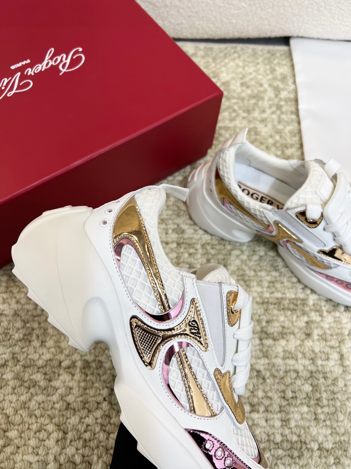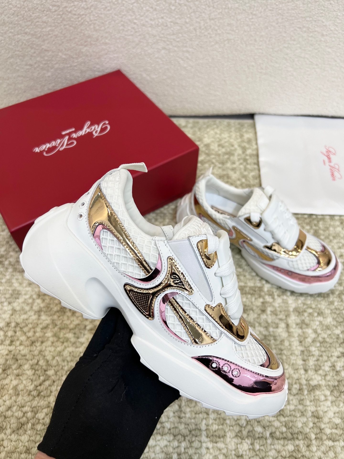 This shoes is AAAAA 1:1 quality (superb). Materials used are identical to the original ones. Roger Vivier trademark marks are indistinguishable to the authentic. Photos take by actual shoes, what you receive will be 100% same with our photos.