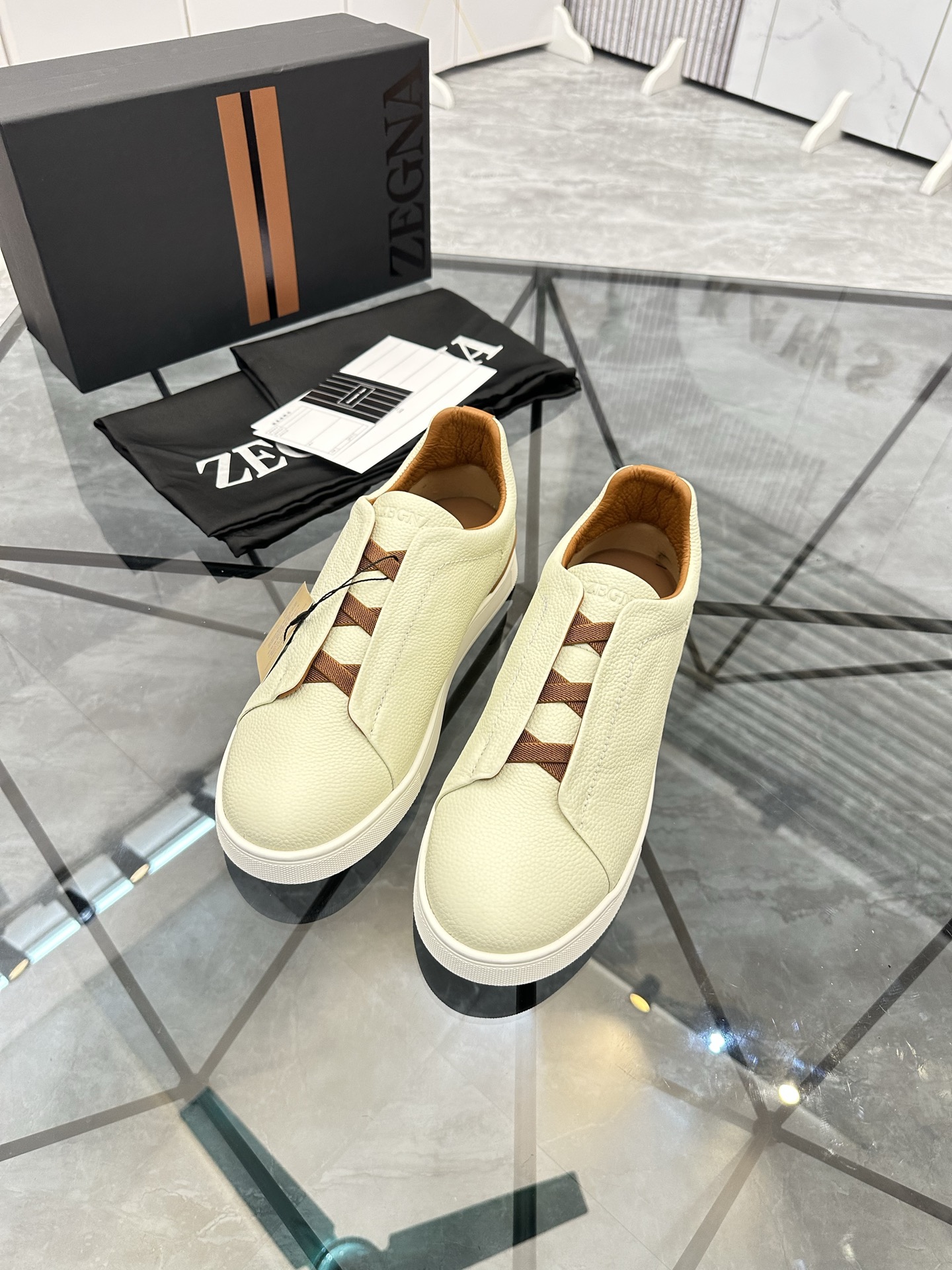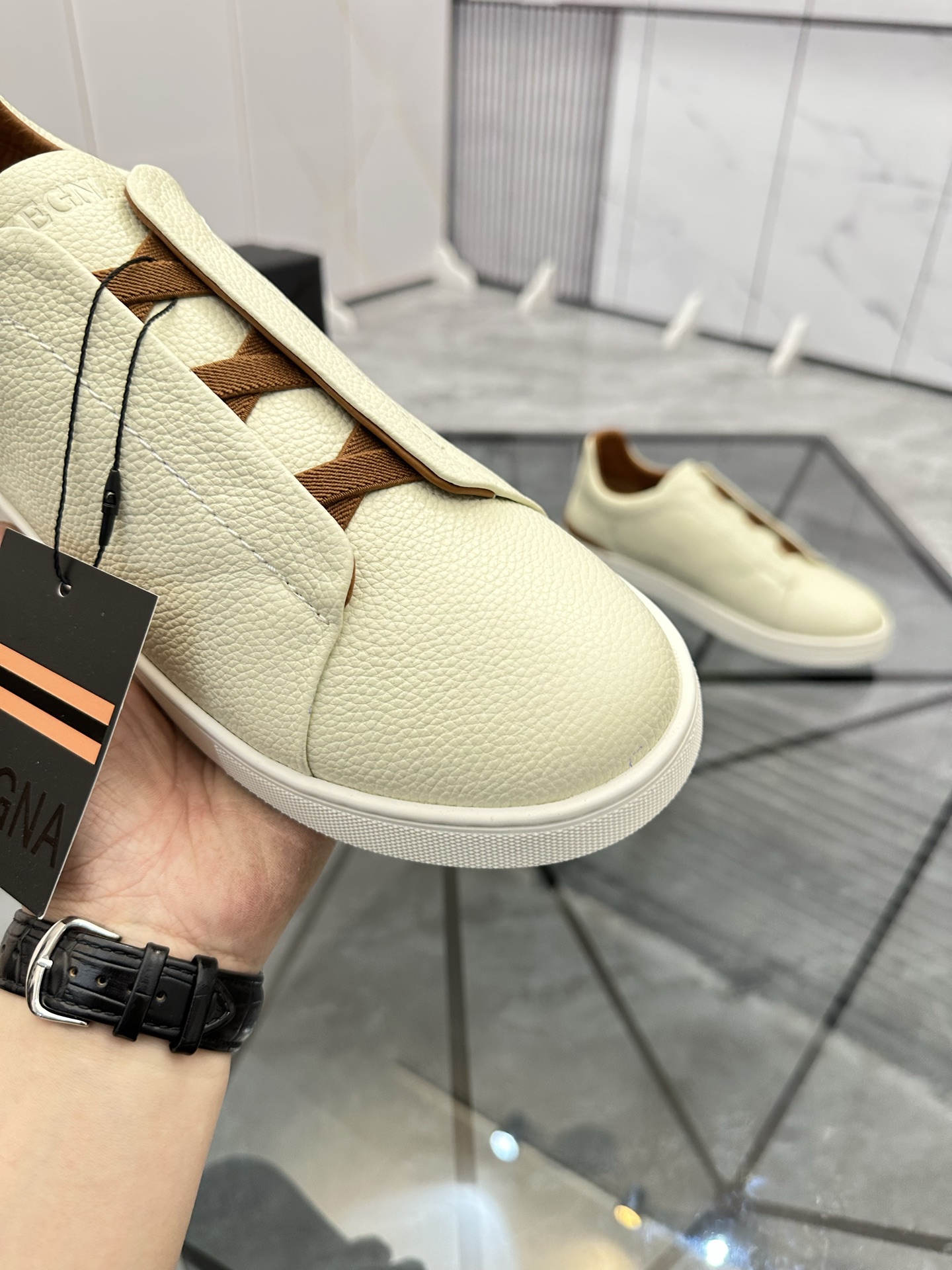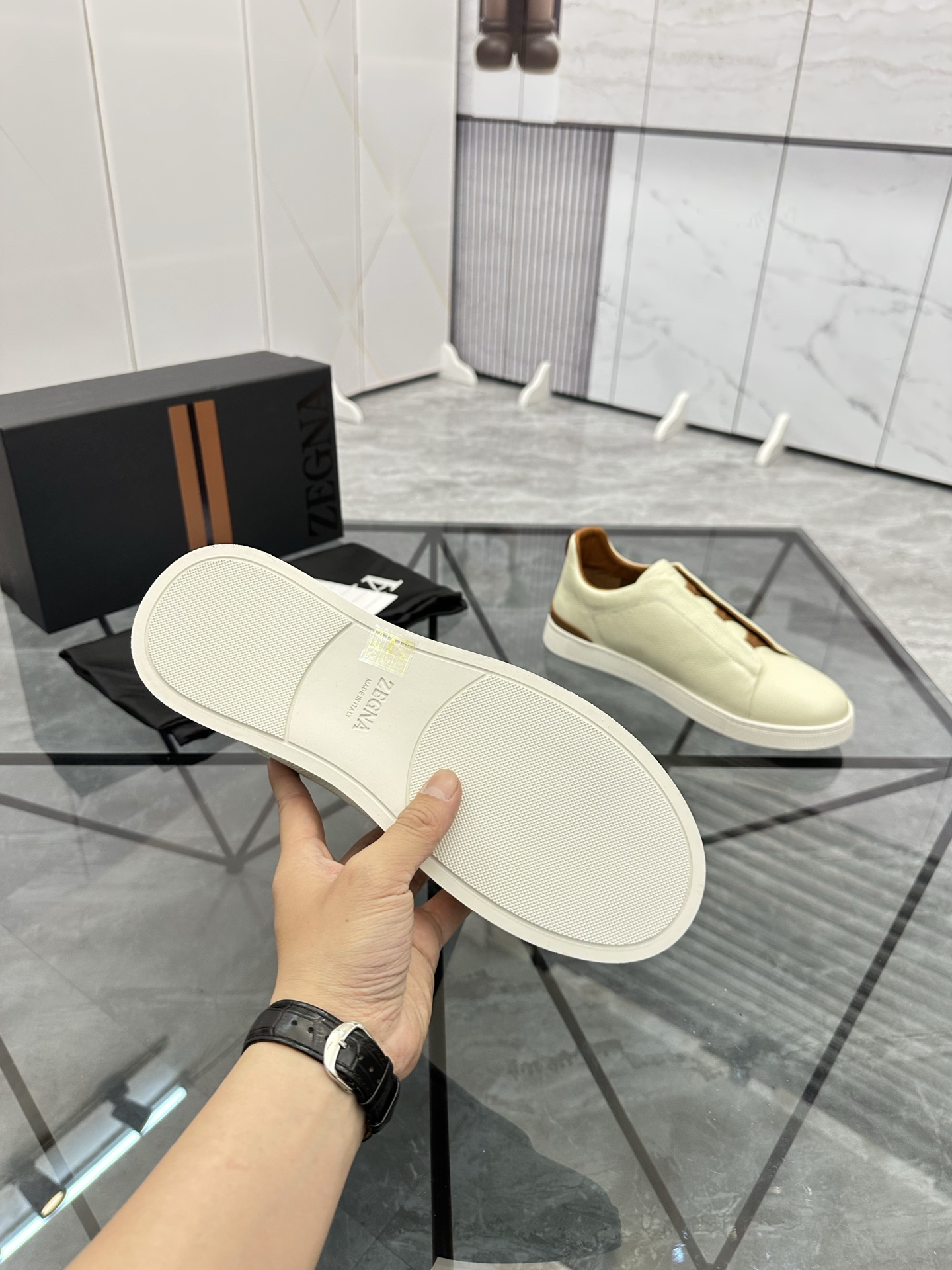 This shoes is AAAAA 1:1 quality (superb). Materials used are identical to the original ones. Zegna trademark marks are indistinguishable to the authentic. Photos take by actual shoes, what you receive will be 100% same with our photos.