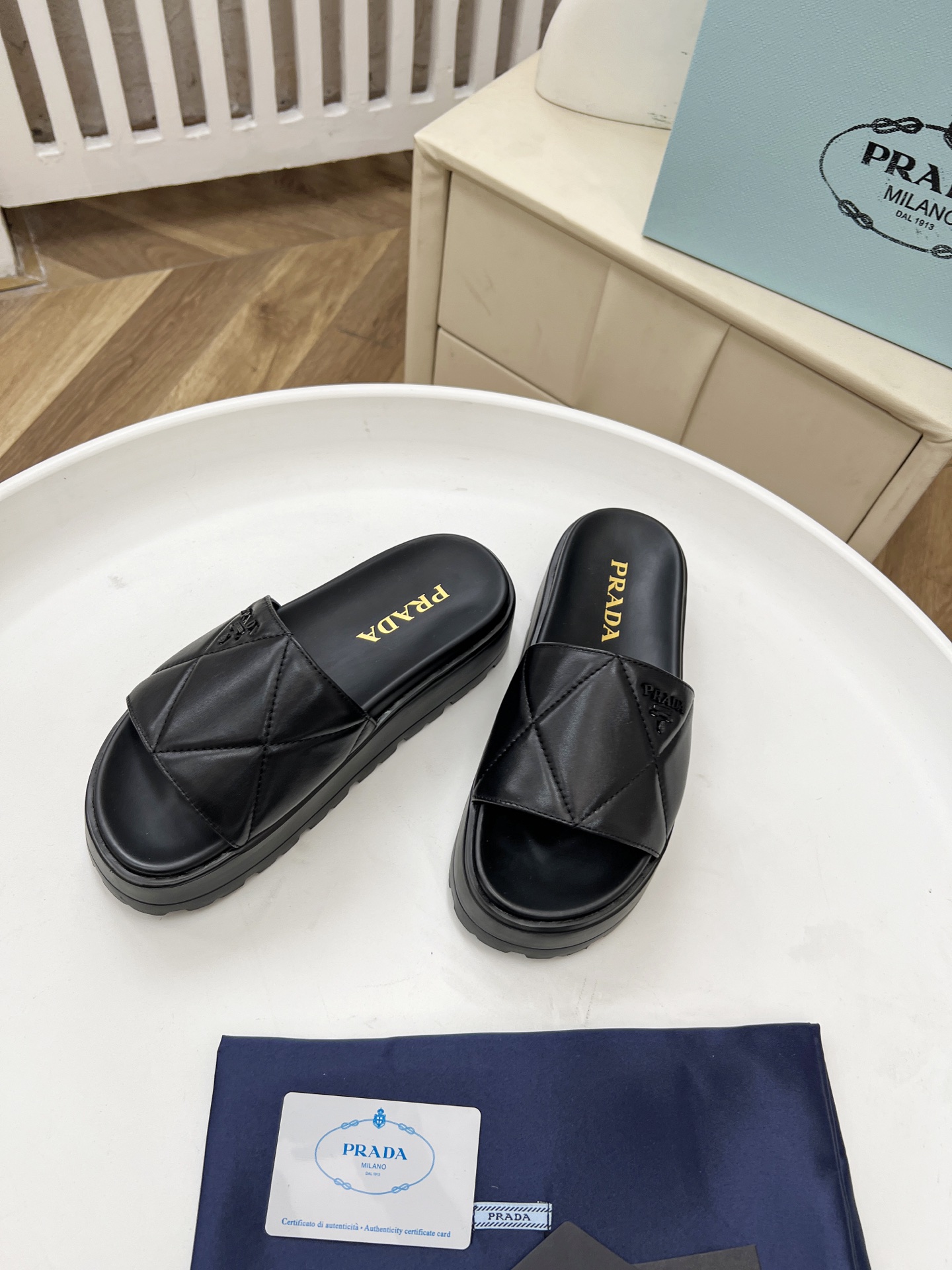 This shoes is AAAAA 1:1 quality (superb). Materials used are identical to the original ones. Prada trademark marks are indistinguishable to the authentic. Photos take by actual shoes, what you receive will be 100% same with our photos.