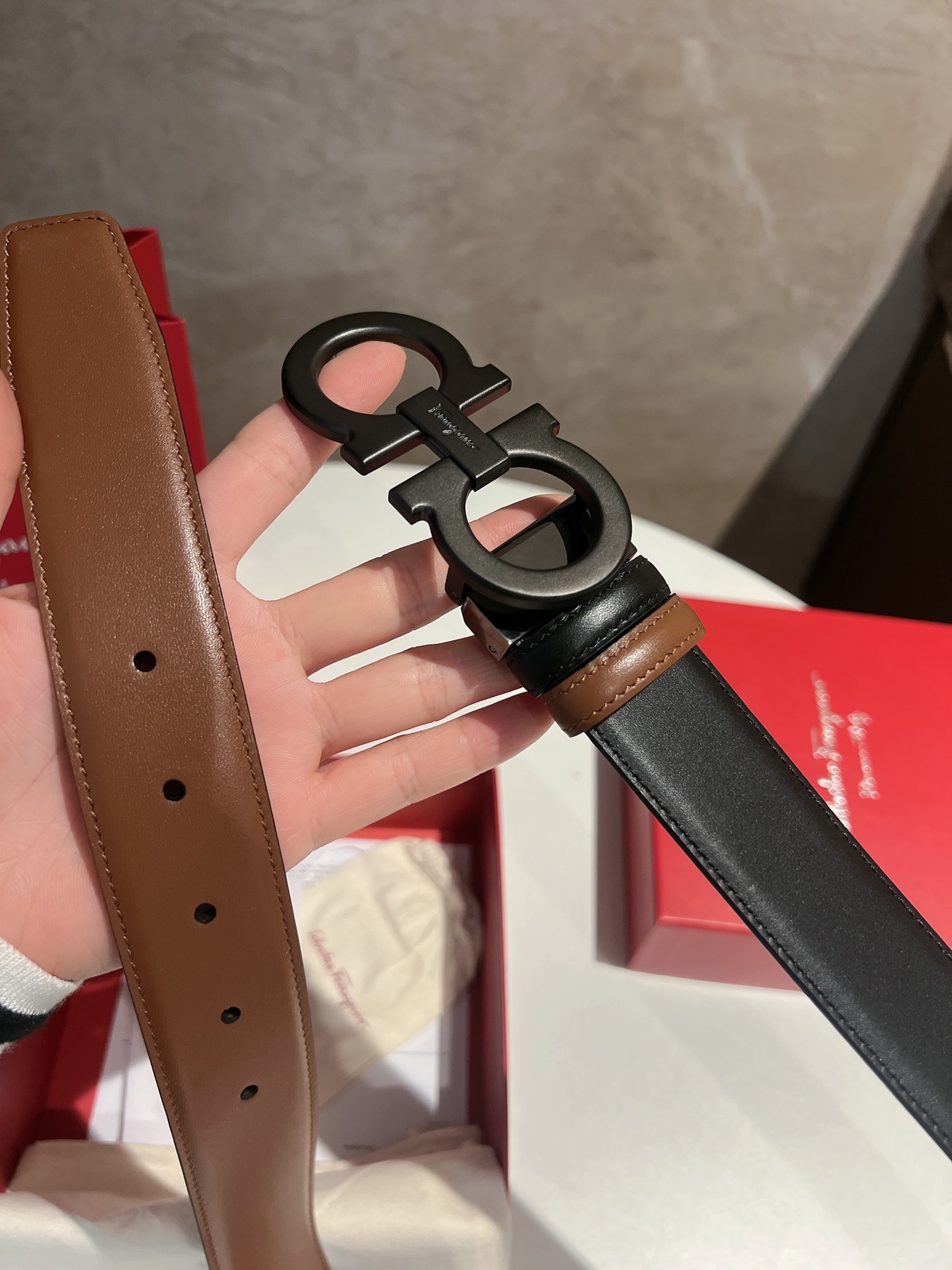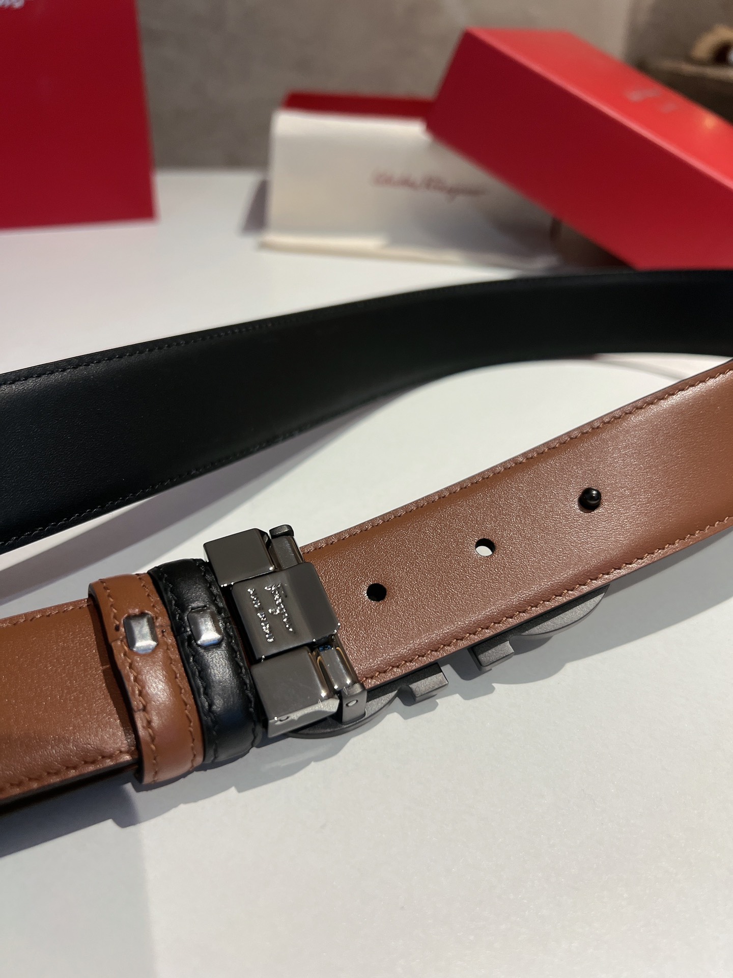 This belt is AAAAA 1:1 quality (superb). Materials used are identical to the original ones. Salvatore Ferragamo trademark marks are indistinguishable to the authentic. Photos take by actual belt, what you receive will be 100% same with our photos.
