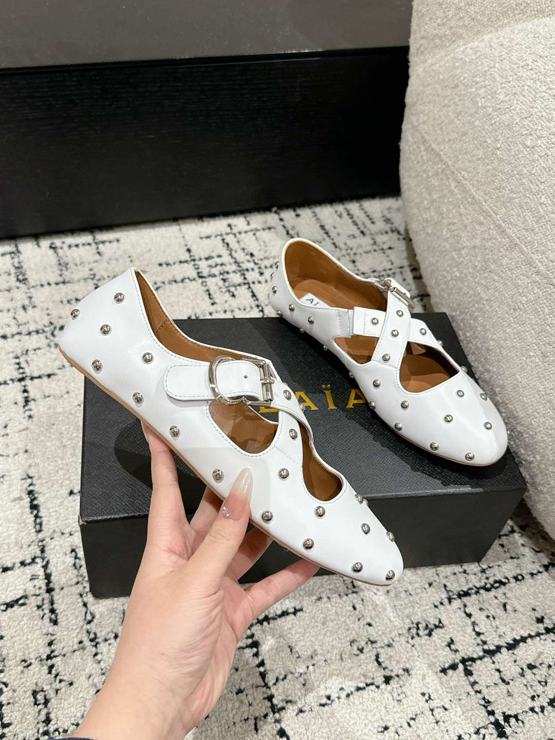 This shoes is AAAAA 1:1 quality (superb). Materials used are identical to the original ones. Alaia trademark marks are indistinguishable to the authentic. Photos take by actual shoes, what you receive will be 100% same with our photos.