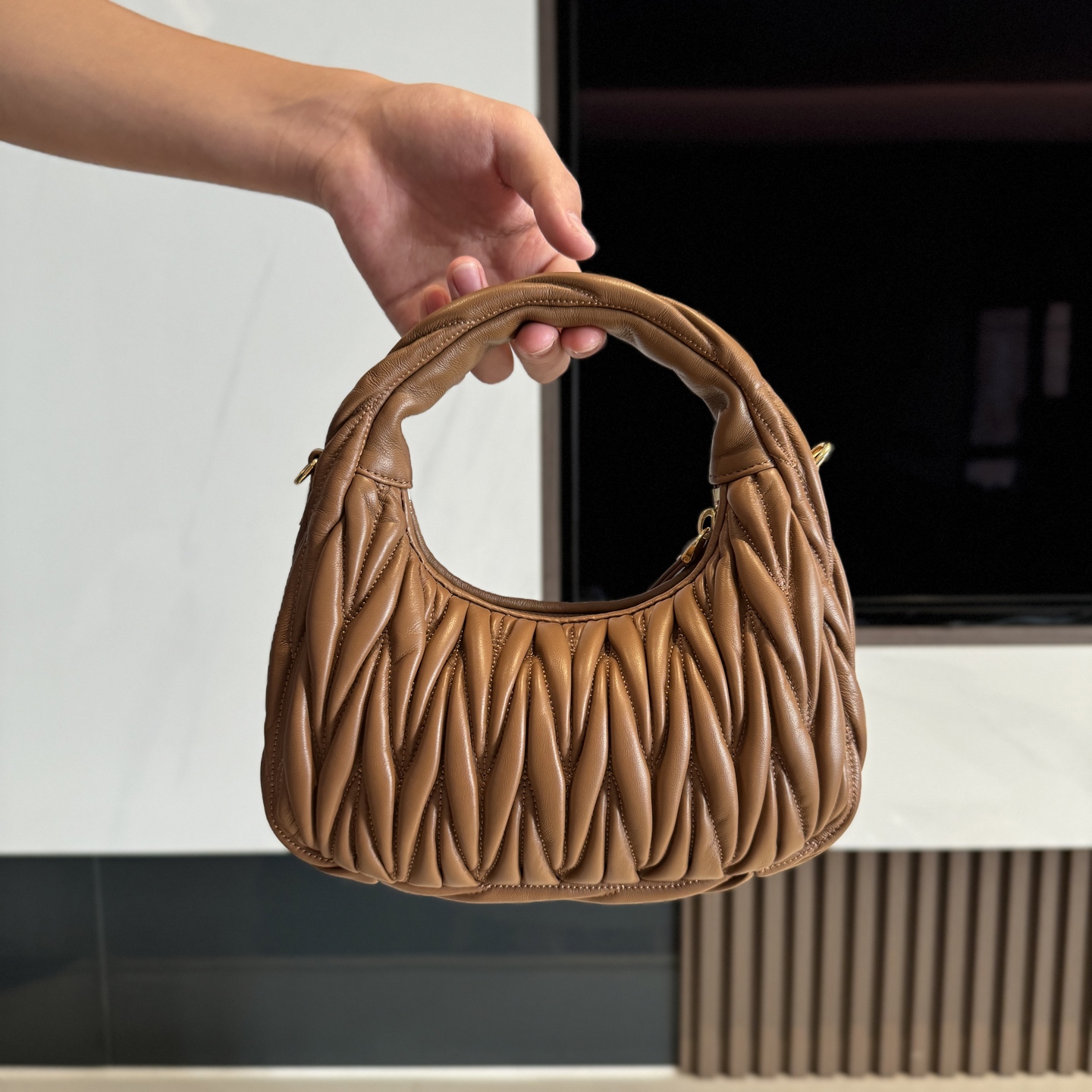 This bags is AAAAA 1:1 quality (superb). Materials used are identical to the original ones. Miu Miu trademark marks are indistinguishable to the authentic. Photos take by actual bags, what you receive will be 100% same with our photos.