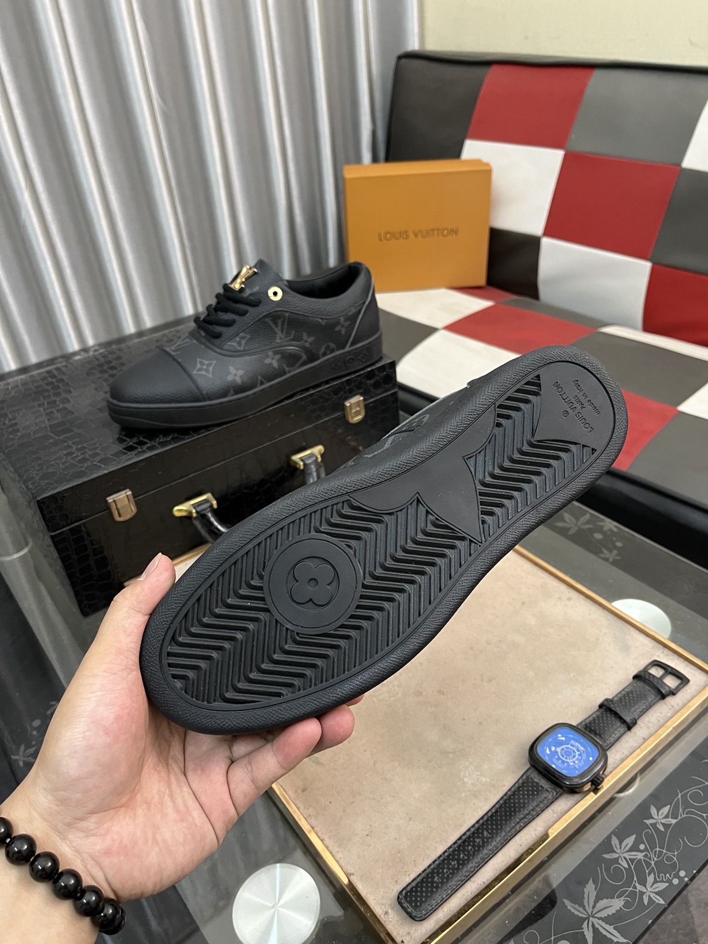 This shoes is AAAAA 1:1 quality (superb). Materials used are identical to the original ones. Louis Vuitton trademark marks are indistinguishable to the authentic. Photos take by actual shoes, what you receive will be 100% same with our photos.