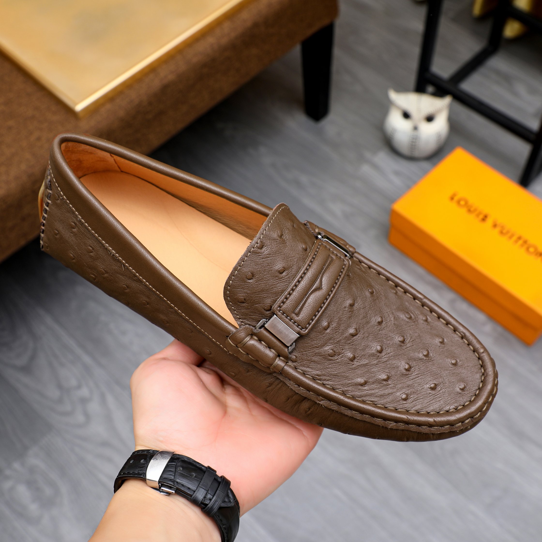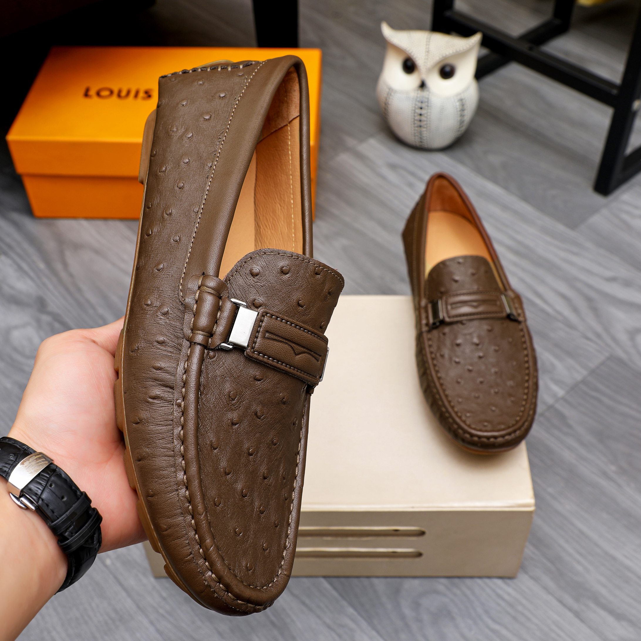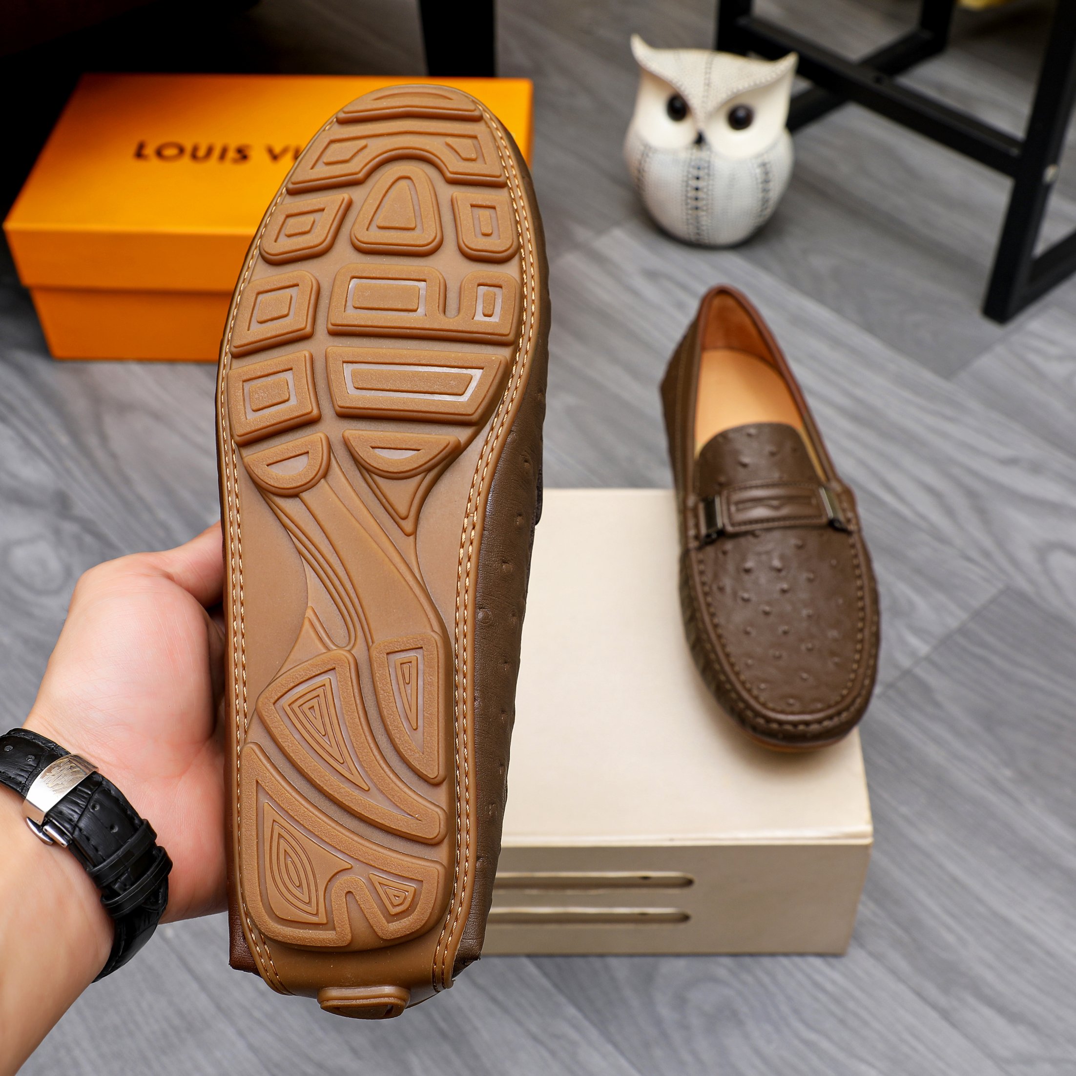 This shoes is AAAAA 1:1 quality (superb). Materials used are identical to the original ones. Louis Vuitton trademark marks are indistinguishable to the authentic. Photos take by actual shoes, what you receive will be 100% same with our photos.