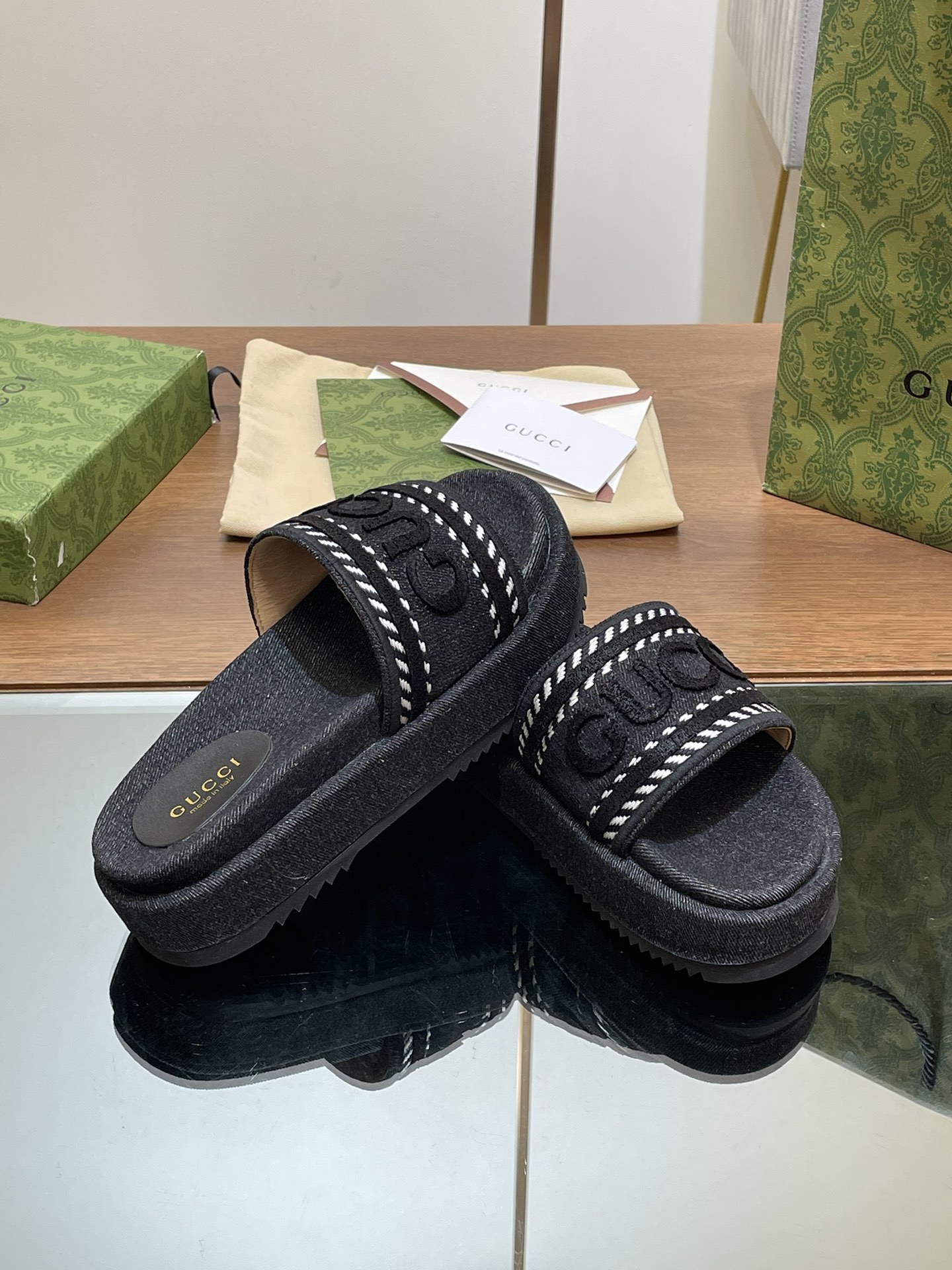 This shoes is AAAAA 1:1 quality (superb). Materials used are identical to the original ones. Gucci trademark marks are indistinguishable to the authentic. Photos take by actual shoes, what you receive will be 100% same with our photos.
