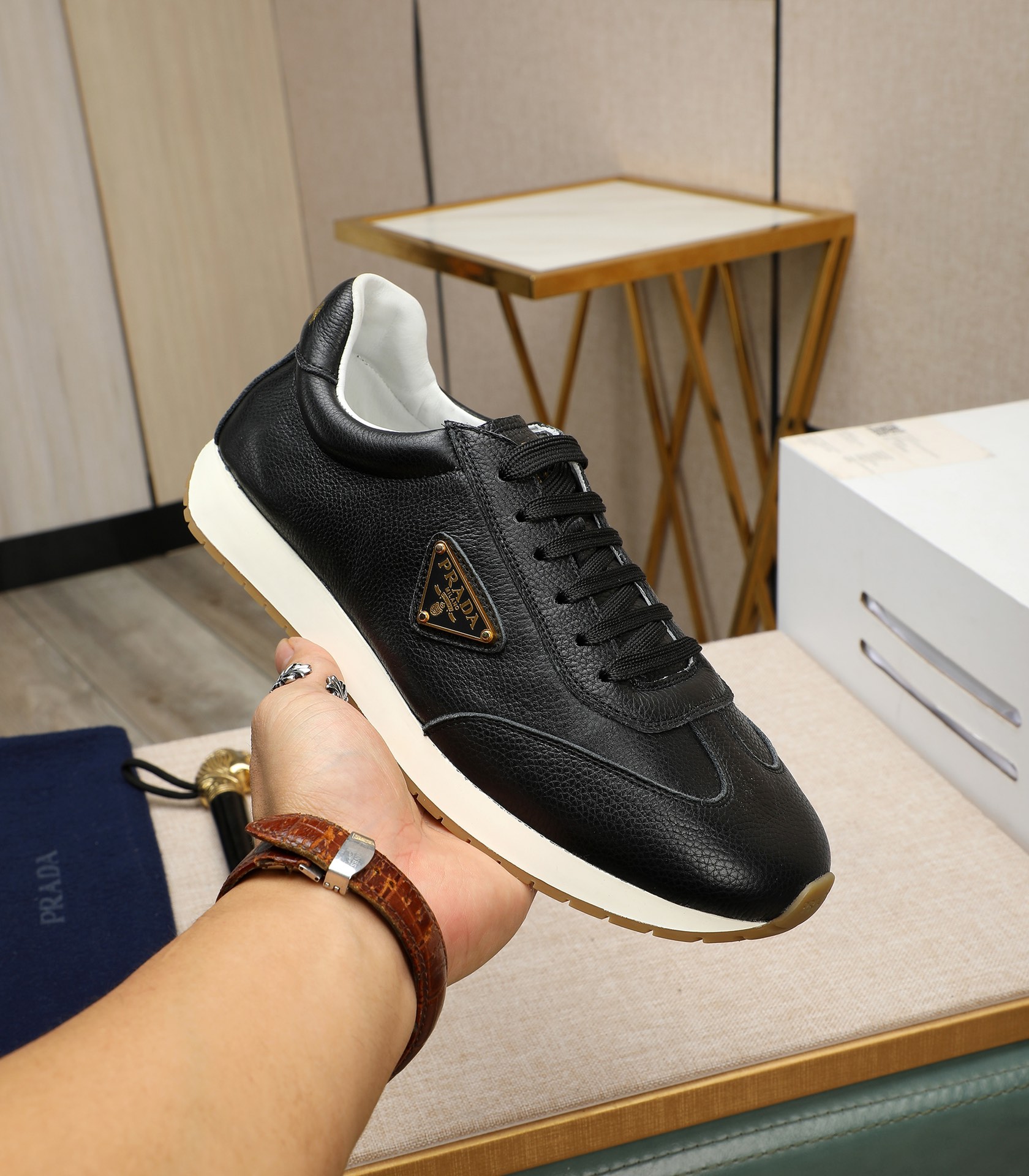 This shoes is AAAAA 1:1 quality (superb). Materials used are identical to the original ones. Prada trademark marks are indistinguishable to the authentic. Photos take by actual shoes, what you receive will be 100% same with our photos.