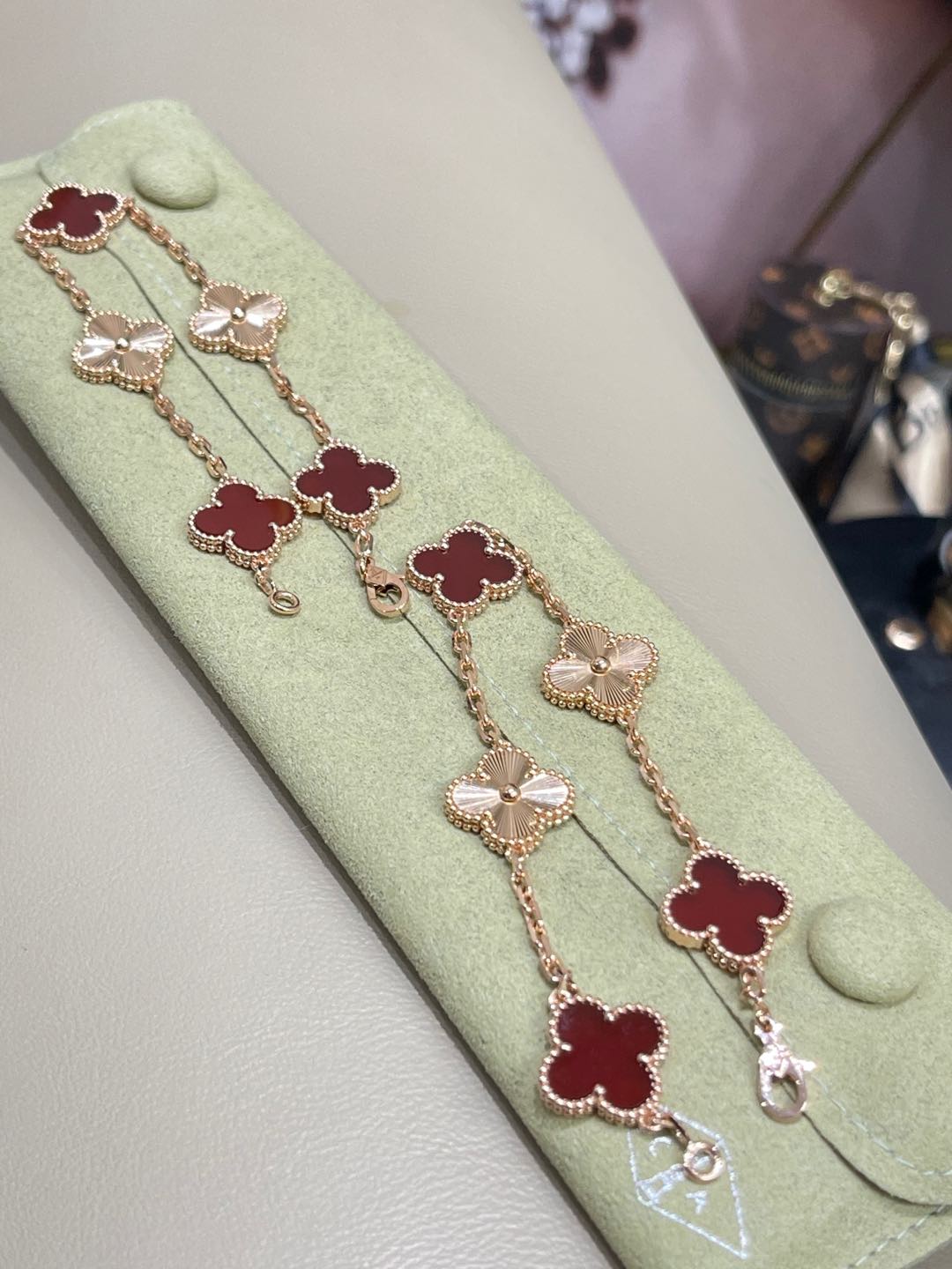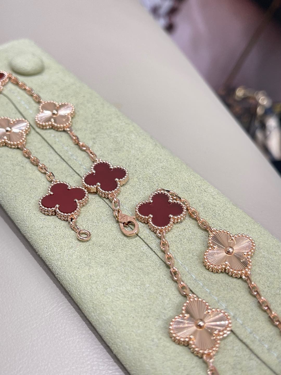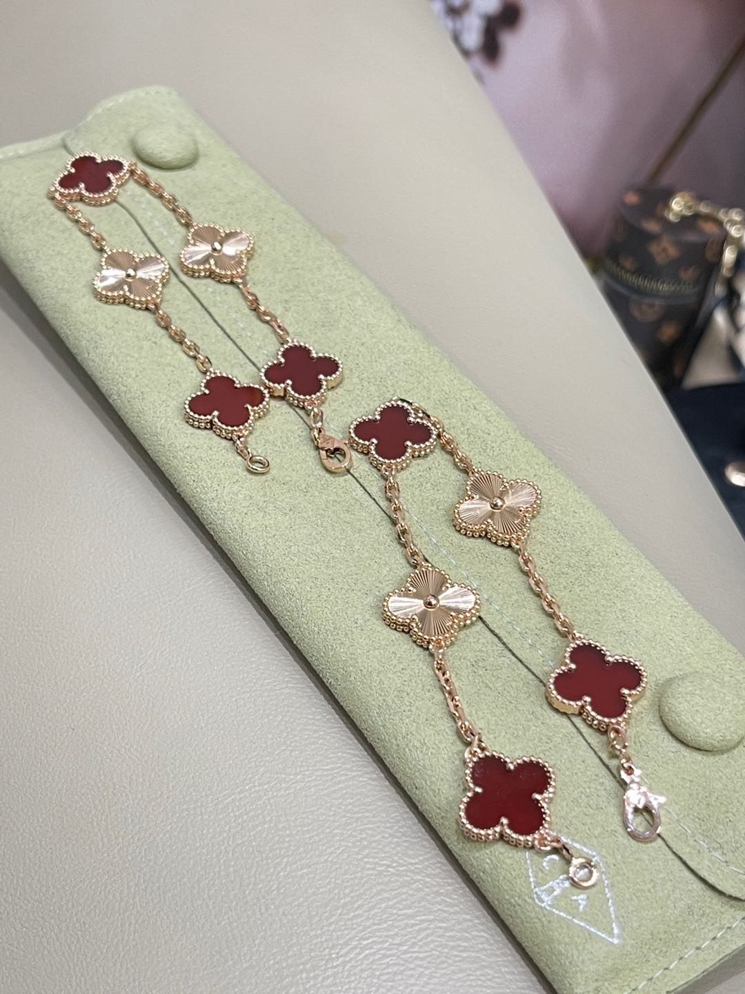 This jewelry is AAAAA 1:1 quality (superb). Materials used are identical to the original ones. Van Cleef & Arpels trademark marks are indistinguishable to the authentic. Photos take by actual jewelry, what you receive will be 100% same with our photos.
