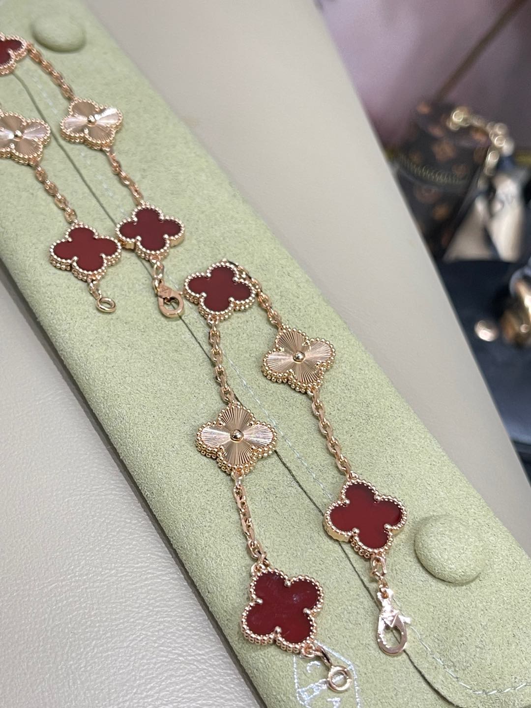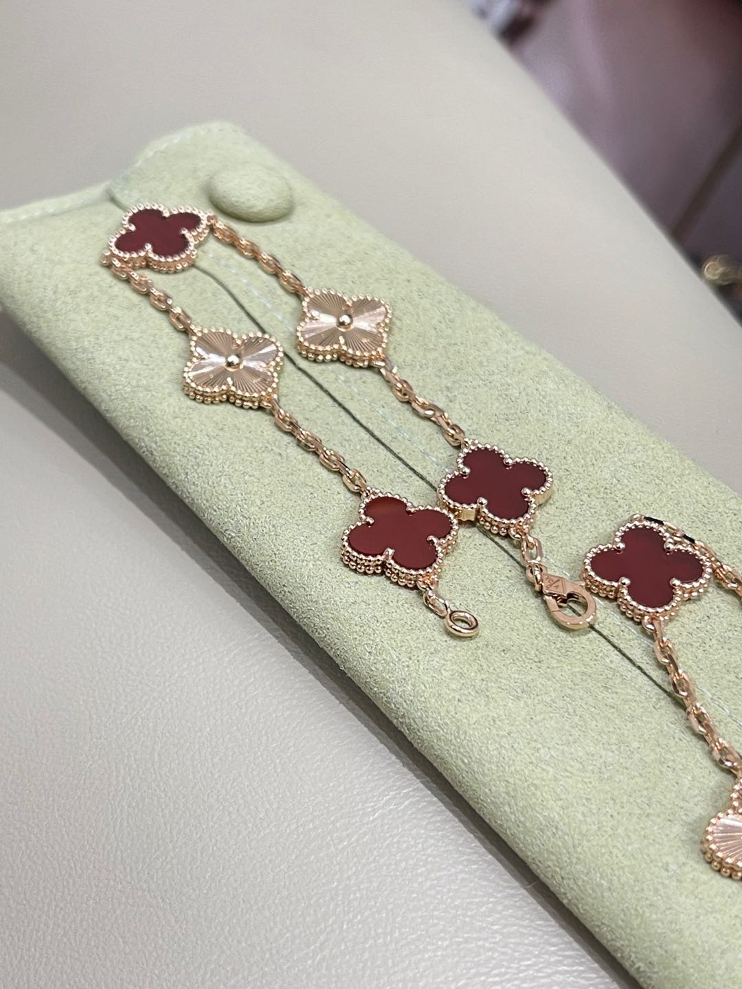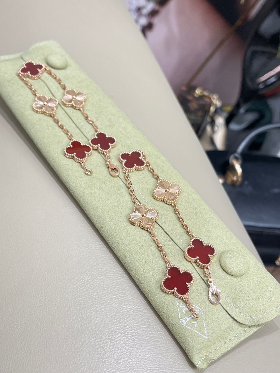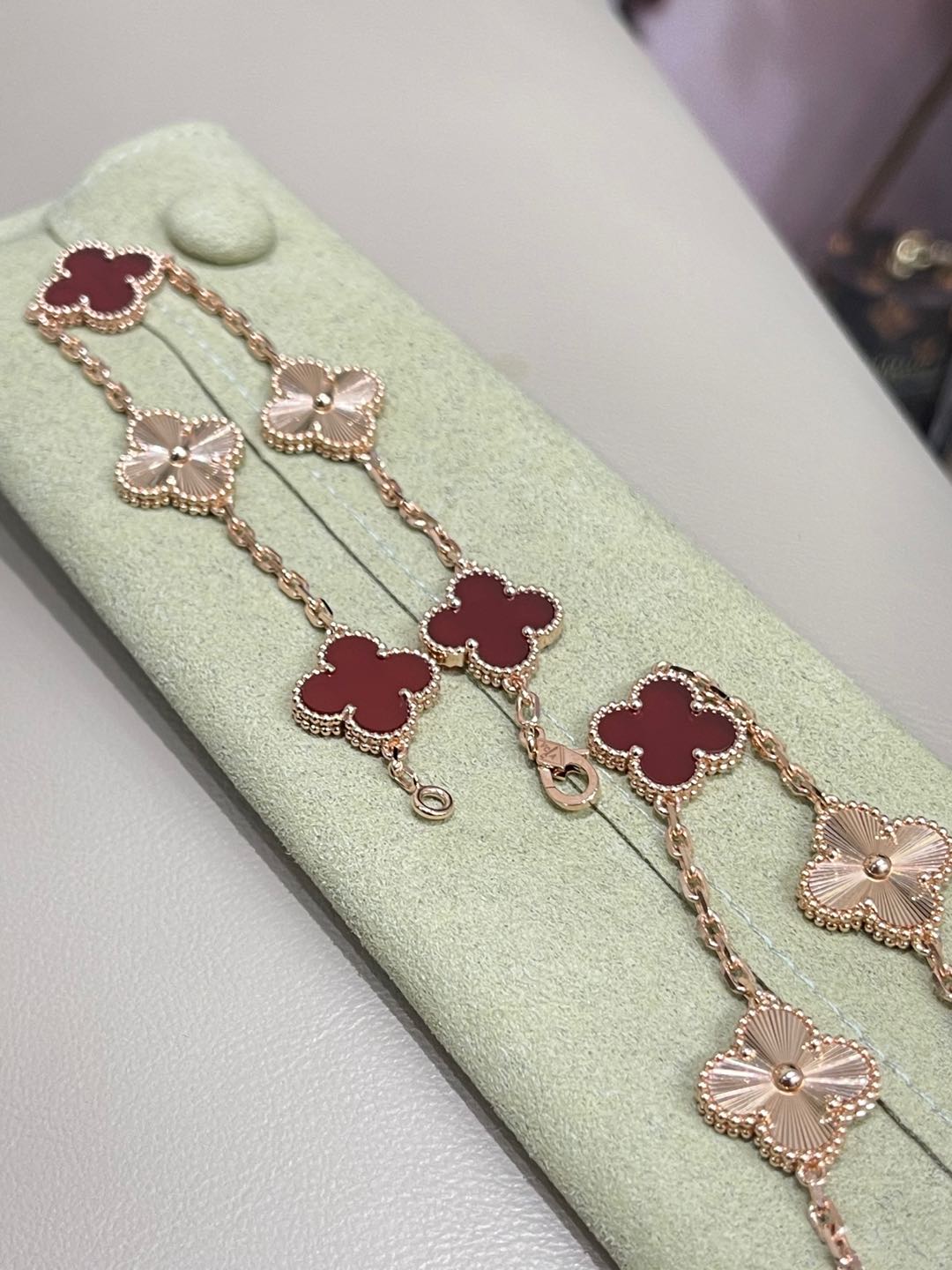 This jewelry is AAAAA 1:1 quality (superb). Materials used are identical to the original ones. Van Cleef & Arpels trademark marks are indistinguishable to the authentic. Photos take by actual jewelry, what you receive will be 100% same with our photos.