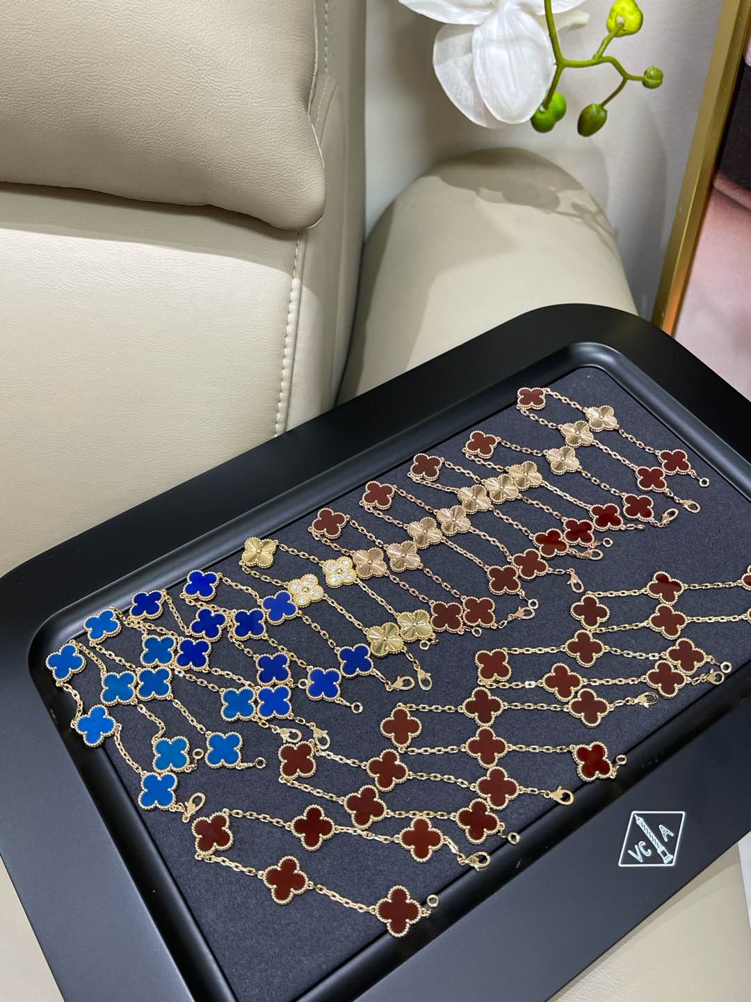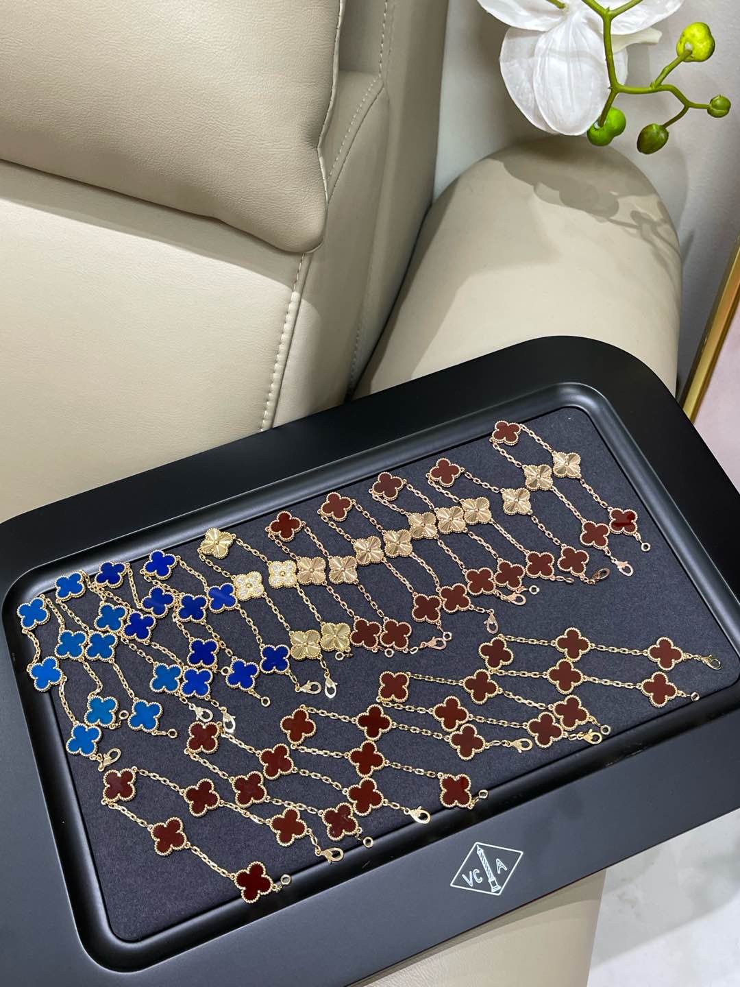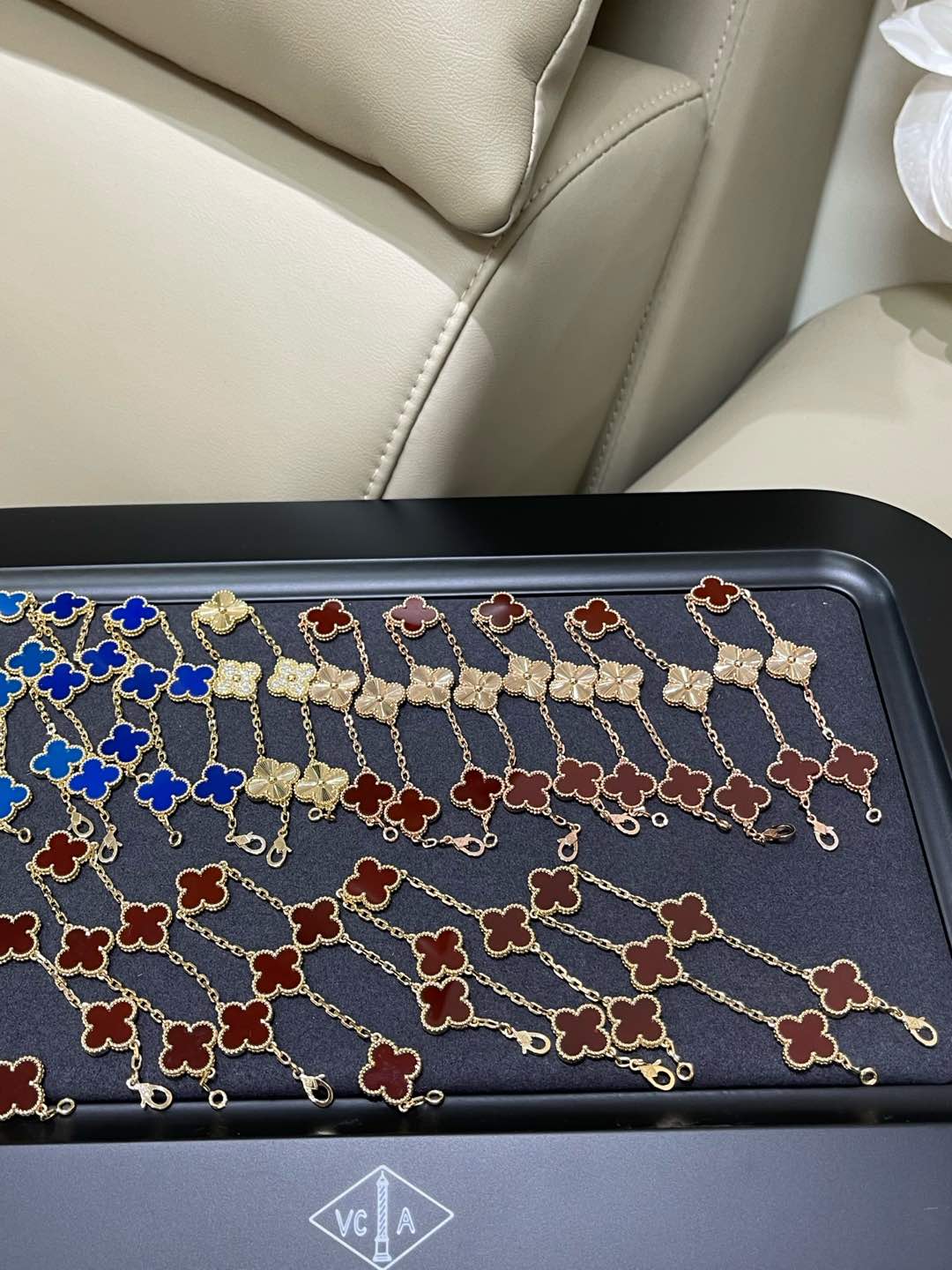 This jewelry is AAAAA 1:1 quality (superb). Materials used are identical to the original ones. Van Cleef & Arpels trademark marks are indistinguishable to the authentic. Photos take by actual jewelry, what you receive will be 100% same with our photos.