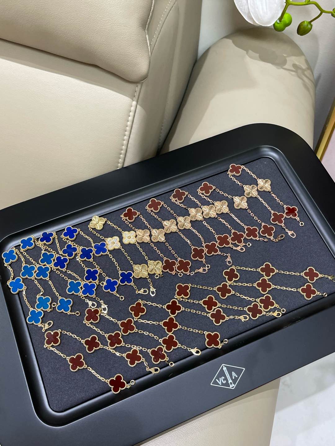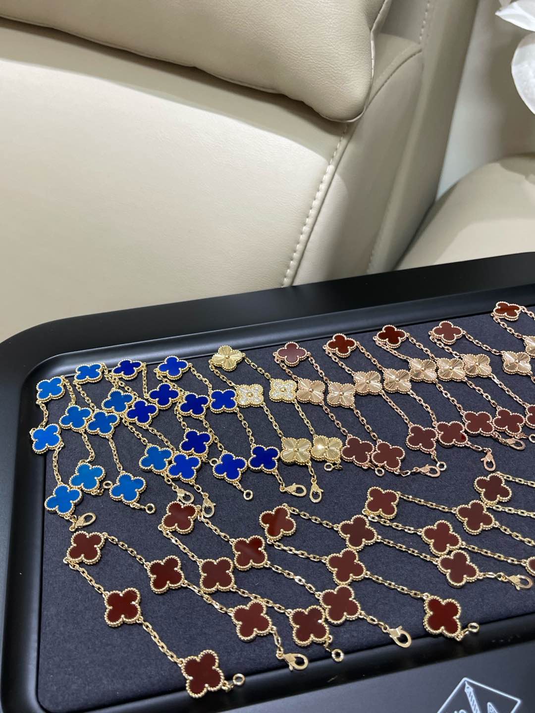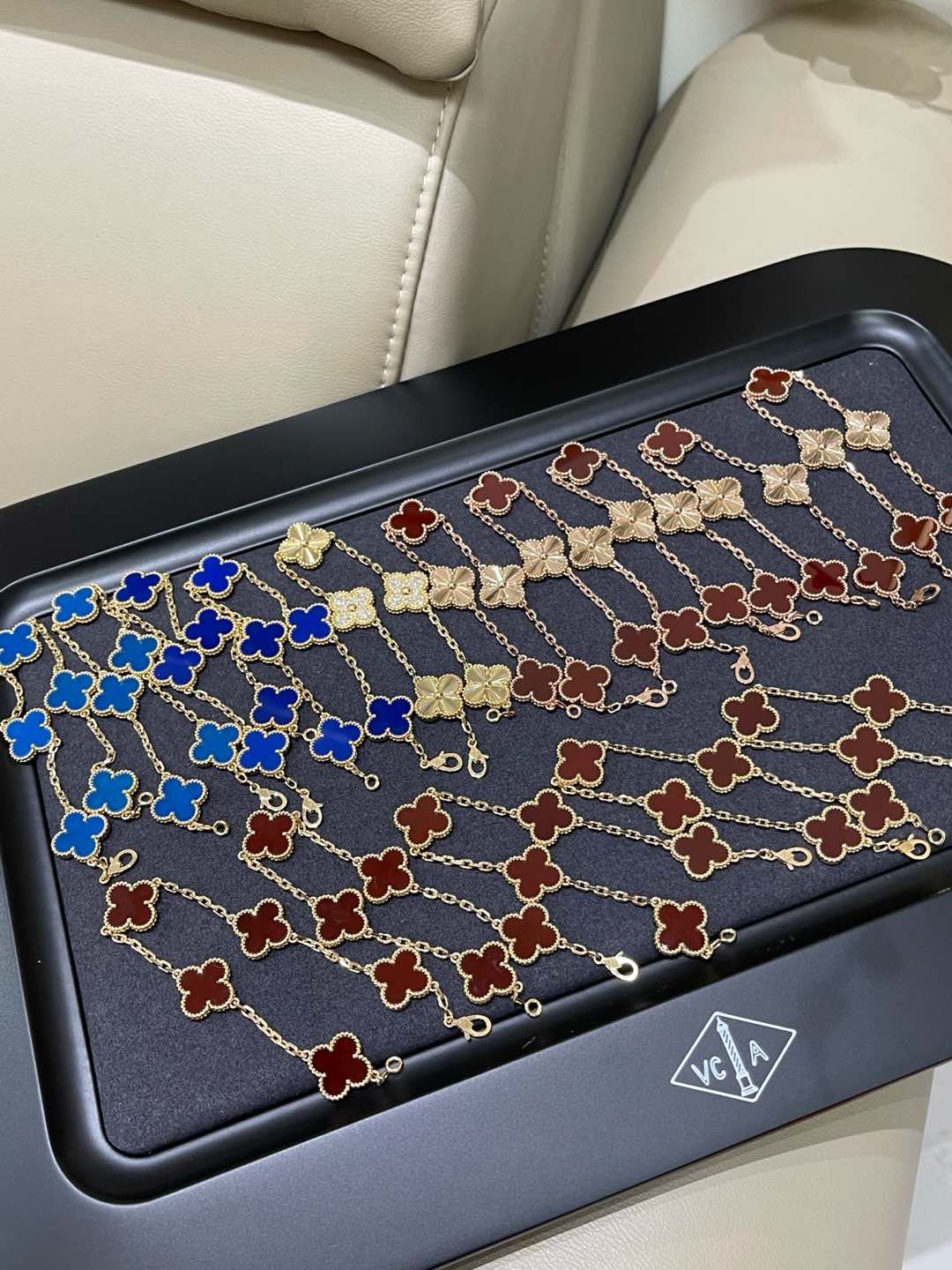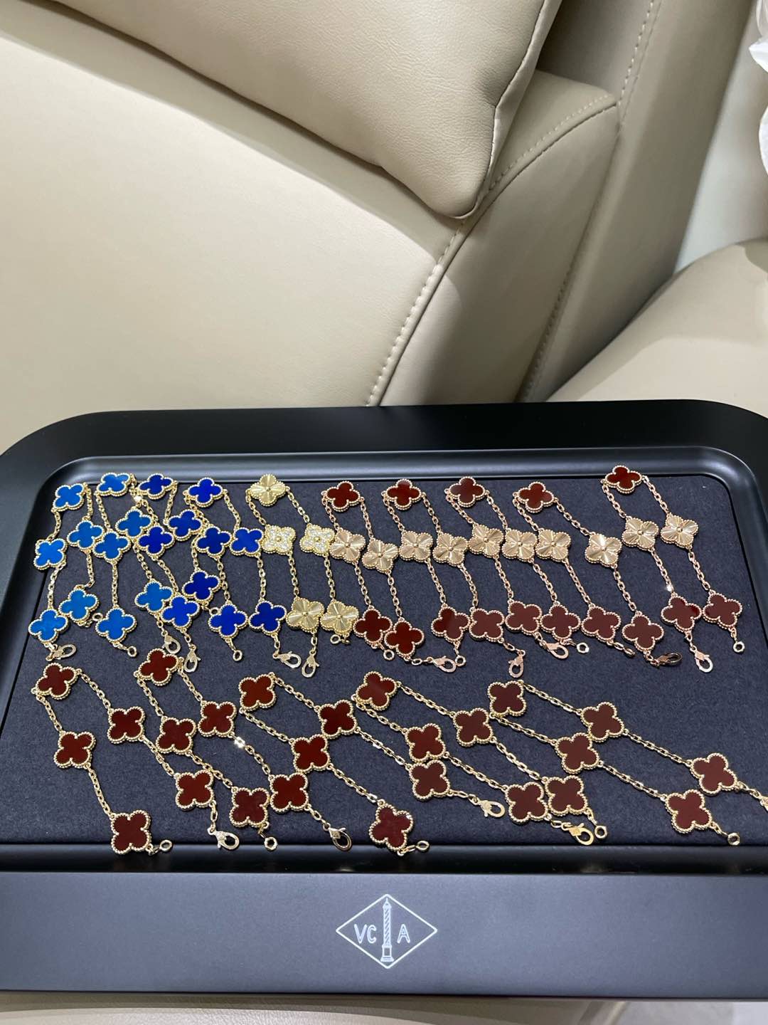 This jewelry is AAAAA 1:1 quality (superb). Materials used are identical to the original ones. Van Cleef & Arpels trademark marks are indistinguishable to the authentic. Photos take by actual jewelry, what you receive will be 100% same with our photos.