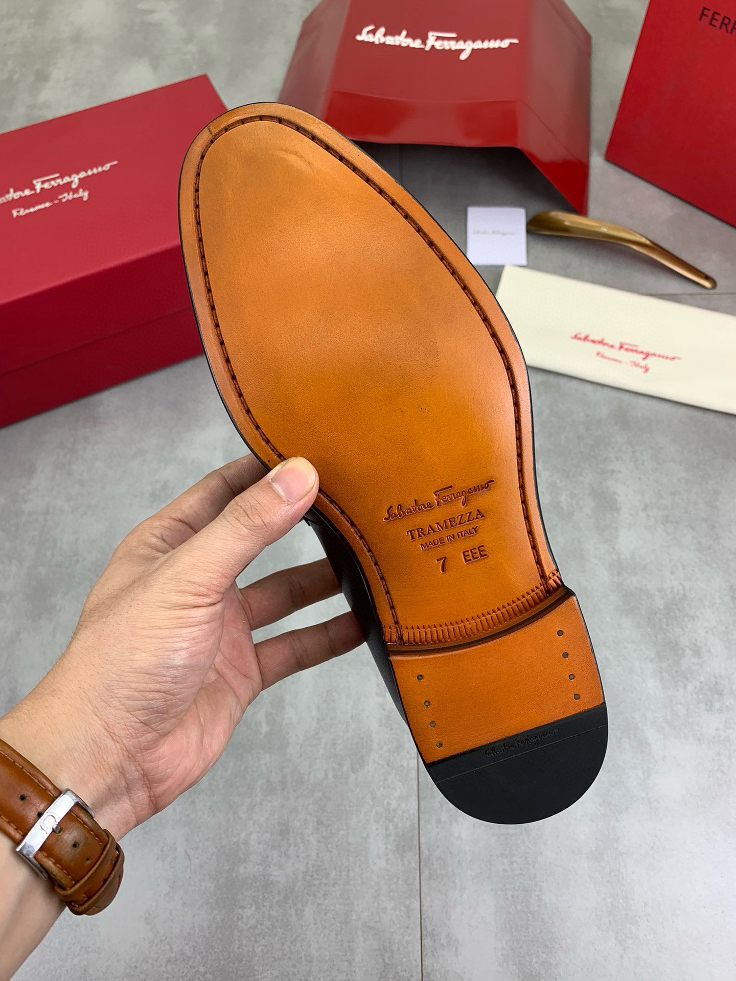 This shoes is AAAAA 1:1 quality (superb). Materials used are identical to the original ones. Salvatore Ferragamo trademark marks are indistinguishable to the authentic. Photos take by actual shoes, what you receive will be 100% same with our photos.