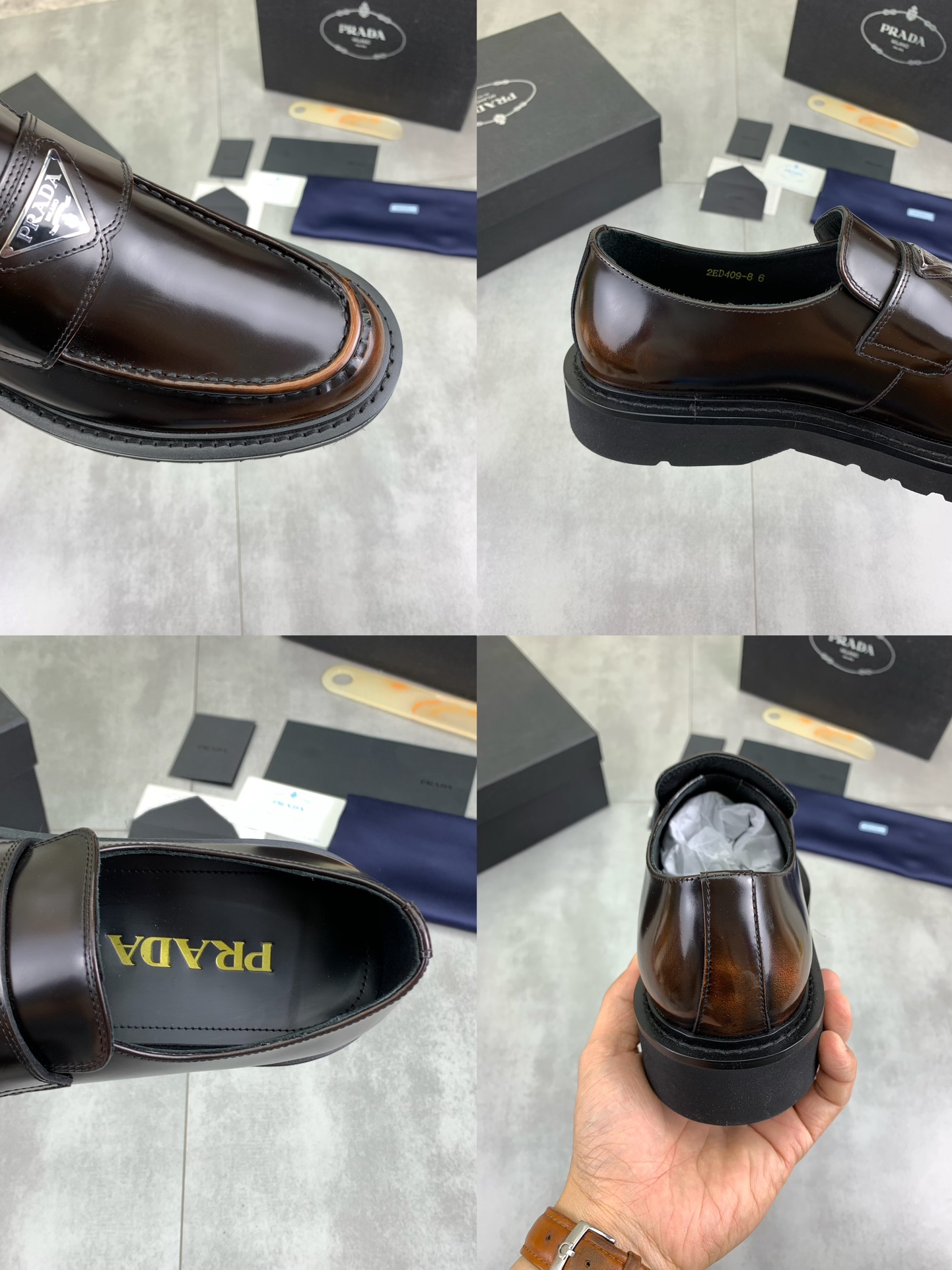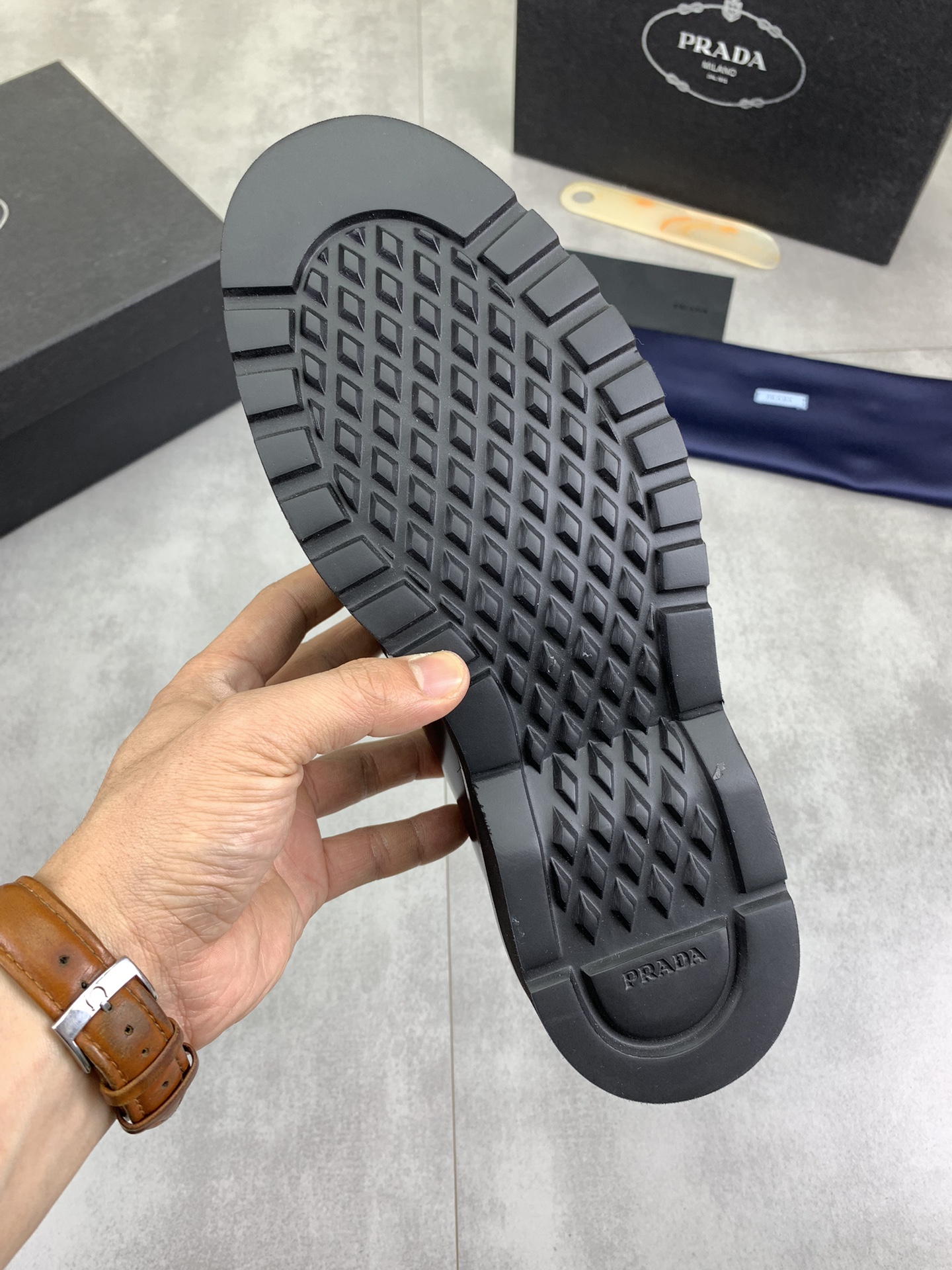 This shoes is AAAAA 1:1 quality (superb). Materials used are identical to the original ones. Prada trademark marks are indistinguishable to the authentic. Photos take by actual shoes, what you receive will be 100% same with our photos.