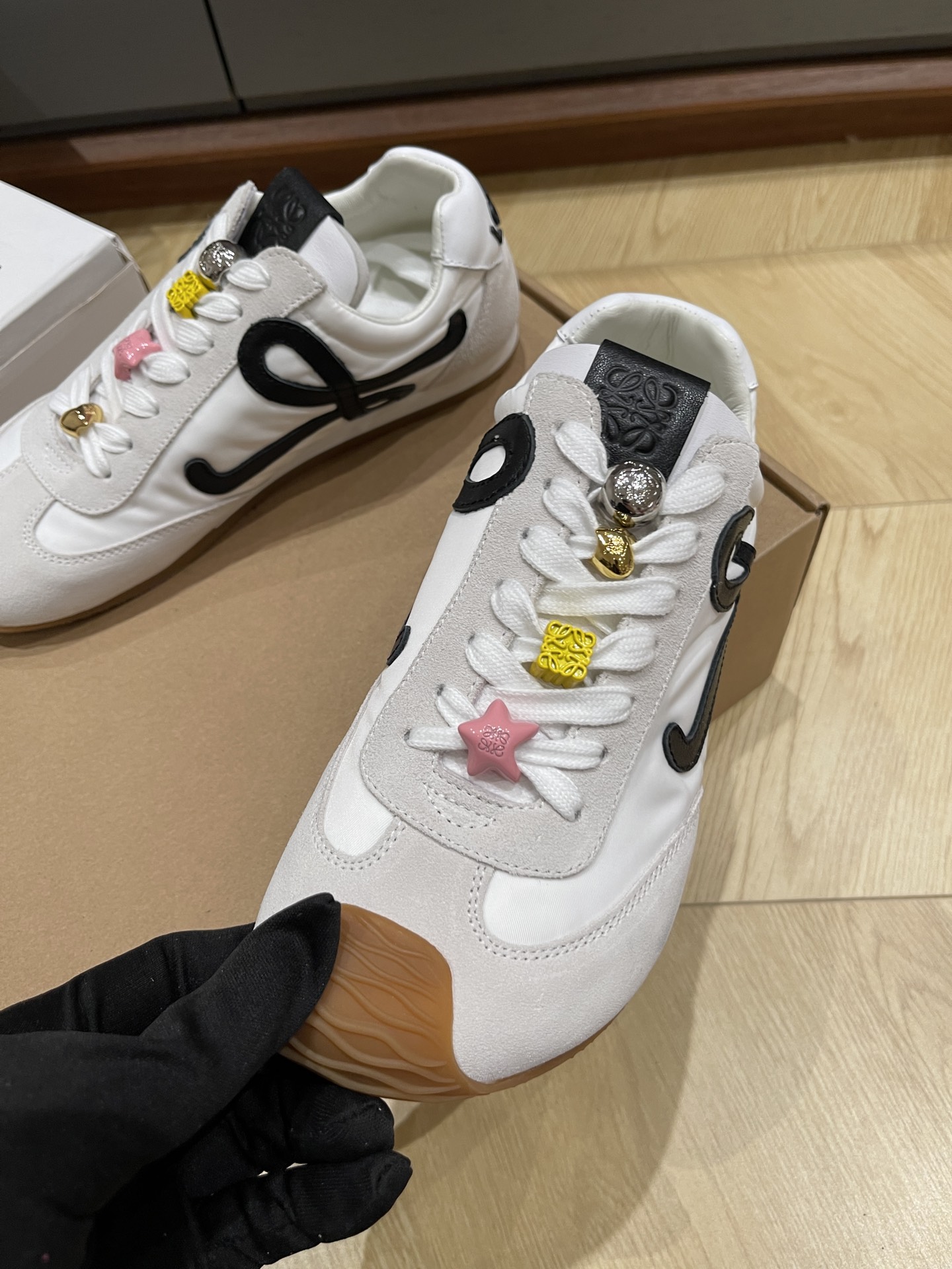 This shoes is AAAAA 1:1 quality (superb). Materials used are identical to the original ones. Loewe trademark marks are indistinguishable to the authentic. Photos take by actual shoes, what you receive will be 100% same with our photos.