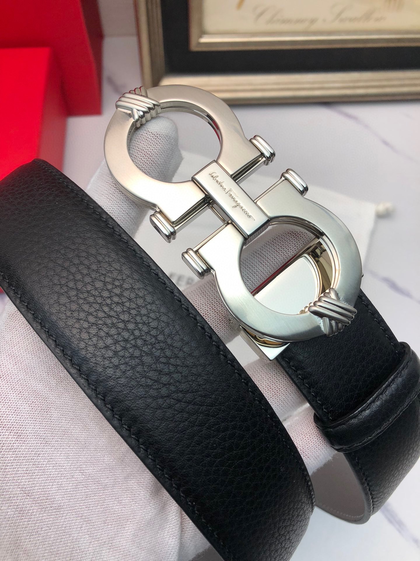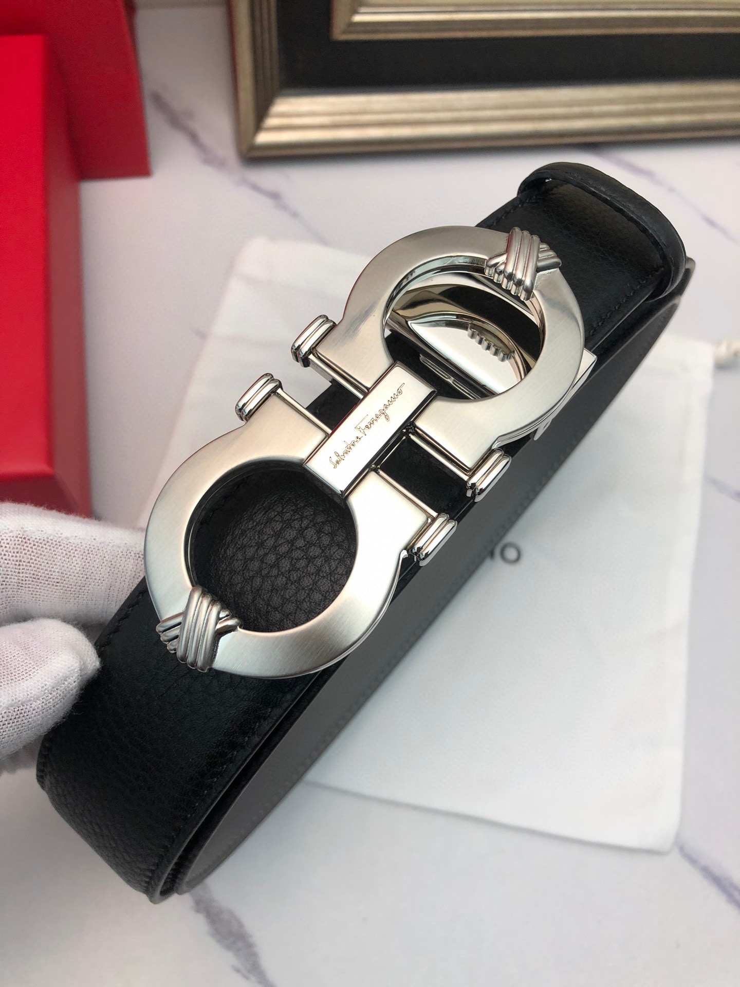 This belt is AAAAA 1:1 quality (superb). Materials used are identical to the original ones. Salvatore Ferragamo trademark marks are indistinguishable to the authentic. Photos take by actual belt, what you receive will be 100% same with our photos.